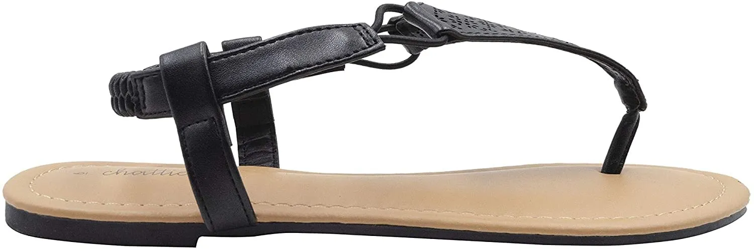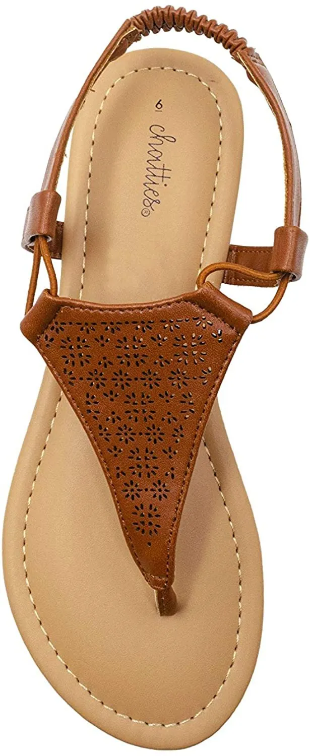 Chatties Women's Slip-On Cut-Out Thong Sandals with Elastic Back Strap, Open-Toe Flat Fashion Summer Shoes