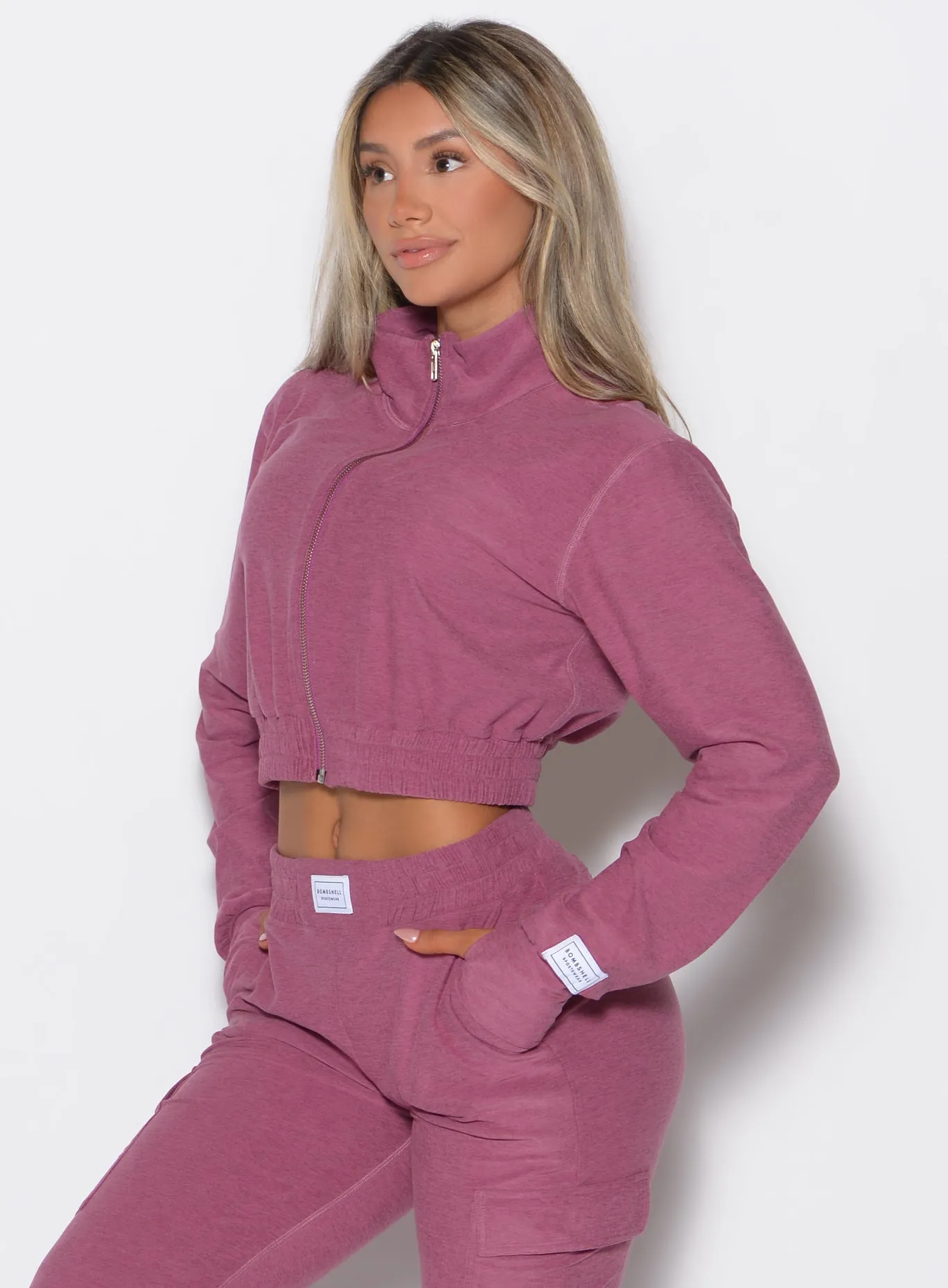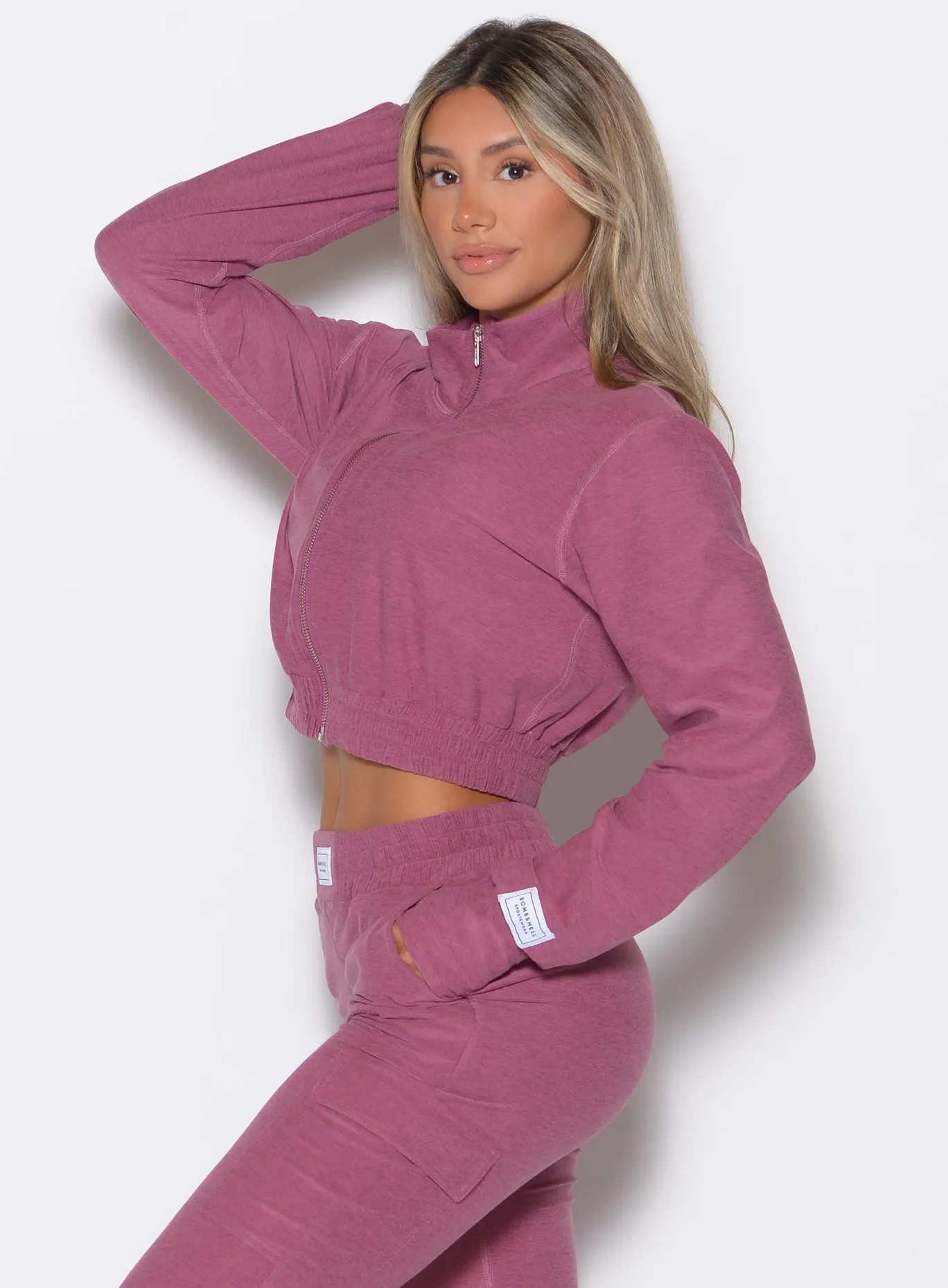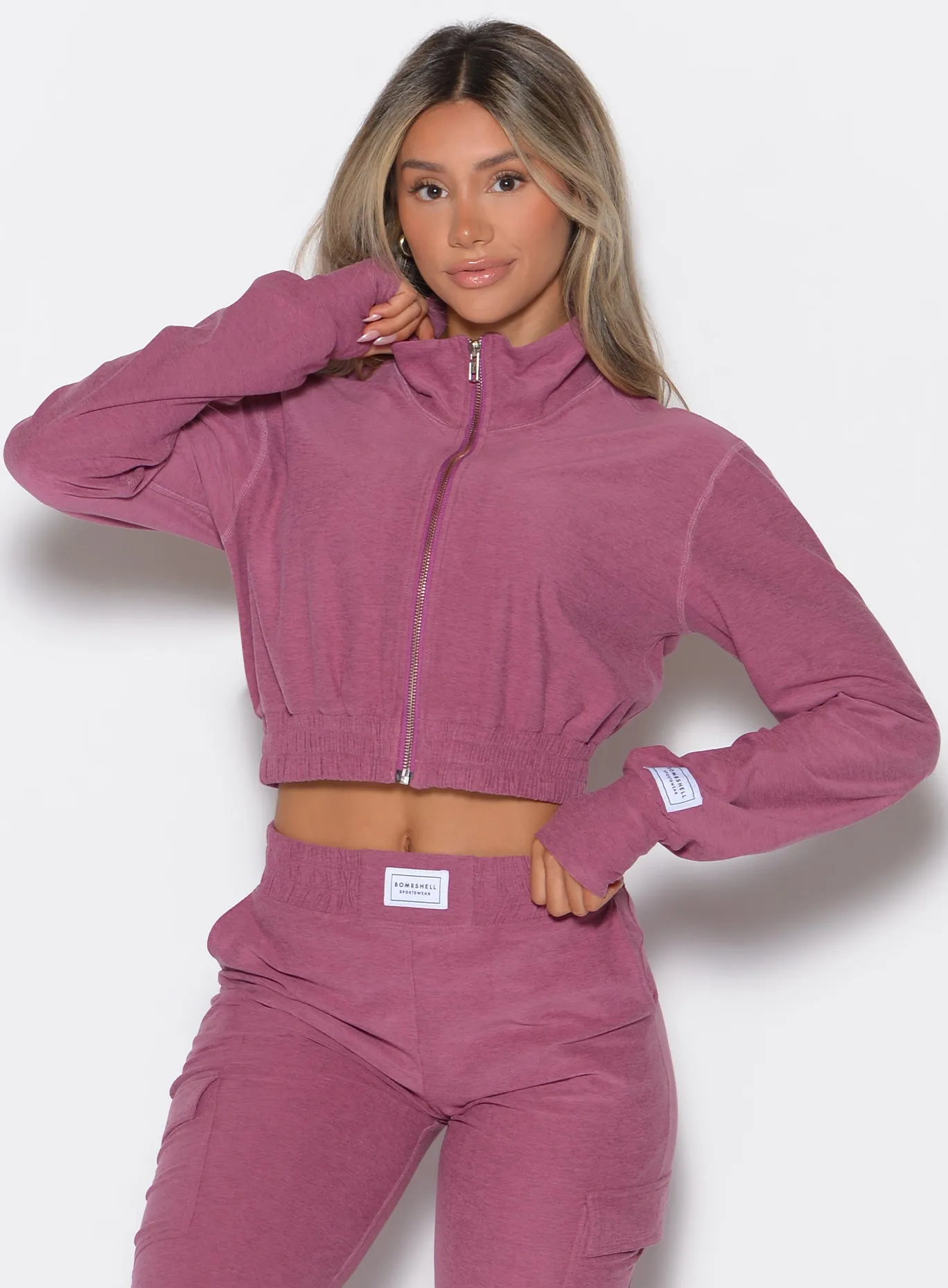 Meet the Cloud Crop Jacket, your go-to for everyday wear and lounging. With a mock high neck and full zip front, this jacket is both versatile and stylish. Thumb holes and scrunch detail add a contemporary touch, while the flatlock detailed stitching enhances durability. Made from light, airy fabric, it’s incredibly comfortable and pairs perfectly with our cloud shorts. Finished with a woven branded label, this jacket combines practicality with a chic, modern look and pairs perfectly with our cloud shorts and joggers.