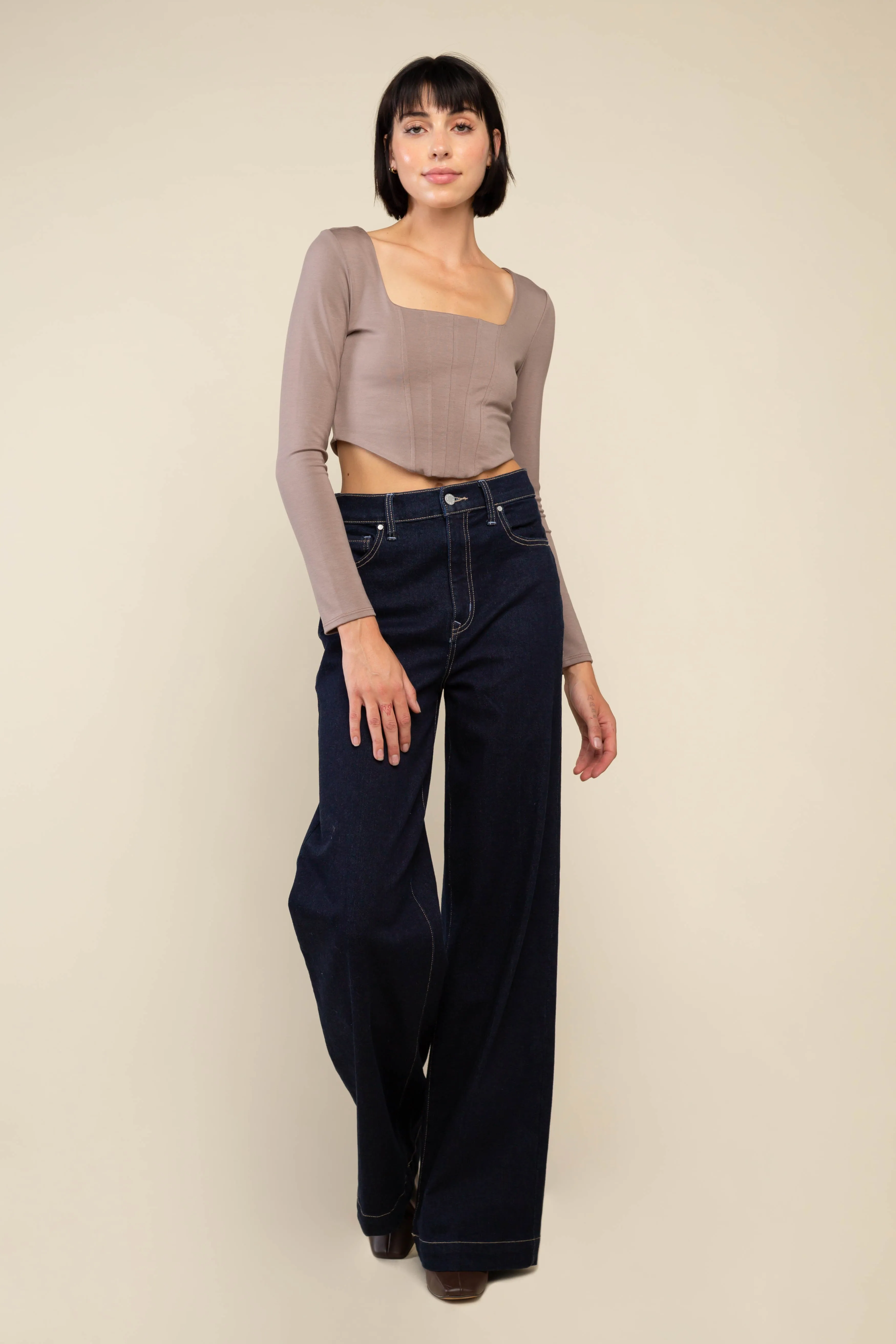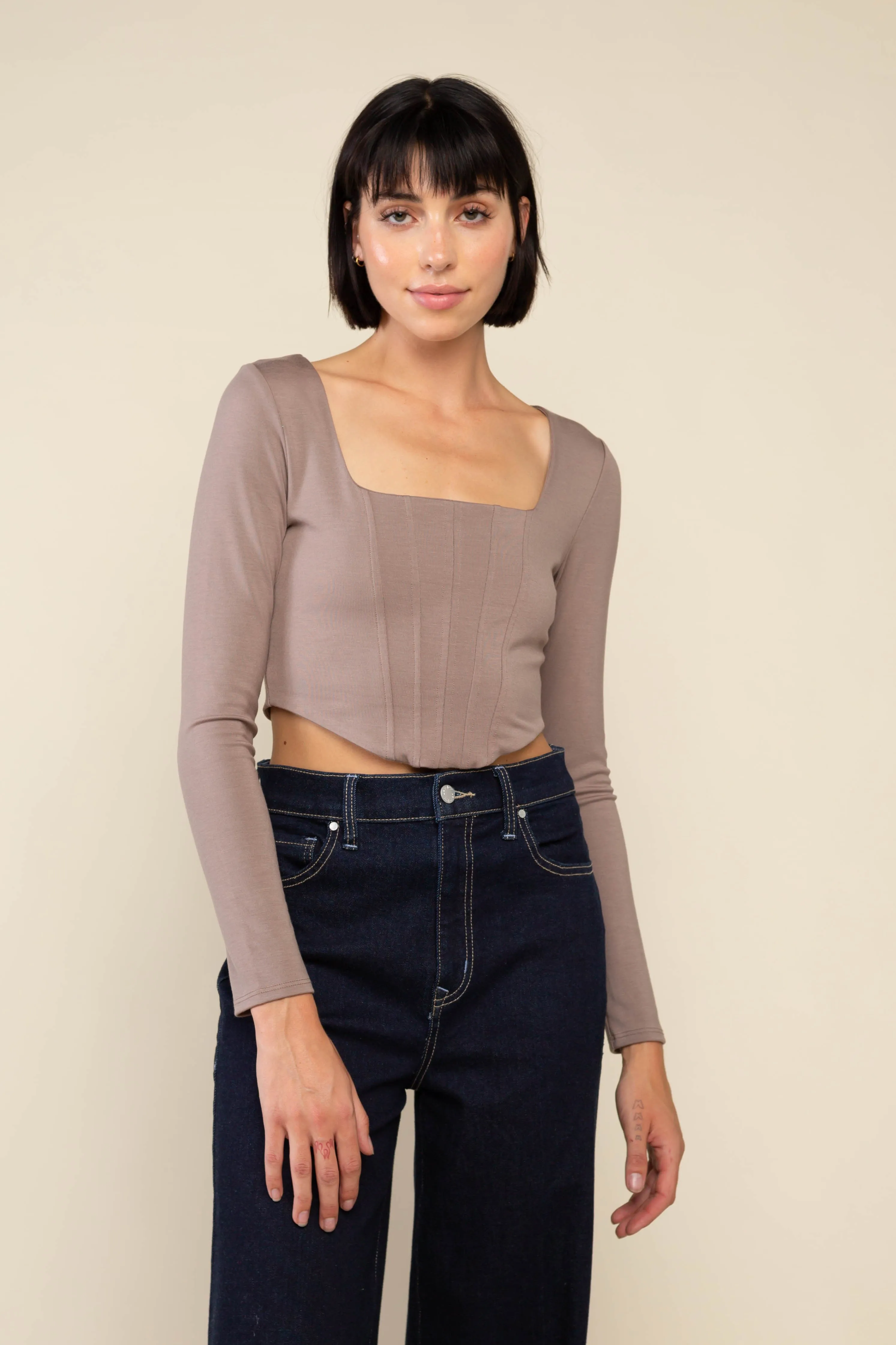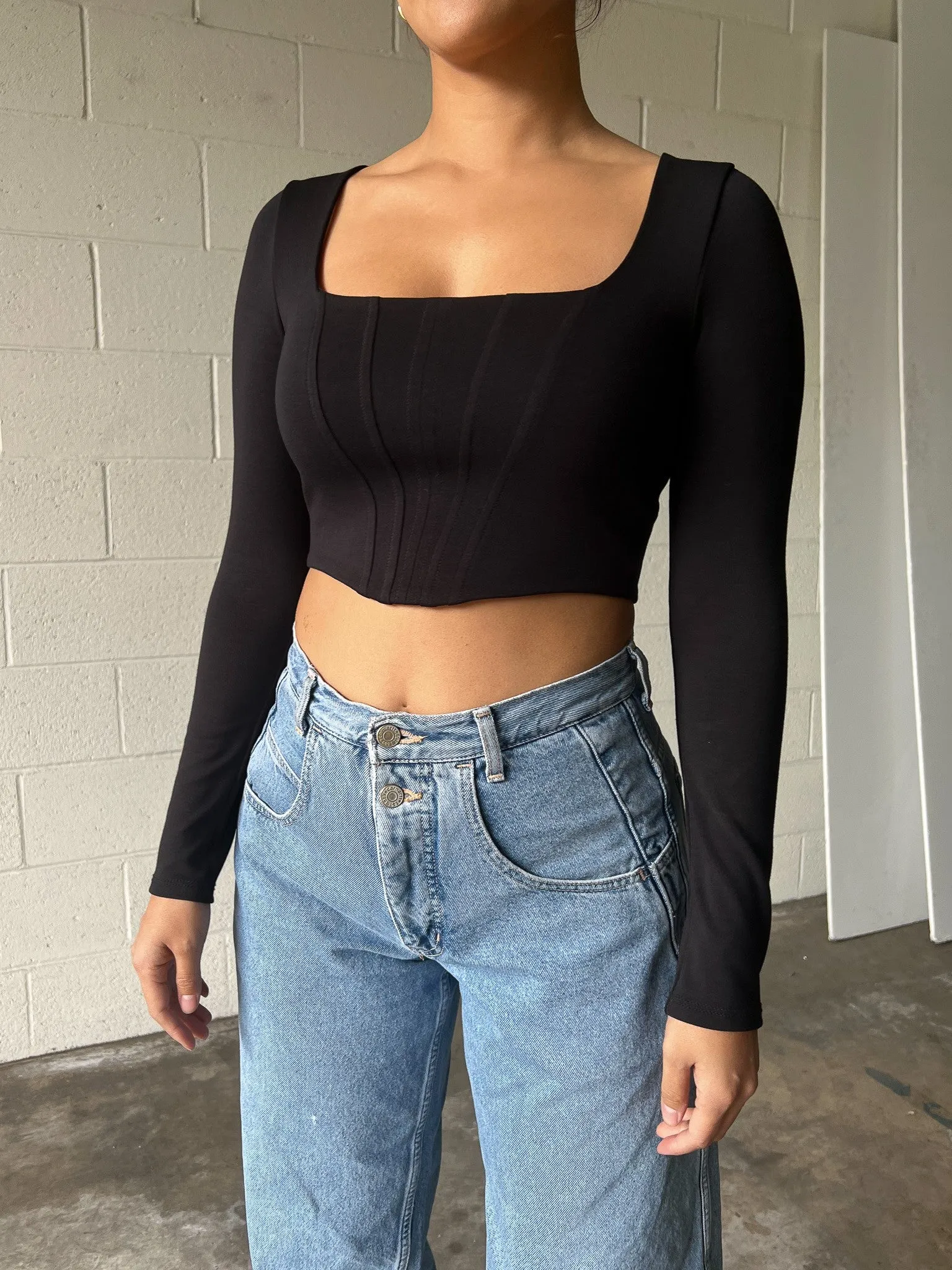 Introducing the Corset Crop Top, a stylish and sophisticated top with a square neck corset detailing. Crafted without boning in the seams, this long sleeve crop top gives you the perfect fit that accentuates your shape while staying comfortable.
