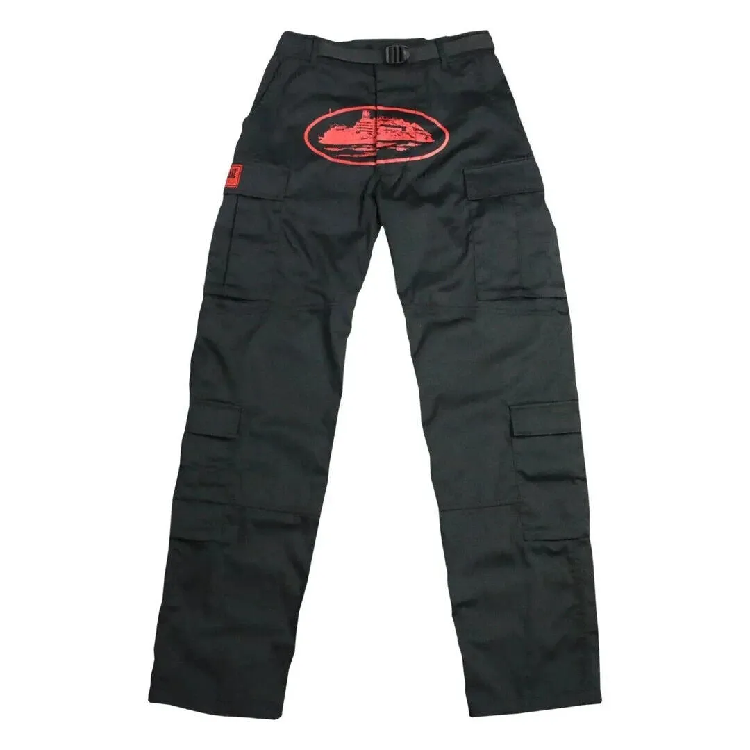The Corteiz Guerillaz Cargos in Black Red are a testament to the brand's commitment to blending streetwear aesthetics with utilitarian functionality. These cargos are designed for the bold and the fearless, featuring a striking black base complemented by vibrant red accents that demand attention. Crafted from a durable, high-quality fabric, these cargos ensure both comfort and longevity, making them suitable for daily wear or adventurous outings. The multiple pocket design not only adds to the practicality but also enhances the cargo's rugged appeal, providing ample space for essentials. The adjustable waistband and cuffed ankles allow for a customizable fit, ensuring they sit perfectly on any body type. Whether paired with a simple tee for a casual look or layered with other pieces for a more complex ensemble, the Corteiz Guerillaz Cargos in Black Red are sure to make a statement and elevate any wardrobe.