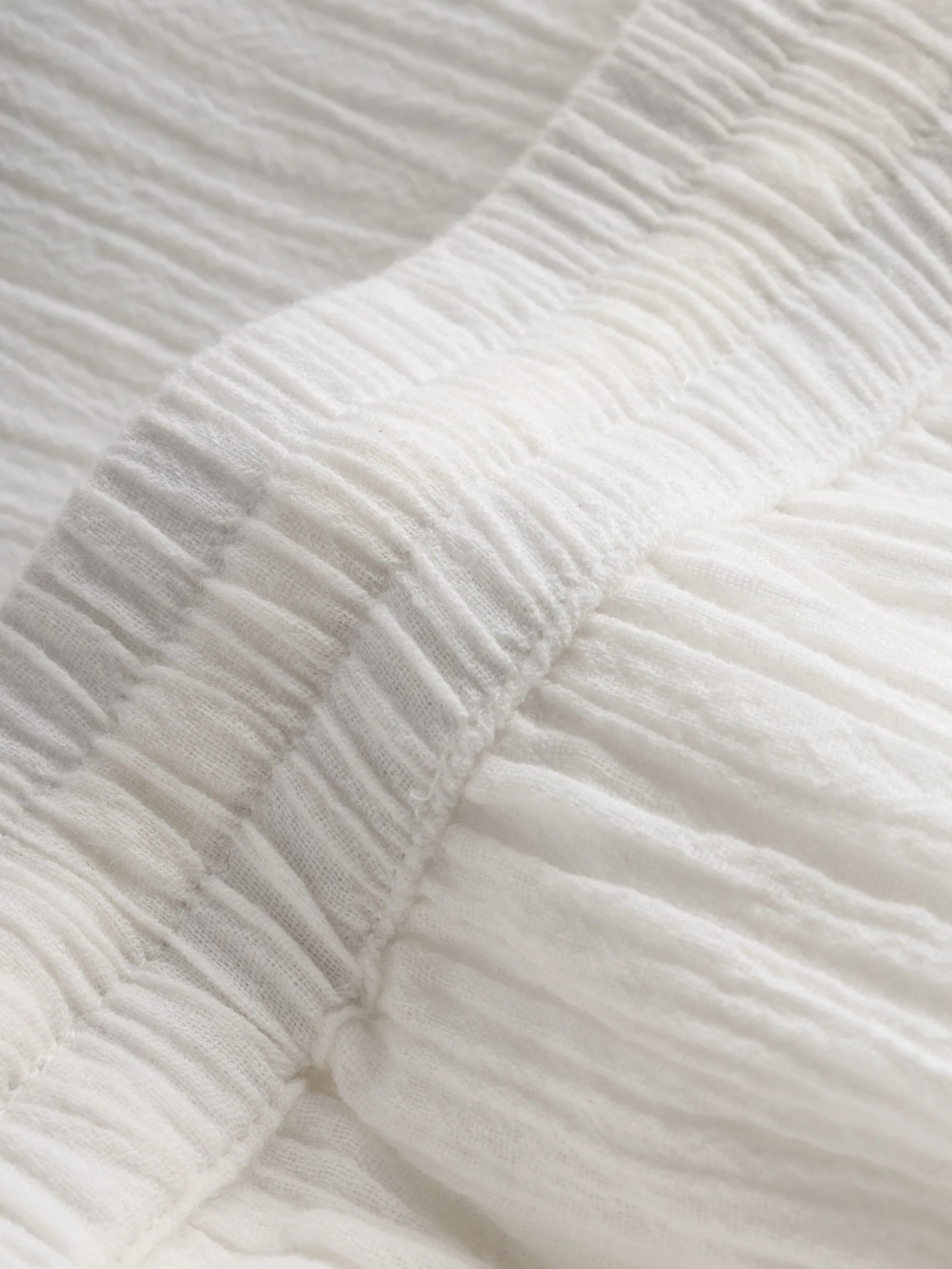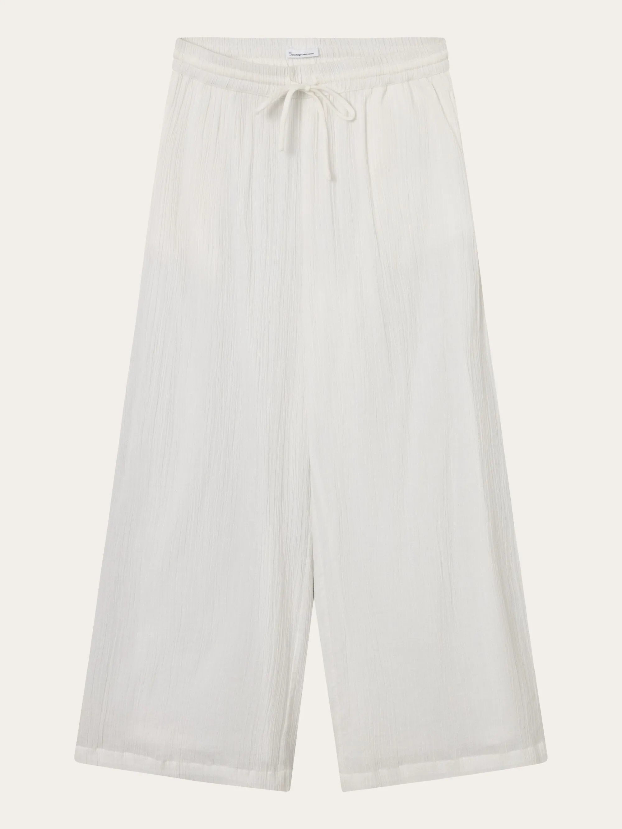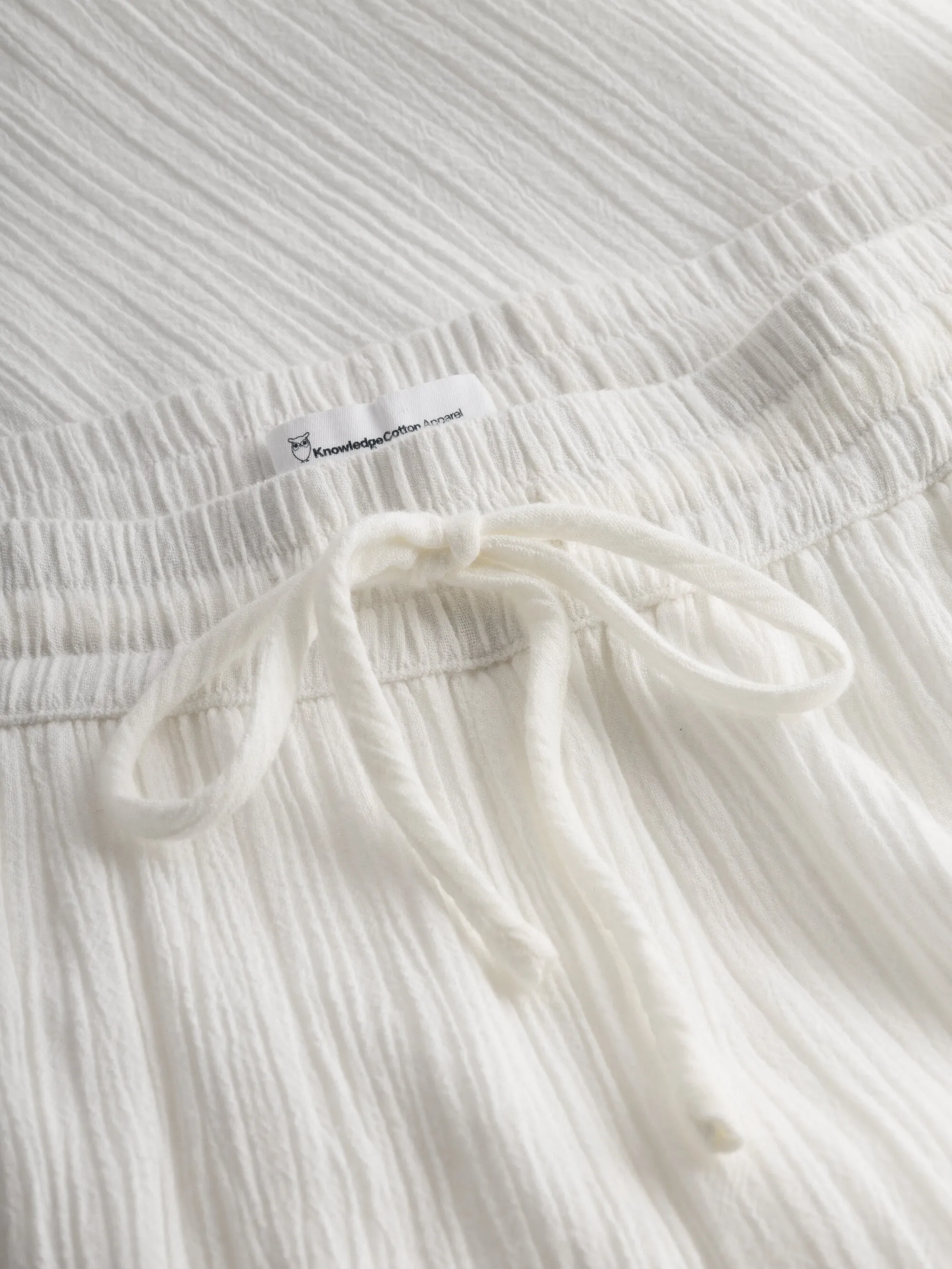 Choose a pair of soft and responsibly made pants for summer. Our loose cotton crepe pants are designed in a wide fit with an elastic waistband, adjustable cords, and slanted front pockets. Made from 100% organic cotton, the quality feels incredibly soft, lightweight, and airy to wear.