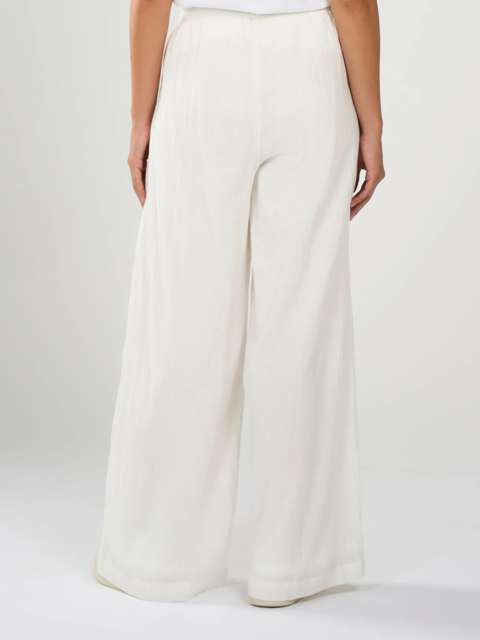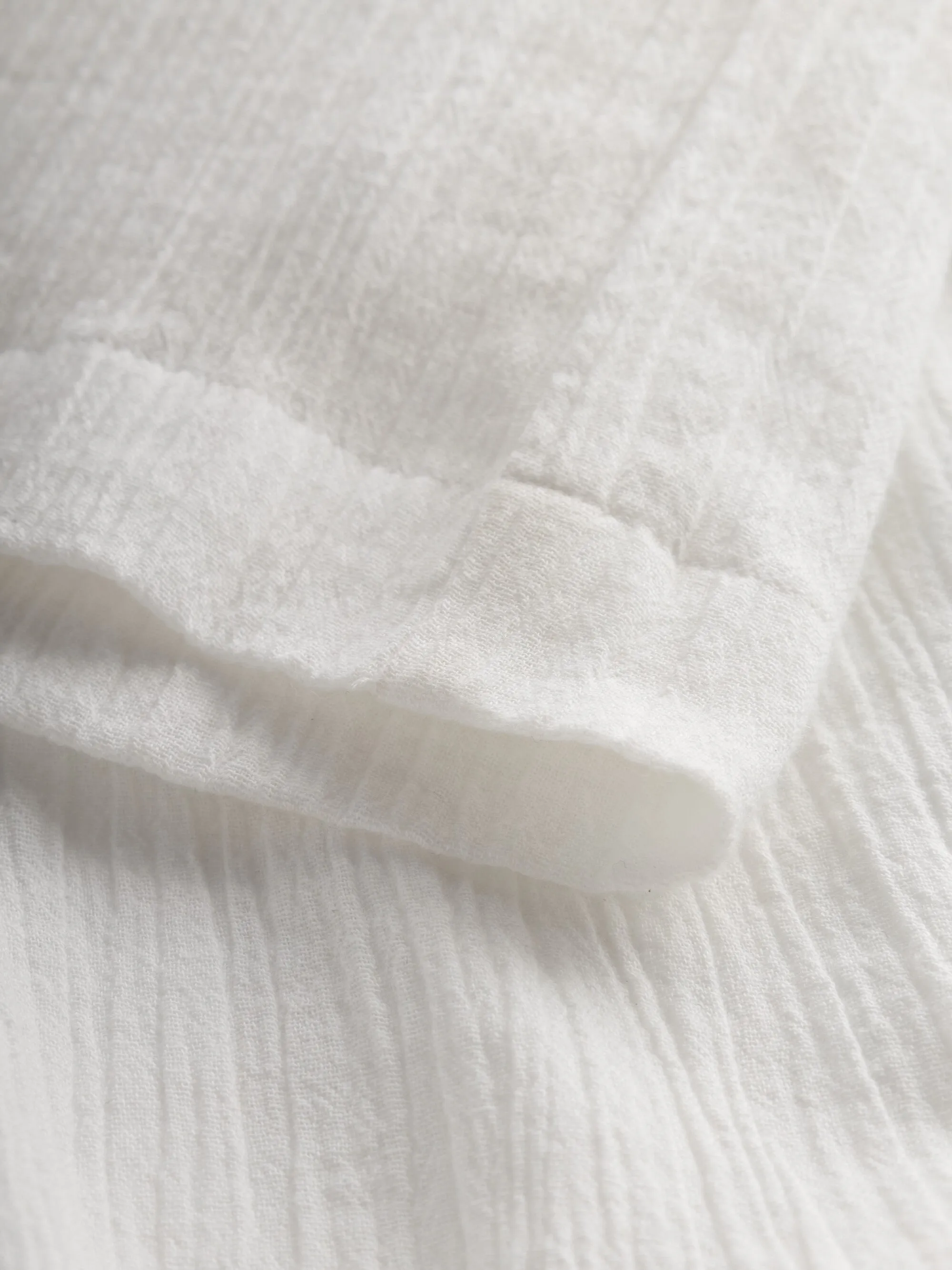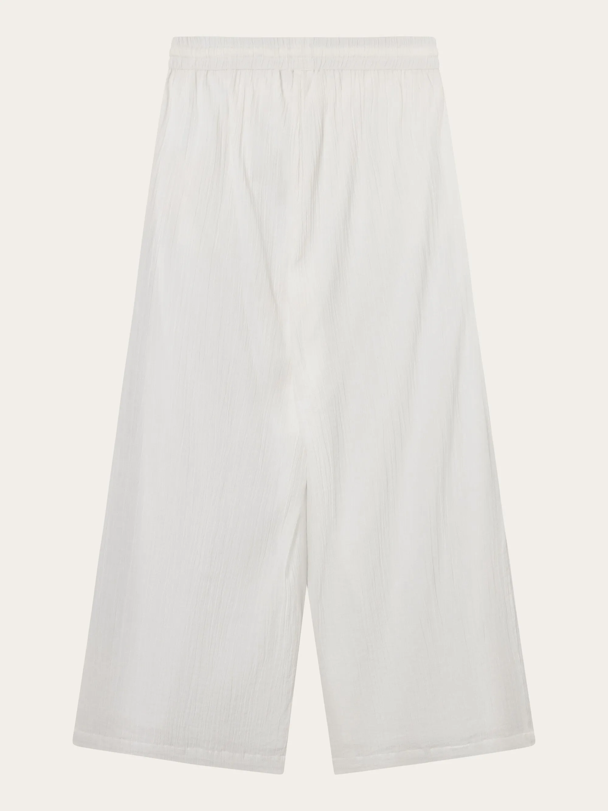 Choose a pair of soft and responsibly made pants for summer. Our loose cotton crepe pants are designed in a wide fit with an elastic waistband, adjustable cords, and slanted front pockets. Made from 100% organic cotton, the quality feels incredibly soft, lightweight, and airy to wear.