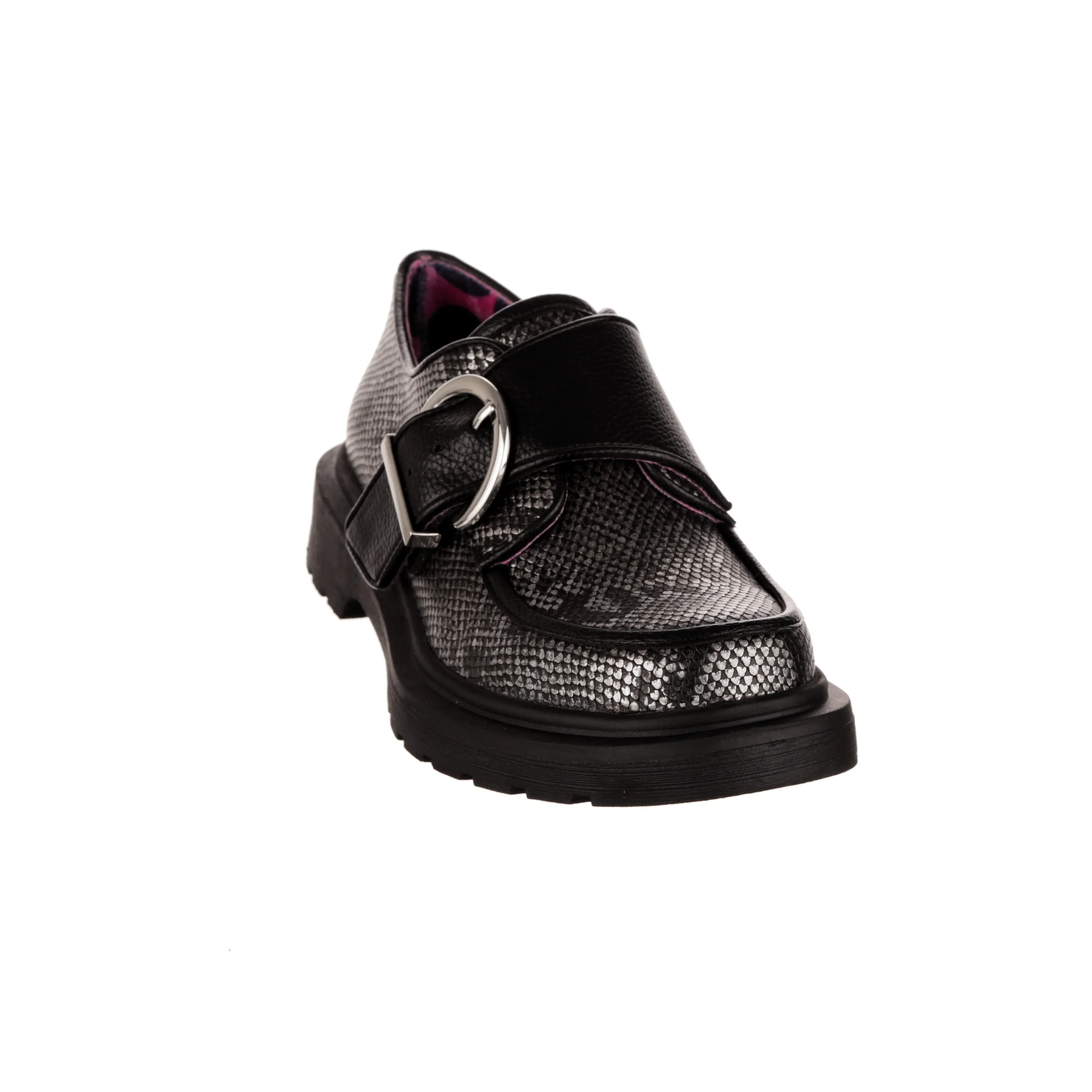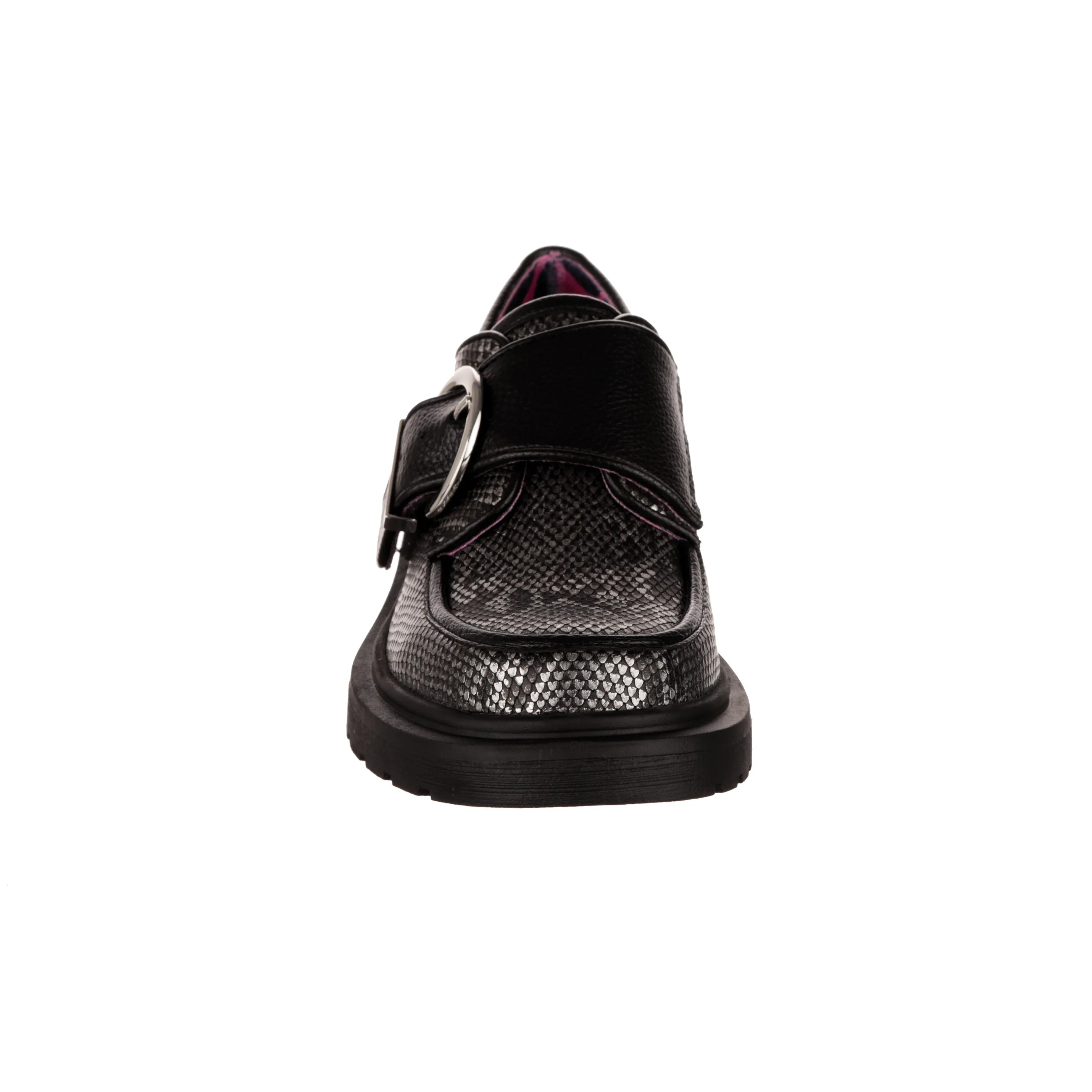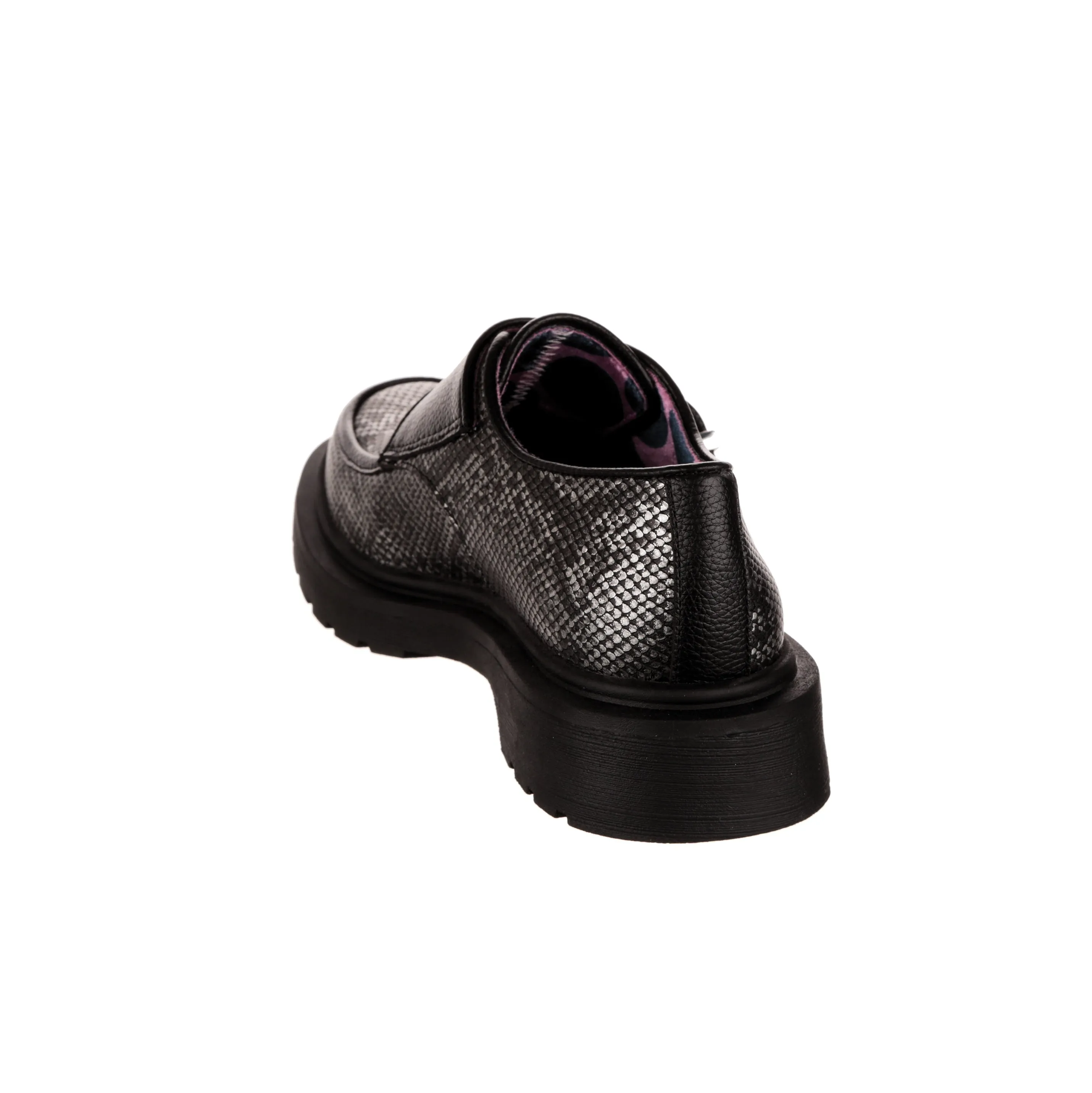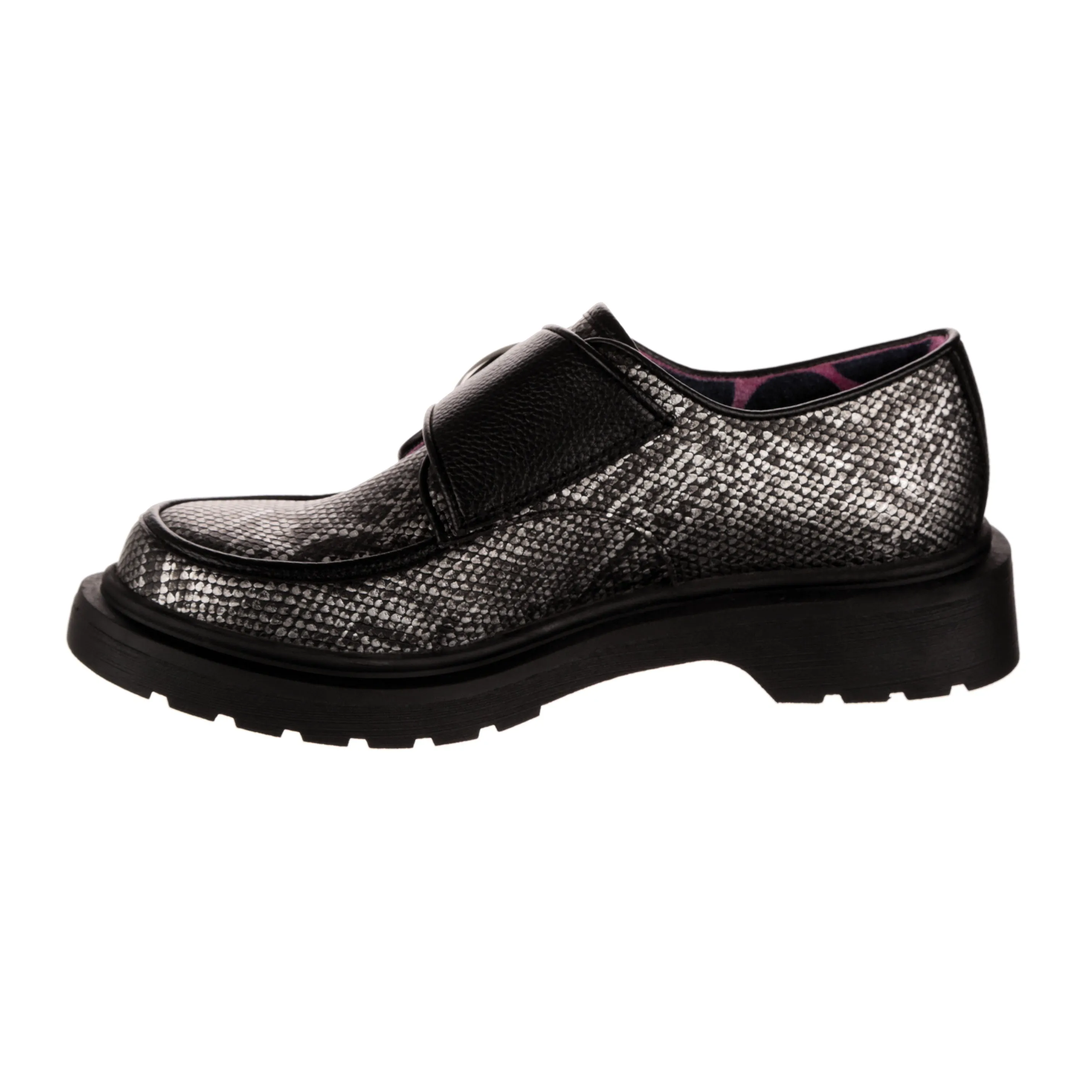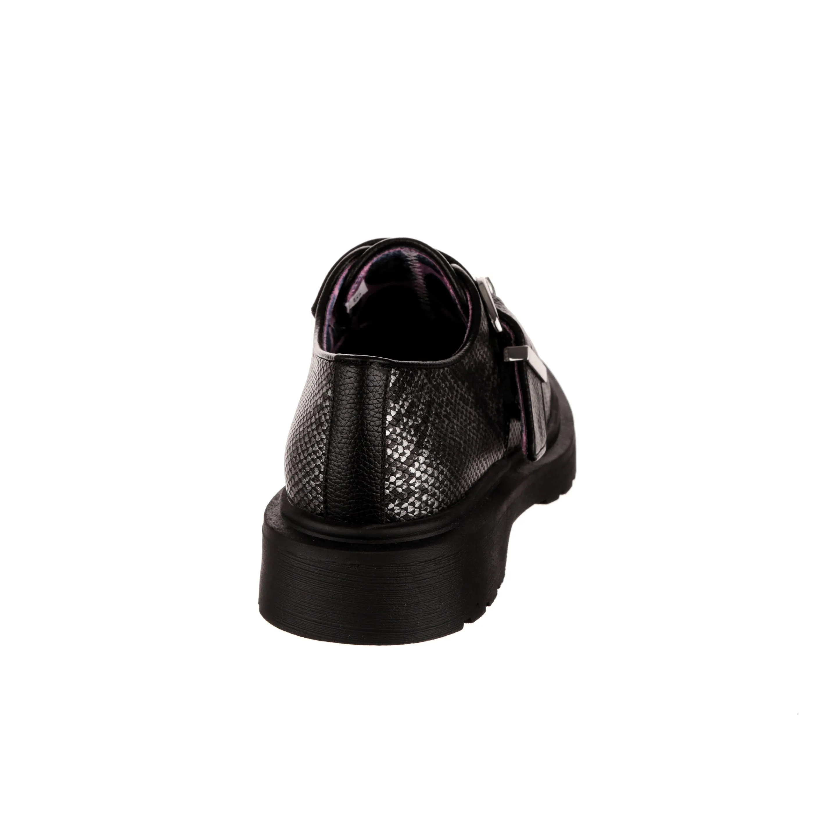 Cool and casual, these vintage-style brogues feature iridescent silver and black snakeskin accented by a reflective, rainbow quality that you'll want to wear day and night. The single black monk strap has an adjustable oversized buckle for that statement feel, the perfect finishing touch to your look!