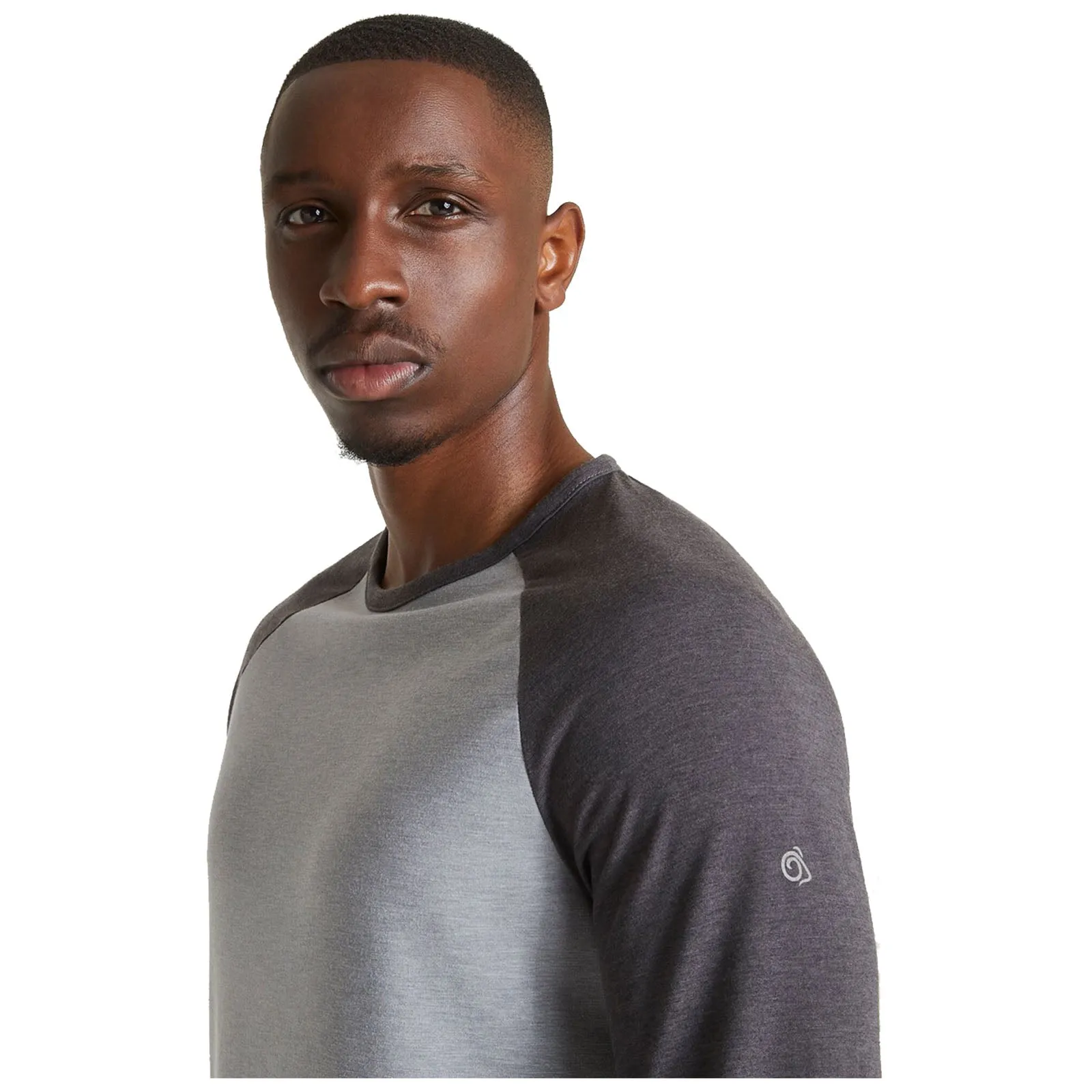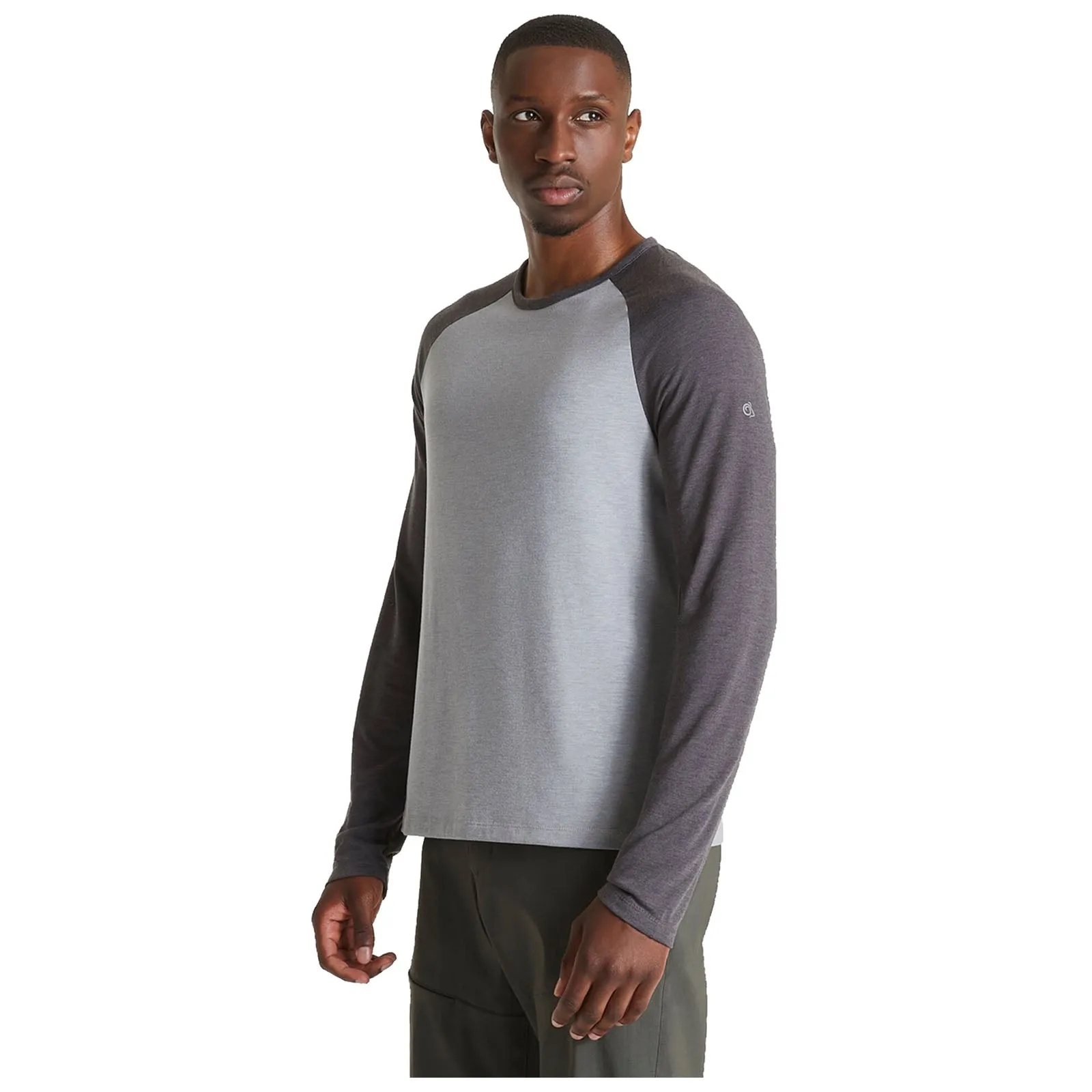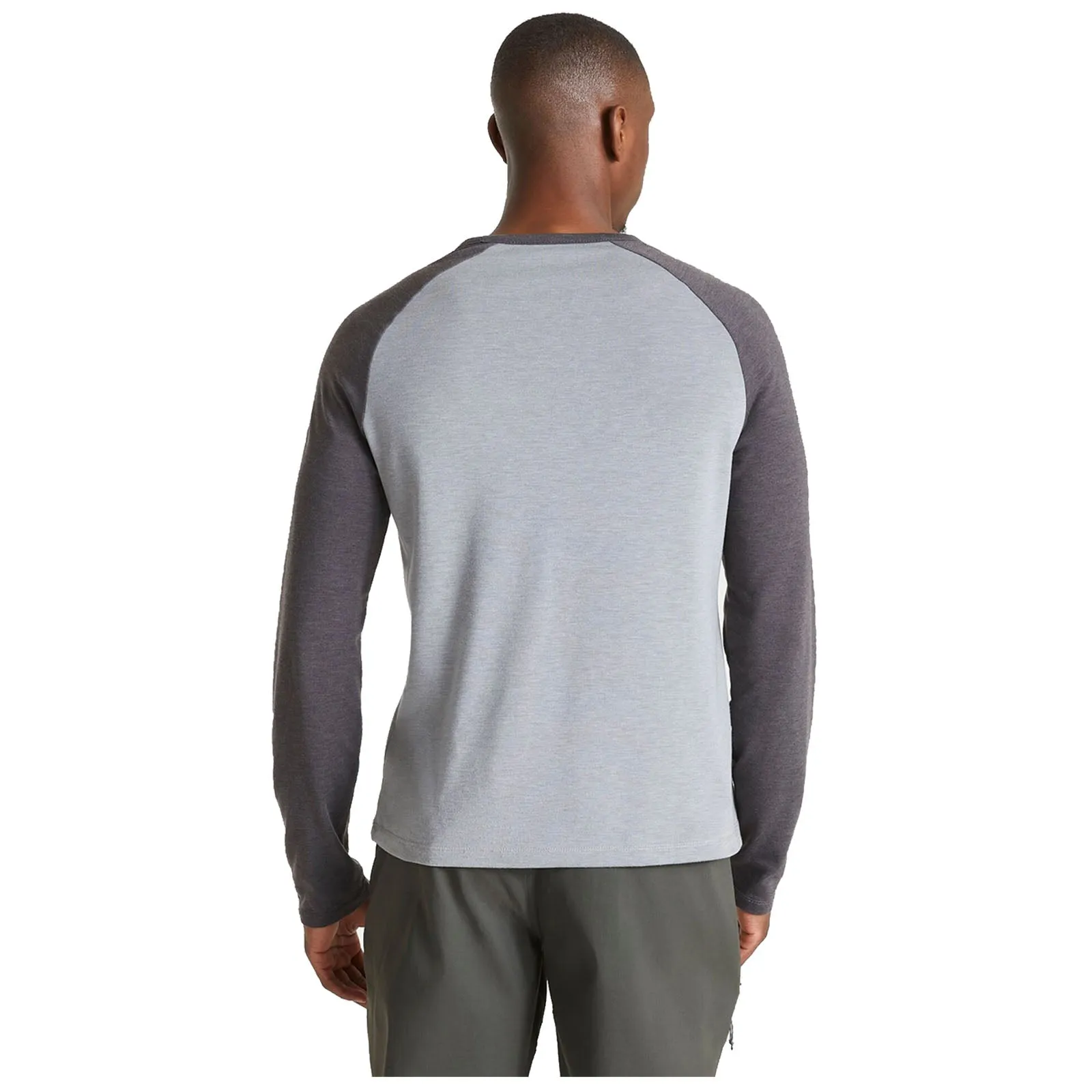Long-sleeved two-tone jersey tee that incorporates Thermal Control technology, absorbing and distributing body heat evenly for warmth and comfort. Approximately 12 bottles were recycled to make this product.