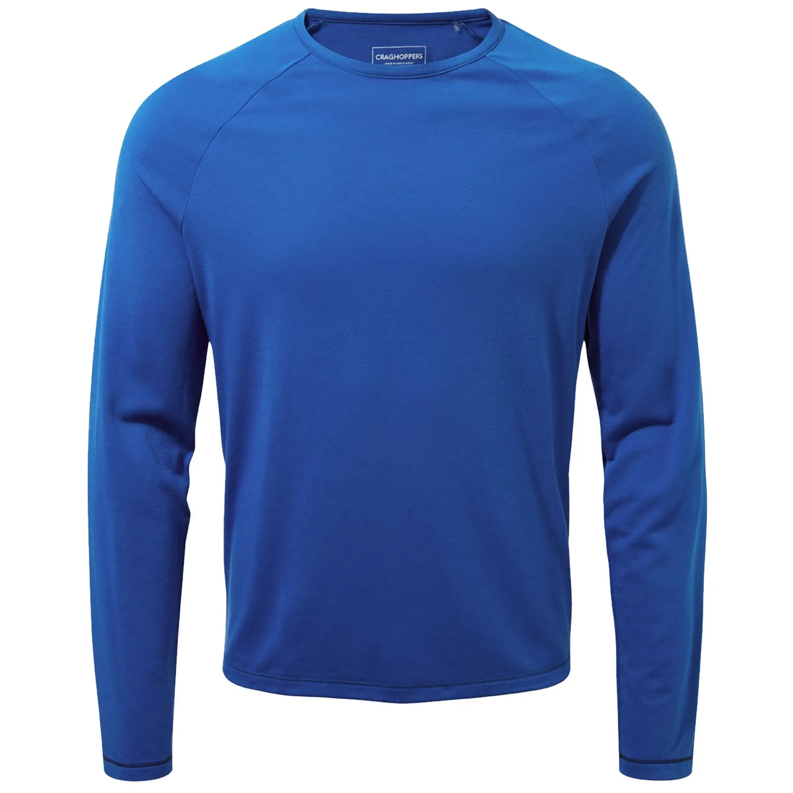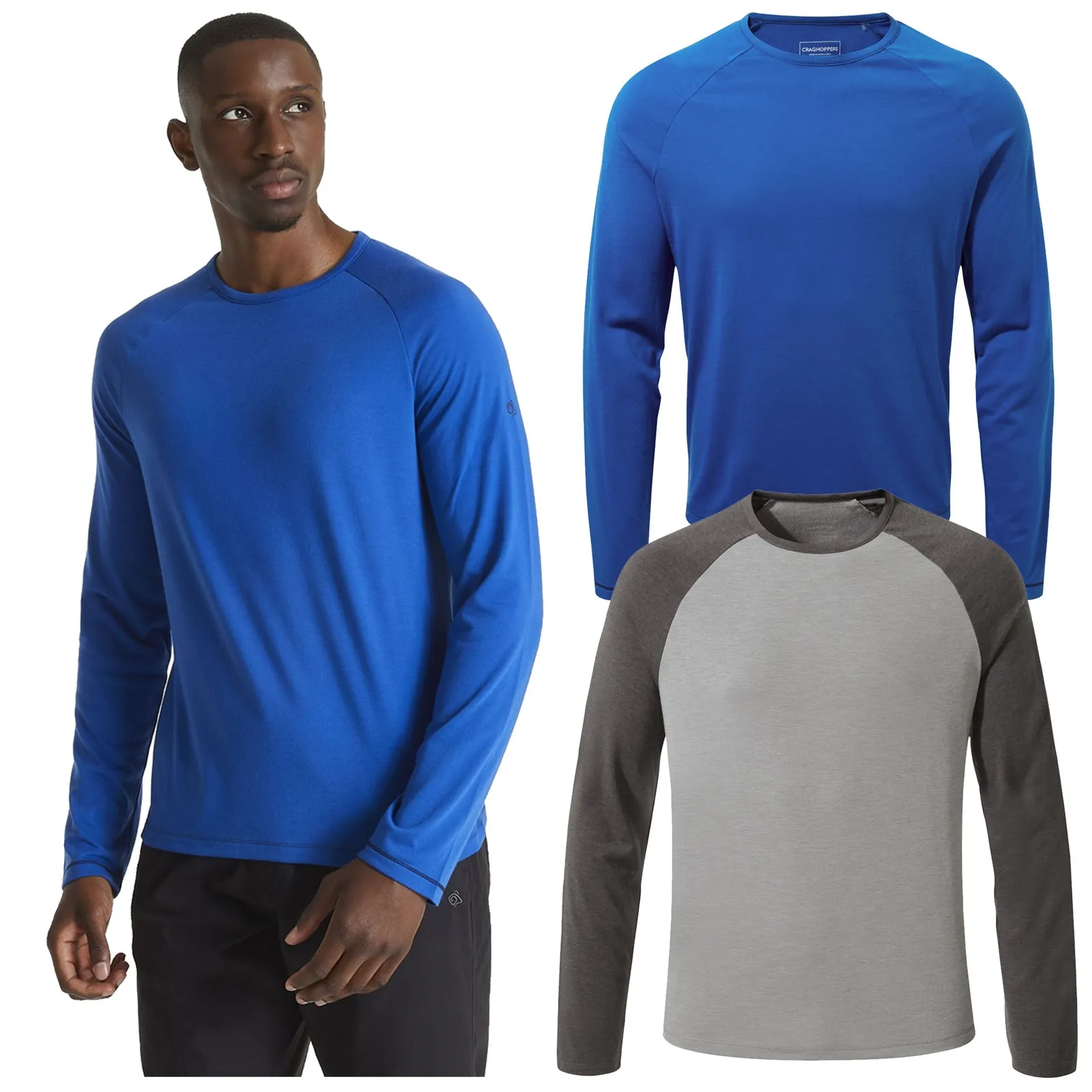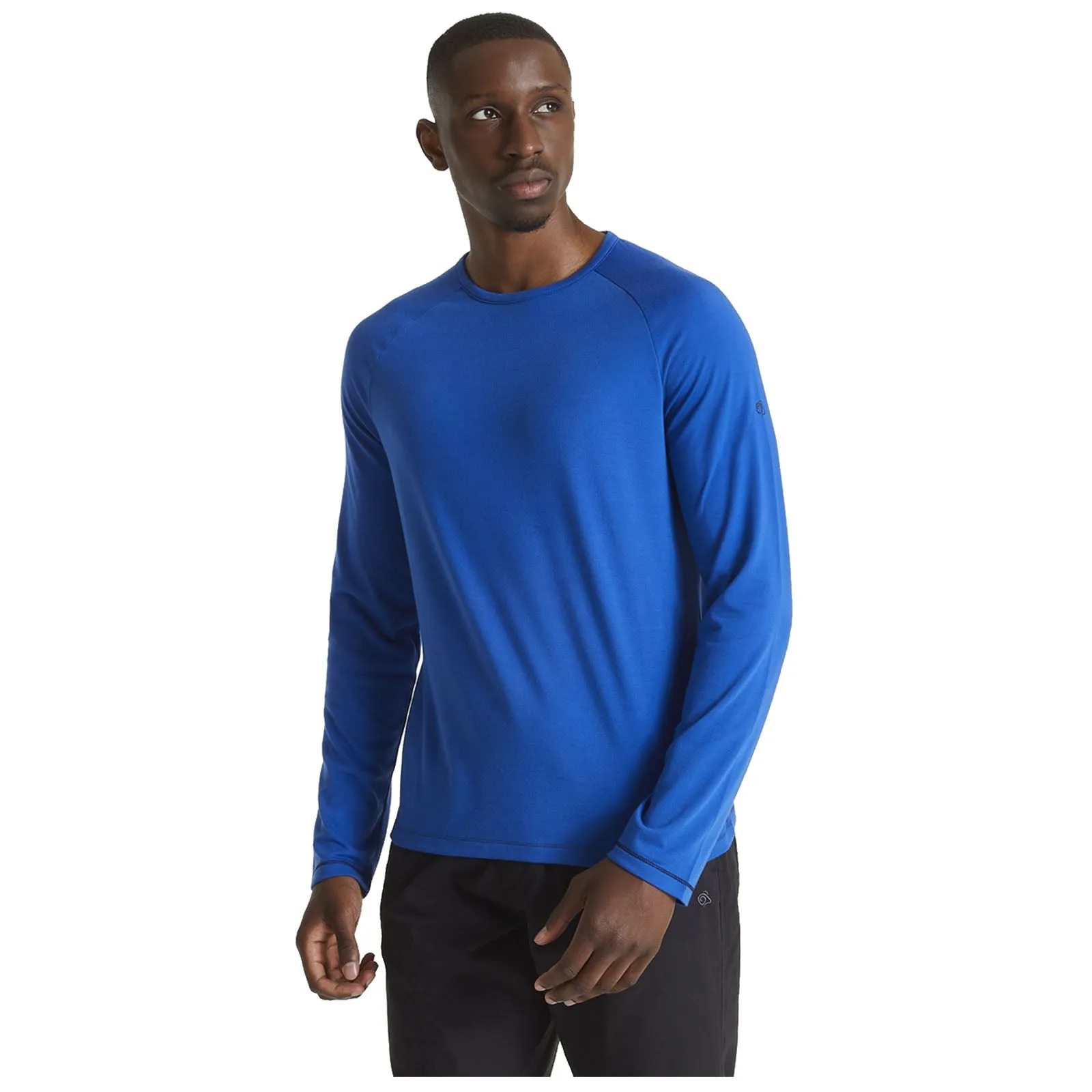 Long-sleeved two-tone jersey tee that incorporates Thermal Control technology, absorbing and distributing body heat evenly for warmth and comfort. Approximately 12 bottles were recycled to make this product.