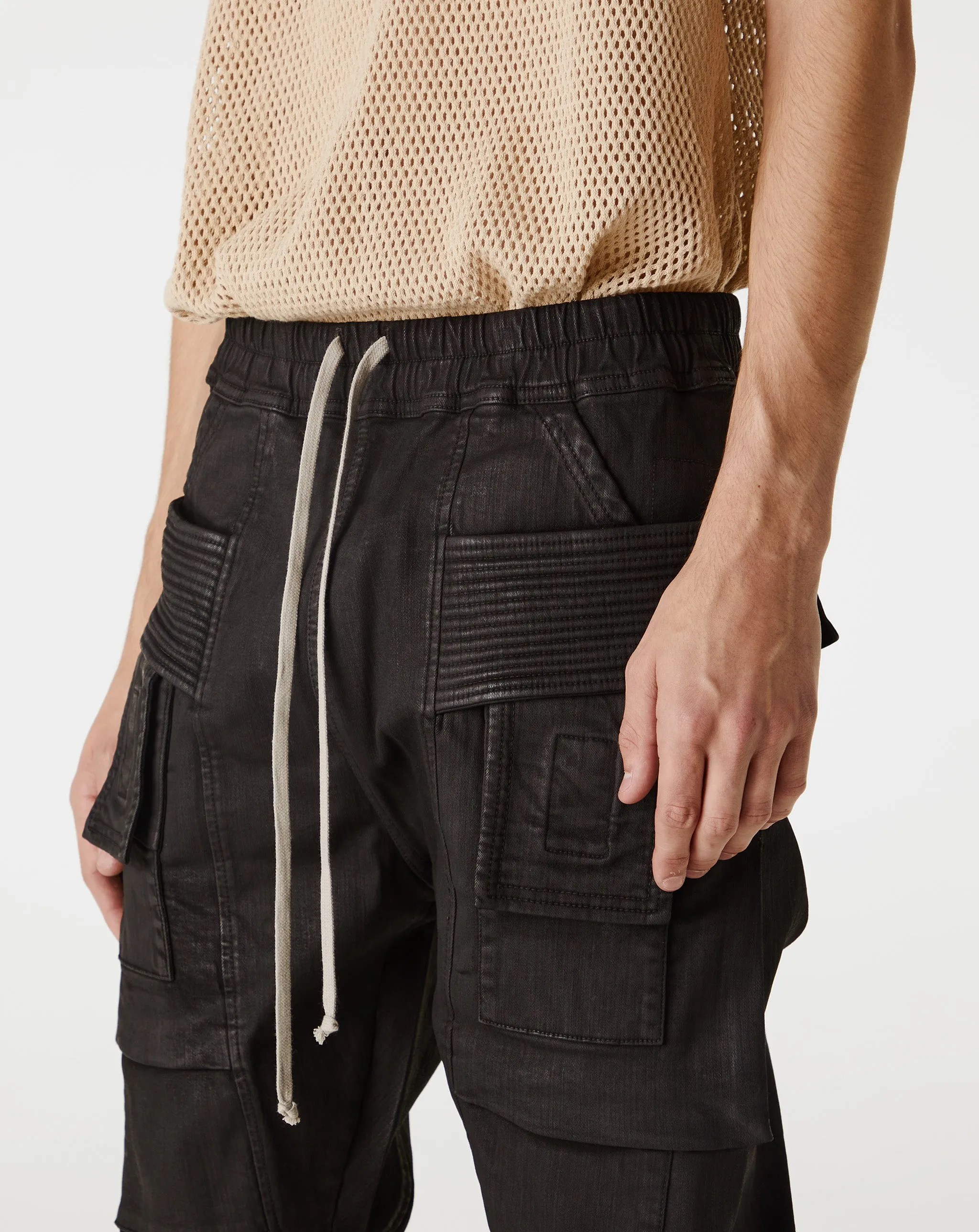 The Rick Owens DRKSHDW Creatch Cargo Pants provide an elevated streetwear option that redefines everyday style. Designed with a tapered fit and tonal stitching, these pants feature distinctive layered pockets and a striking coated finish. The adjustable drawstring waistband adds versatility, making them perfect for any urban adventure.