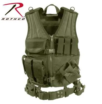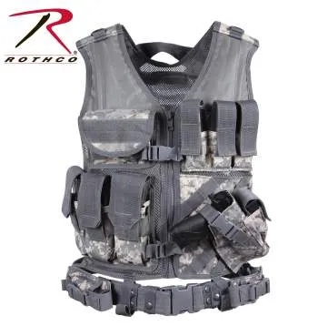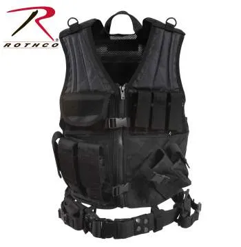 Frank Bee Tactical Cross Draw Vest is constructed with a heavyweight polyester mesh. Features include 3 ammo pouches, 3 pistol magazine pouches, M.O.L.L.E. attachment fields, padded shoulders, 2 D-rings, 2 inside zip-up document pouches, adjustable pistol belt, carry handle, hook & loop adjustable shoulder straps, drawstring waist and a removable holster. Frank Bee tactical vest is available in two sizes: Regular (Small - X-Large) and Oversized (2XL/3XL).
