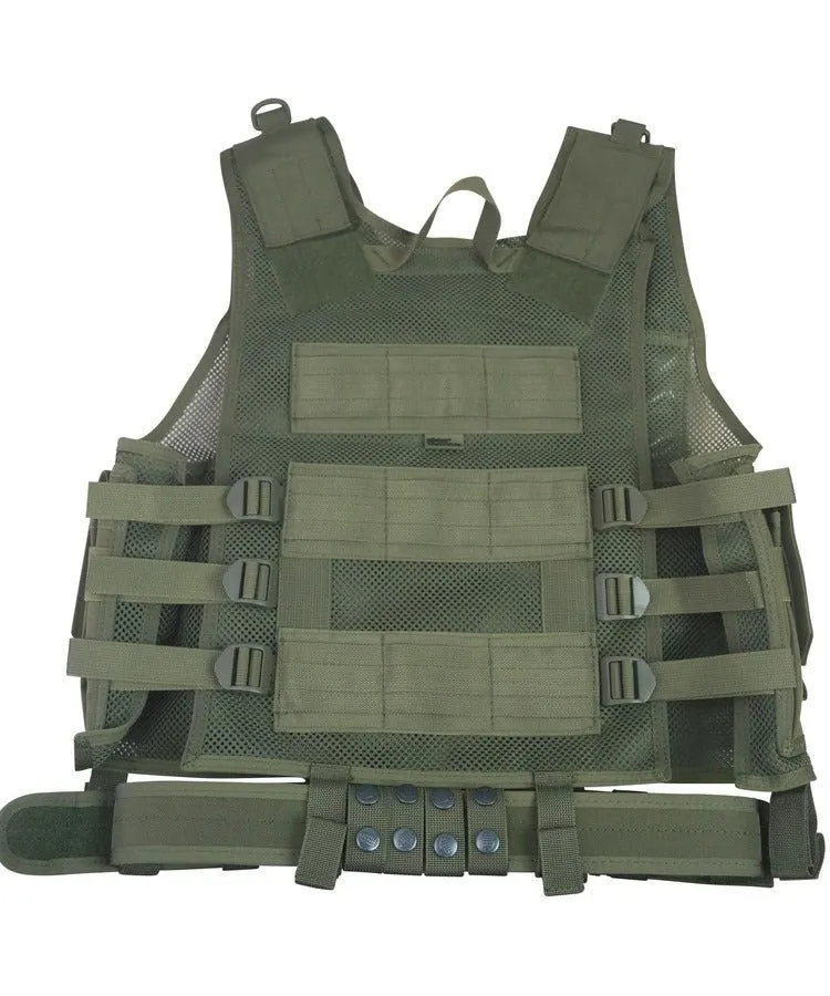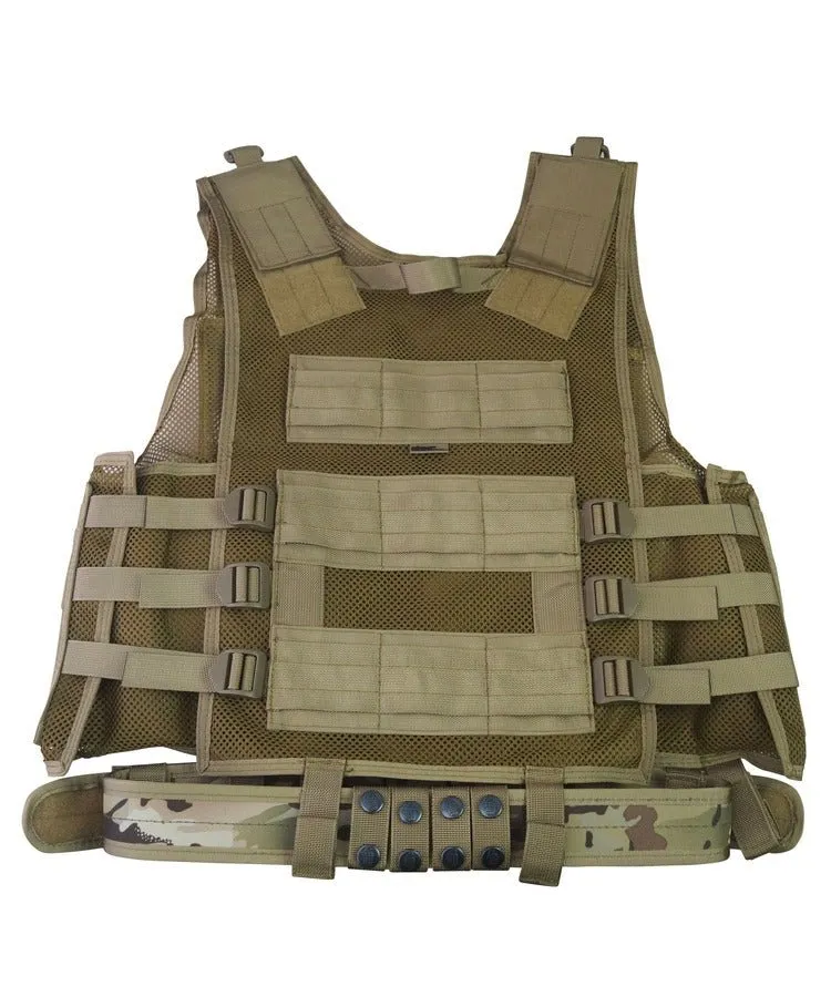 Gear up for action with the Kombat UK Cross Draw Tactical Vest, your ultimate solution for tactical convenience. Loaded with features, including pistol/grenade pouches, ammo pouches, and internal mesh pockets, this vest offers ample storage. The padded sniper shoulder and adjustable straps ensure comfort during extended wear. It comes complete with a pistol holster, utility chest pouch, and full Molle exterior, enhancing versatility and functionality. Made from durable 600D Cordura, this vest is built to withstand intense situations while keeping you organized and ready for any mission.