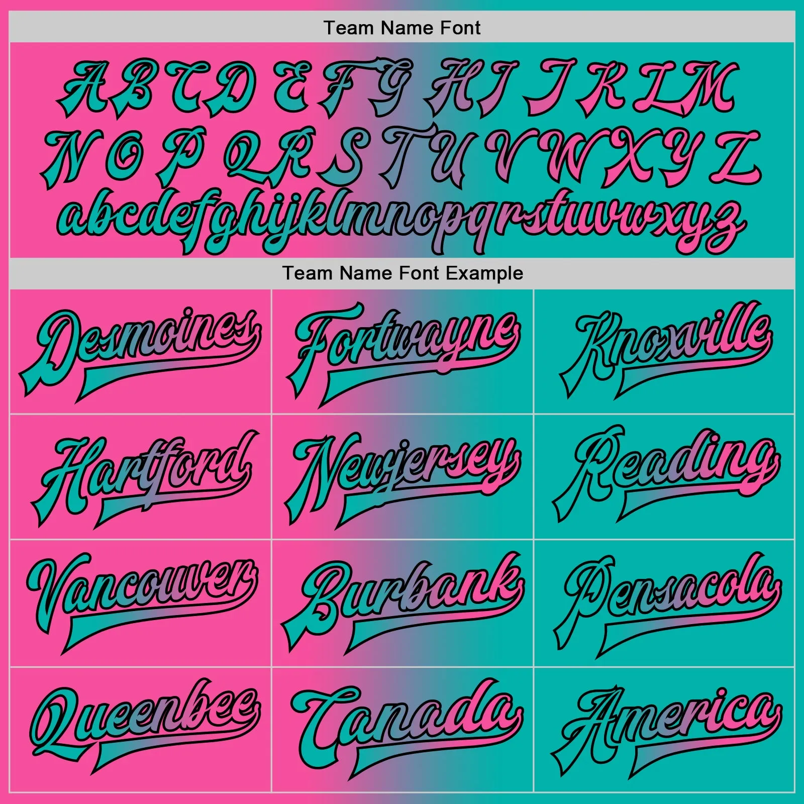 Custom Aqua Pink-Black Bomber Full-Snap Varsity Letterman Gradient Fashion Jacket