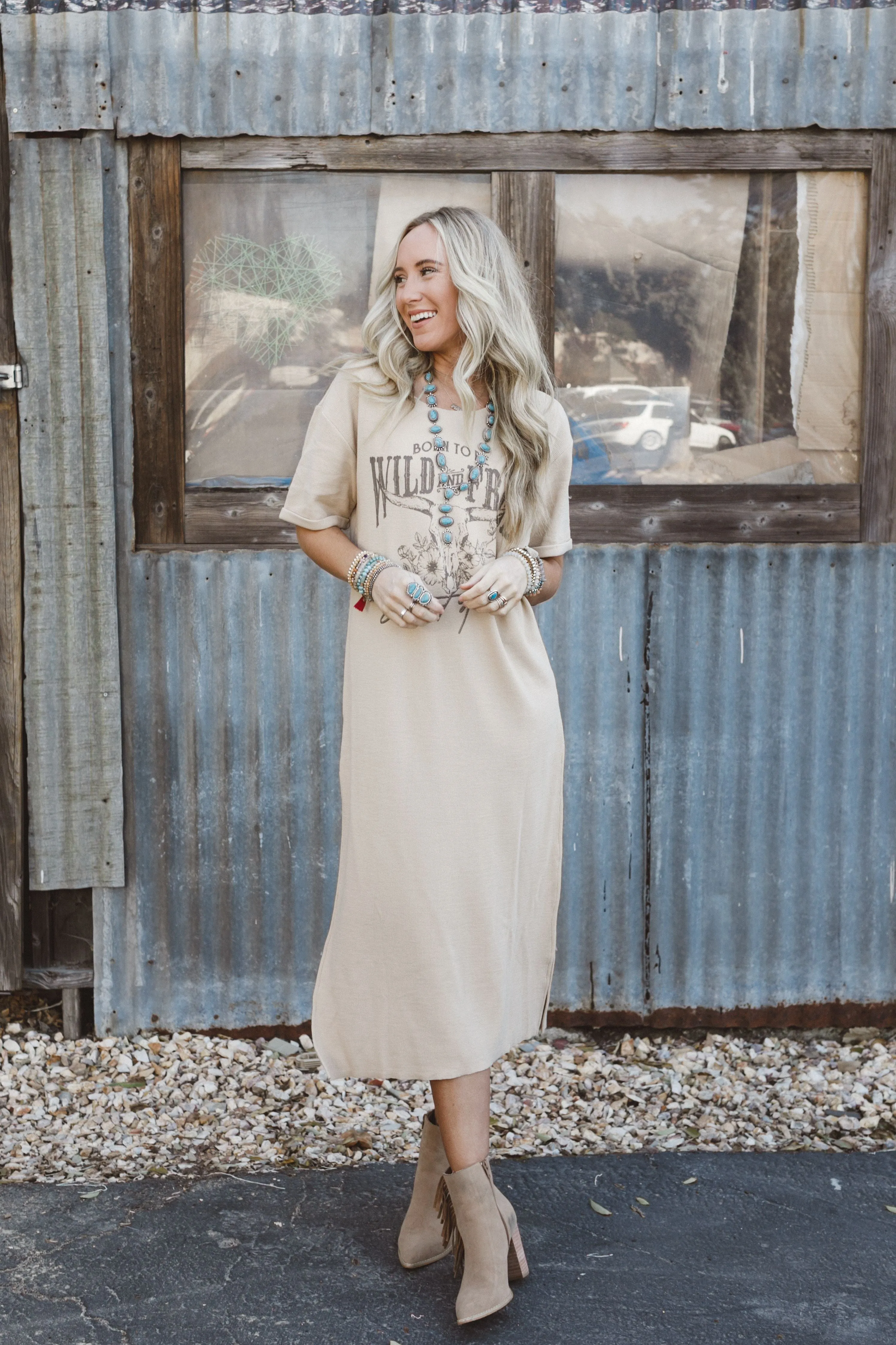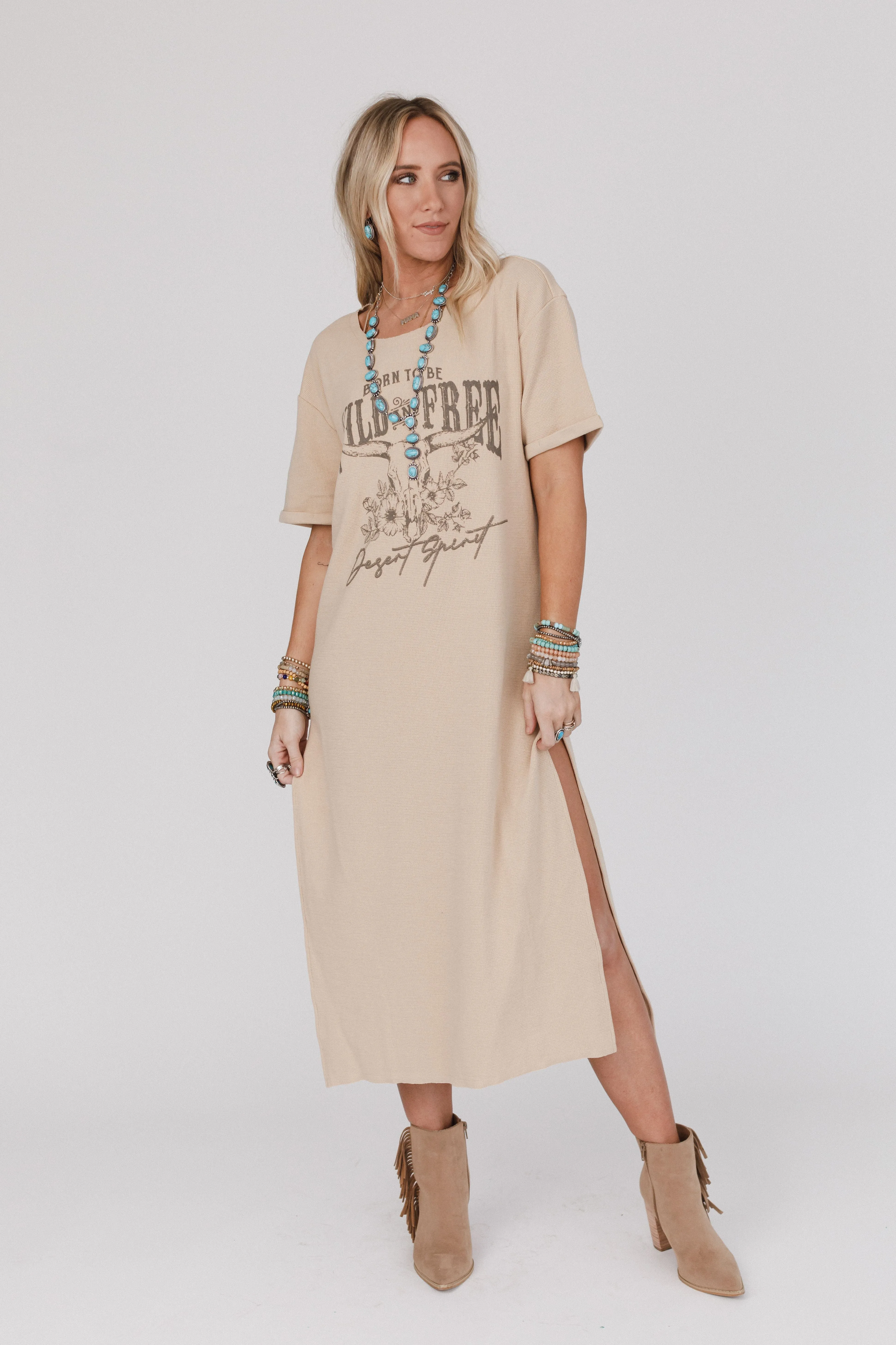 You're gonna love the laid back and relaxed style of the Desert Spirit Graphic Tee Dress!