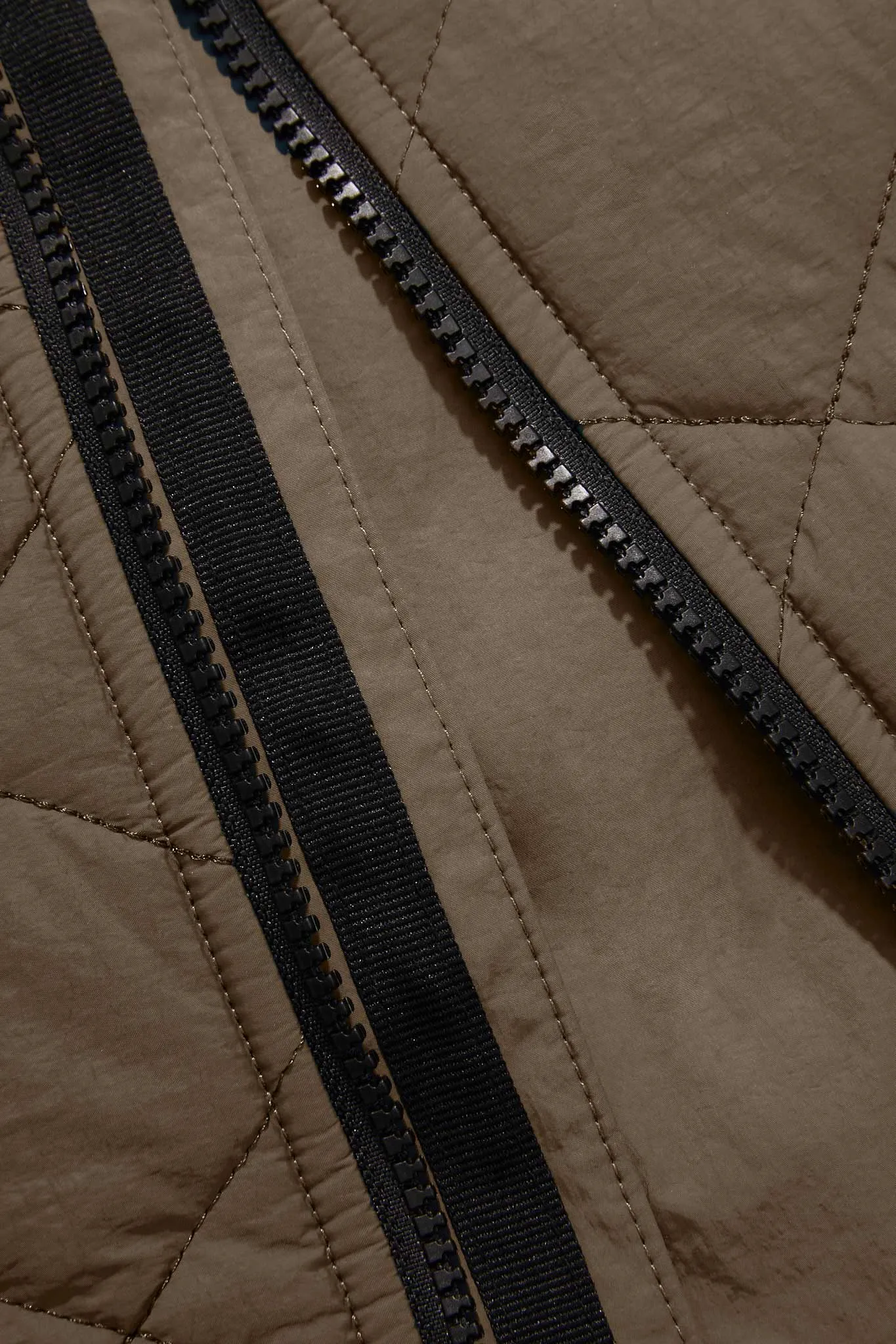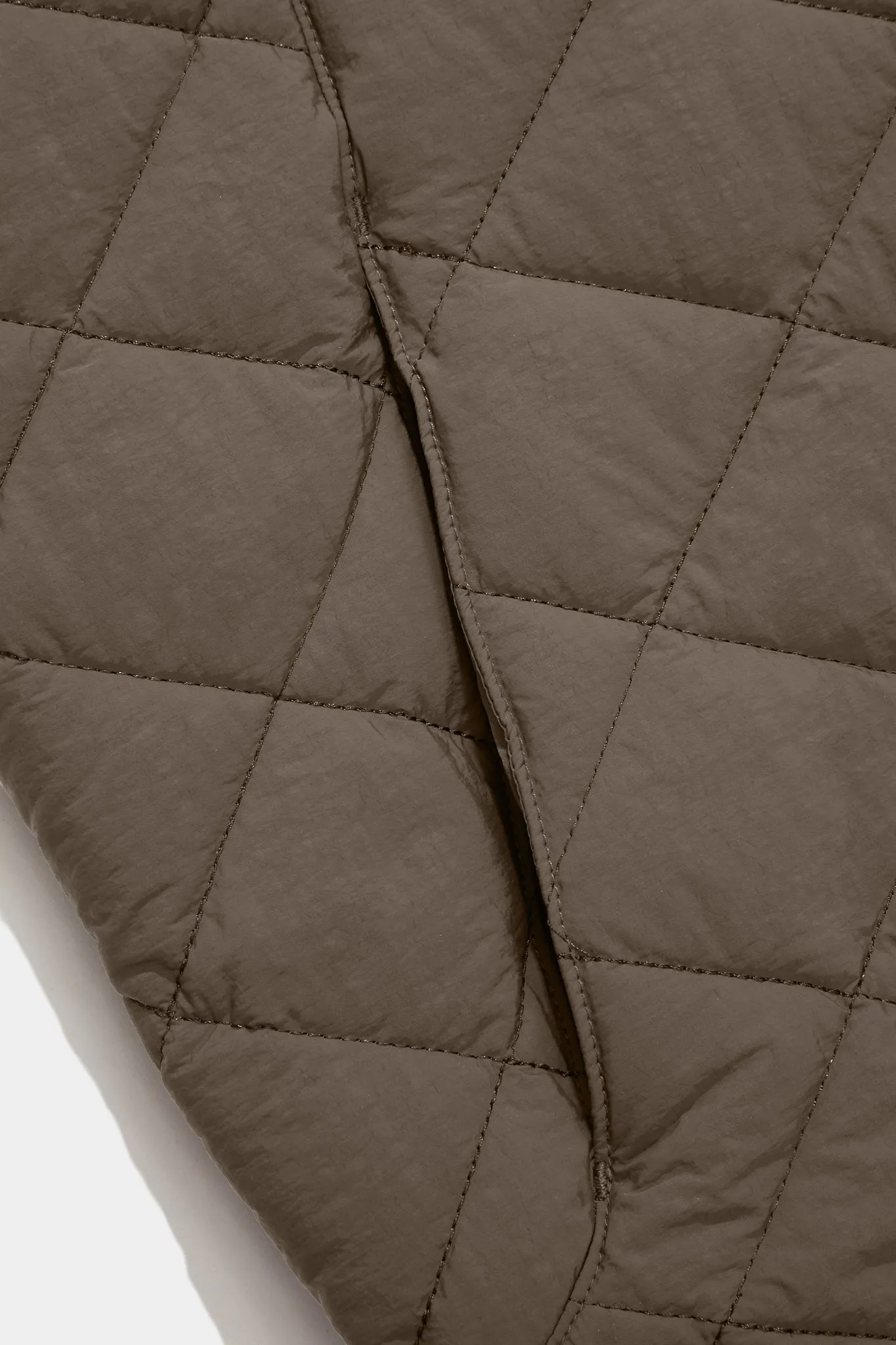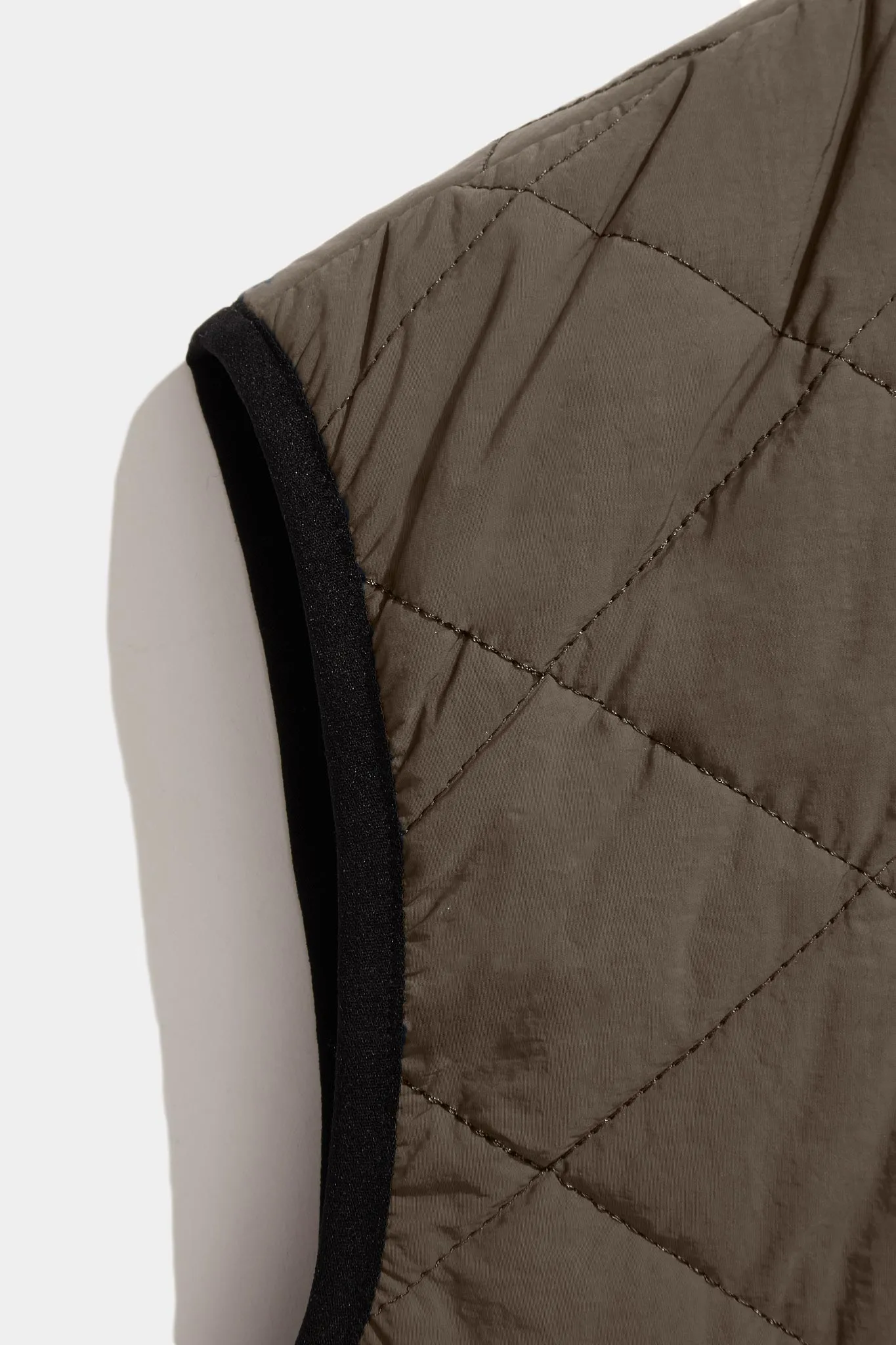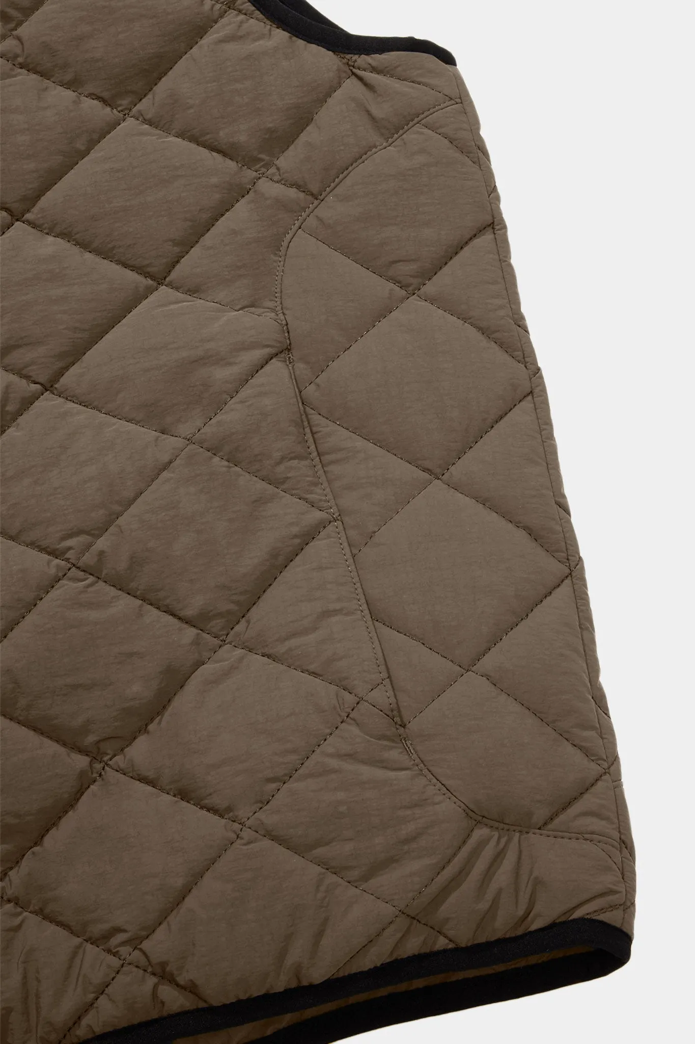 Taking subtle design cues from OG workwear found on construction sites, the Diamond Vest has zippered hand pockets that hide under curved side panel detailing. The rear section of the jacket features a utility stow pocket for small accessories. Armhole and waist openings are cleanly finished with stretch binding for a snug draft free fit. Drizzle proof exterior is machine quilted to a 80 gram insulation and can handle the raw fall weather of the Northeast.