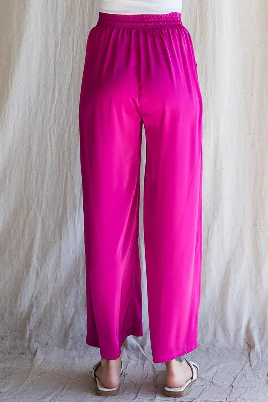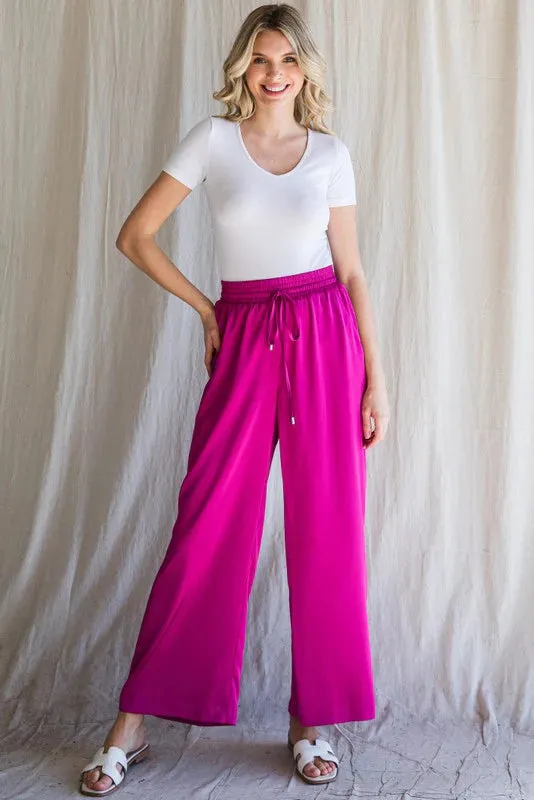 You'll be Summer ready with these adorable wide leg pants! Featuring a lightweight satin-like fabric, smocked elastic waistband with beaded drawstring, and front pockets. These babes can easily be dressed up or worn casually. Perfect for those hot Summer nights!
