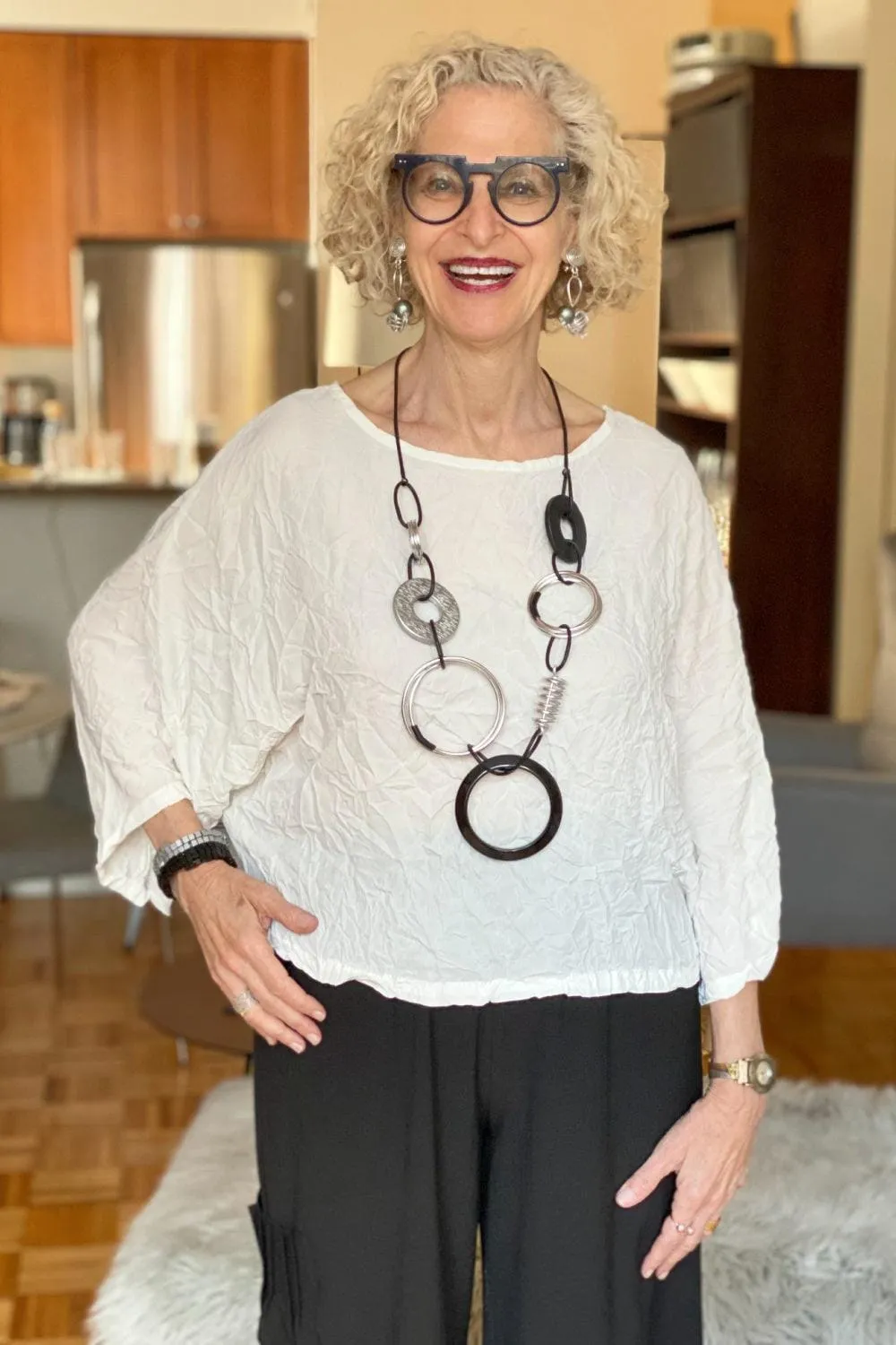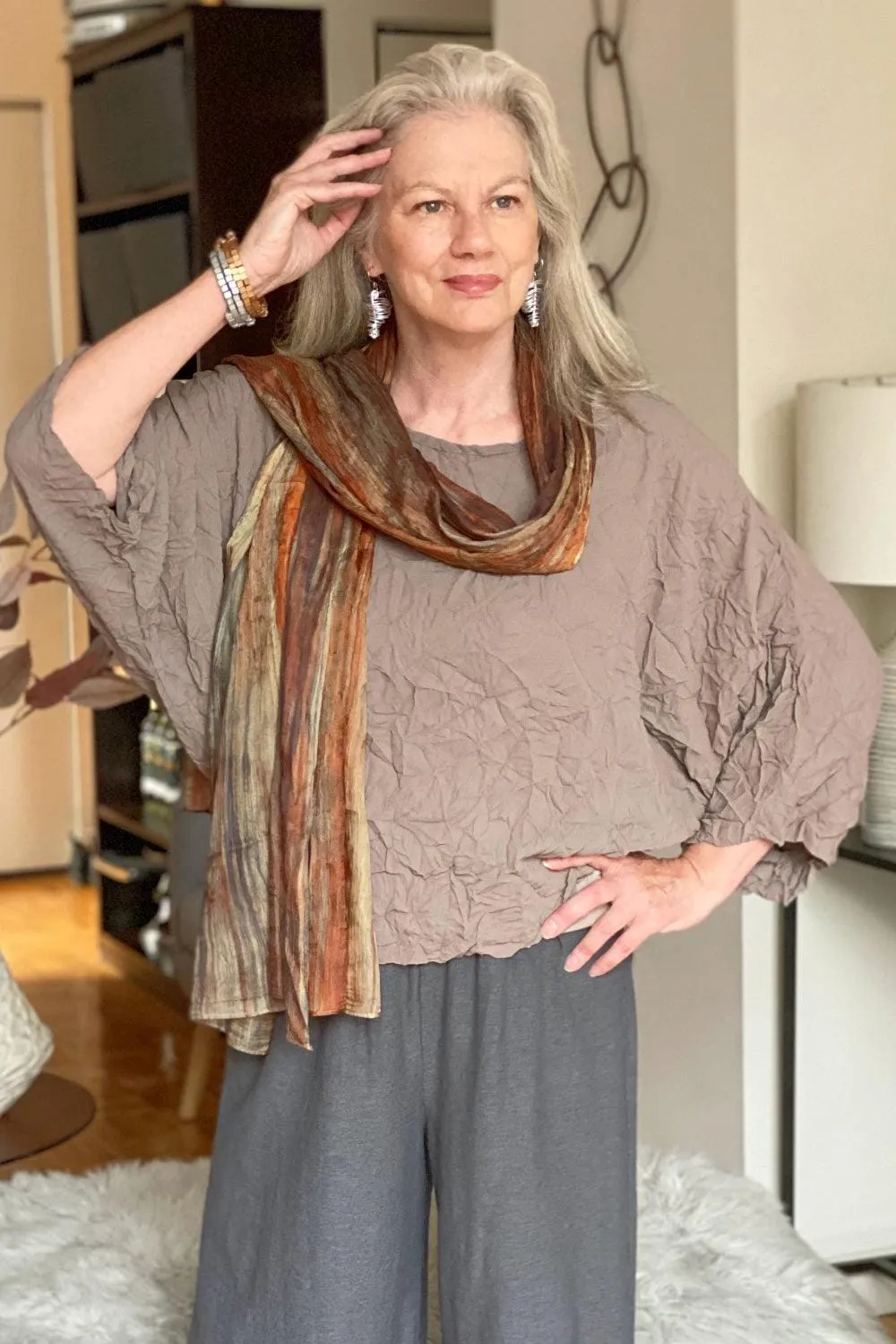 Dolman Sleeved Crop Top is a Simple Boxy Women's Pullover that has 3/4 Length Full Cut Sleeves. Heat Baked Wrinkles adding dimension and texture. Rounded Color and is made of 100% Poly, Machine Washable. Made in USA.