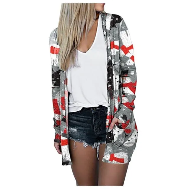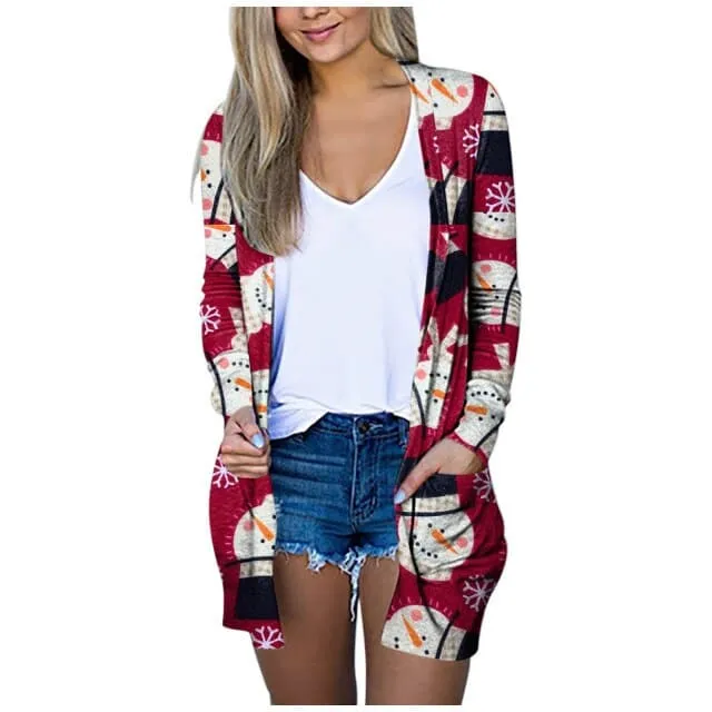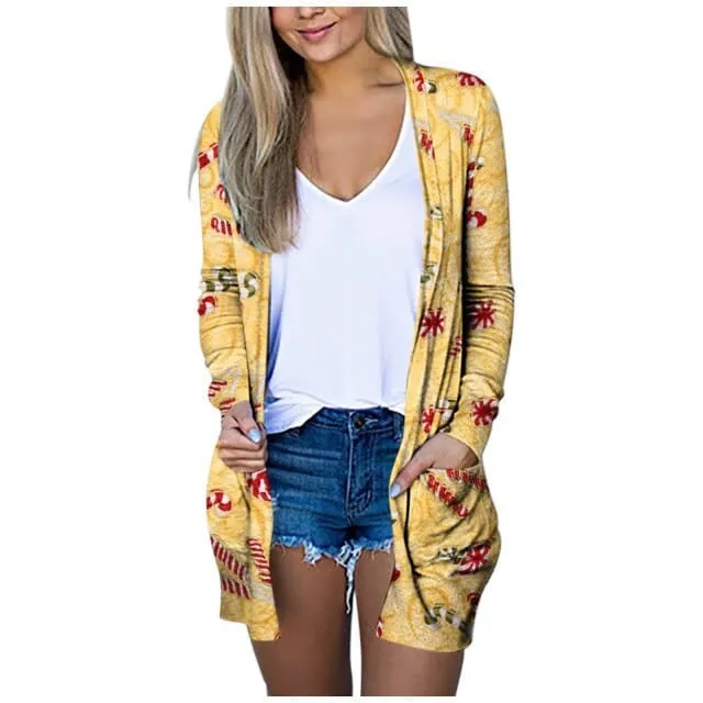 DressBetty - Womens Christmas Print Cardigan Fashion V-neck Long Sleeve Coat Pockets Outerwear Sweater