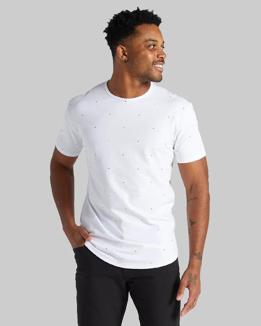 For those who love their LUX tees but want a unique look, the Drop-Cut: LUX Shirt now features an innovative polka dot pattern. It adds a unique touch to your everyday fit, while maintaining the sleek feel and drop-cut hem you know and love.