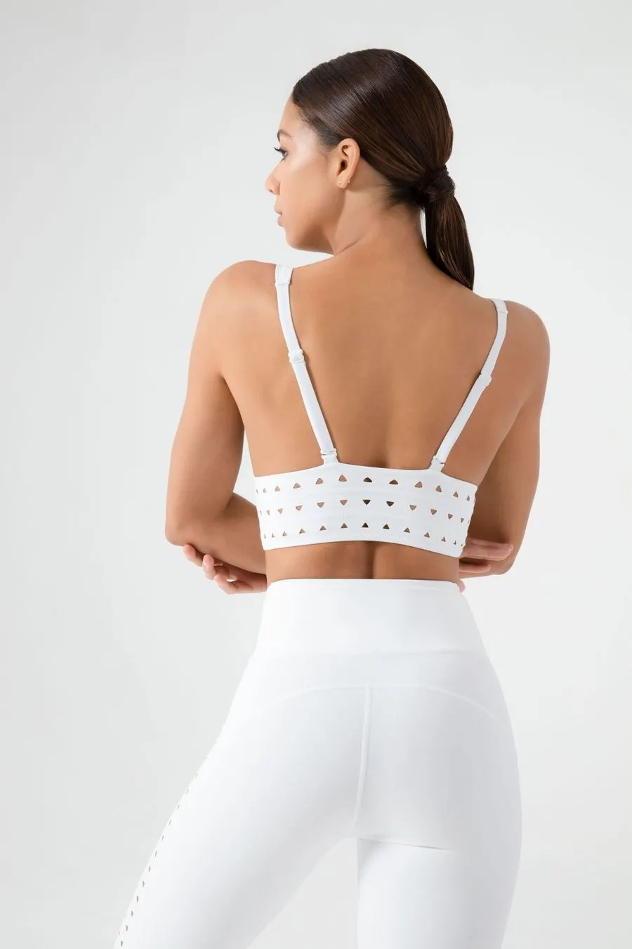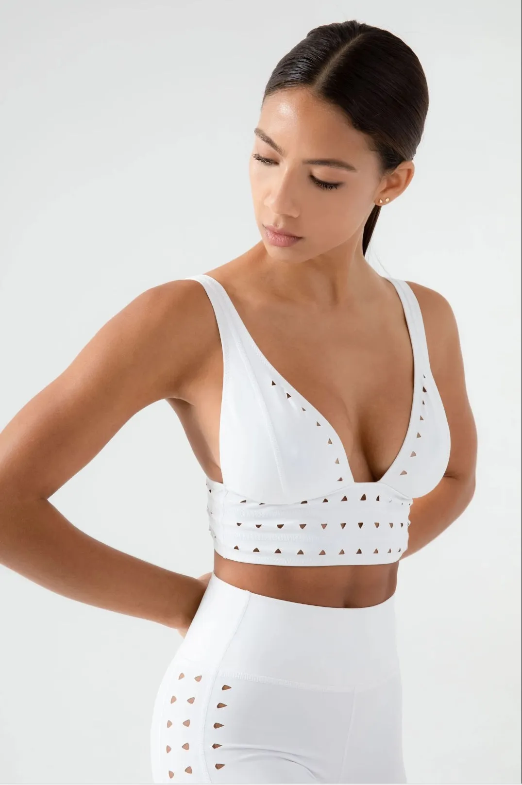 The Eden Top, it's a HIIT... Triangle laser cut outs in a super soft, breathable fabric. Wear with your favorite denim jacket for a daytime look.