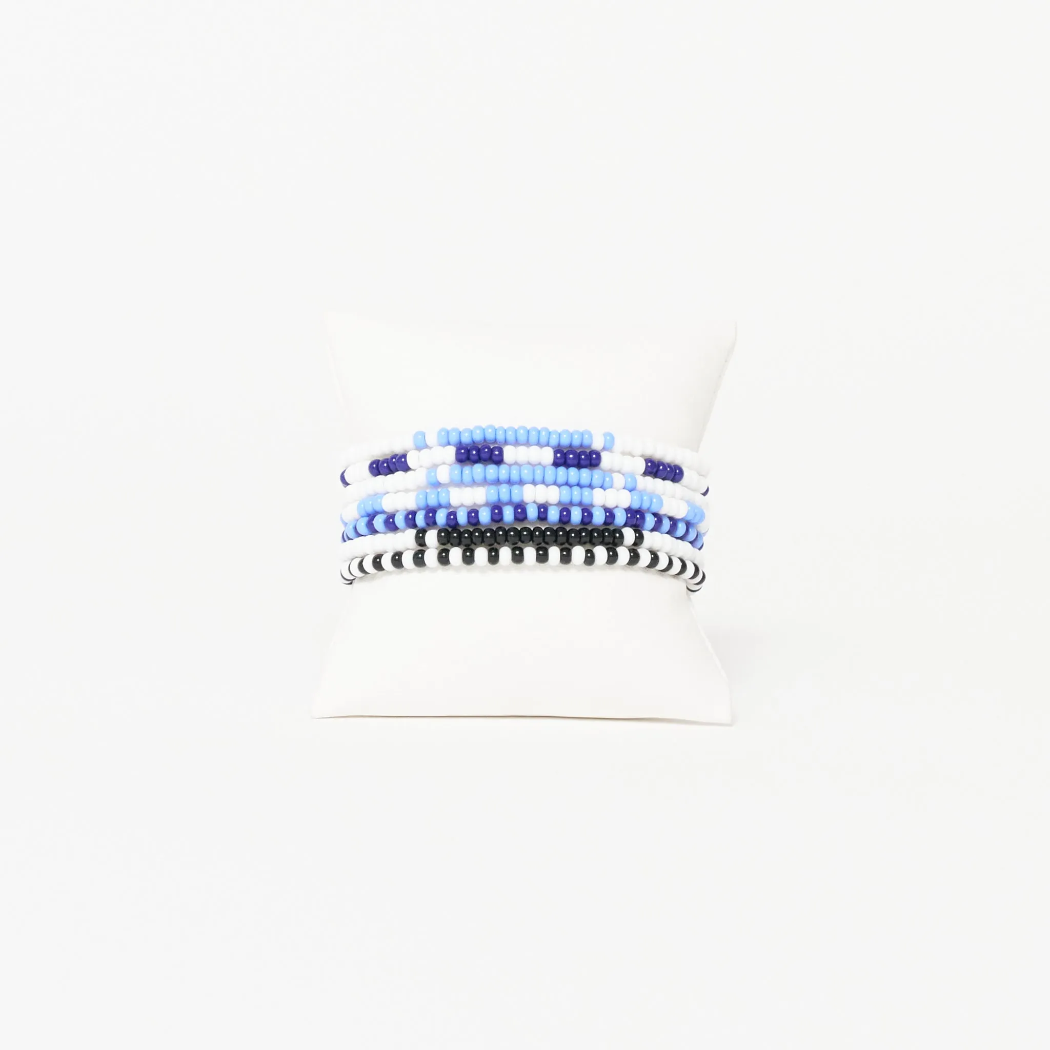 A colorful mixed 6-pack of super-fun elastic single-strand bracelets. Wear them together as a statement, or share the pack with friends. Lovingly handmade by our collective of Maasai Maker Mums.