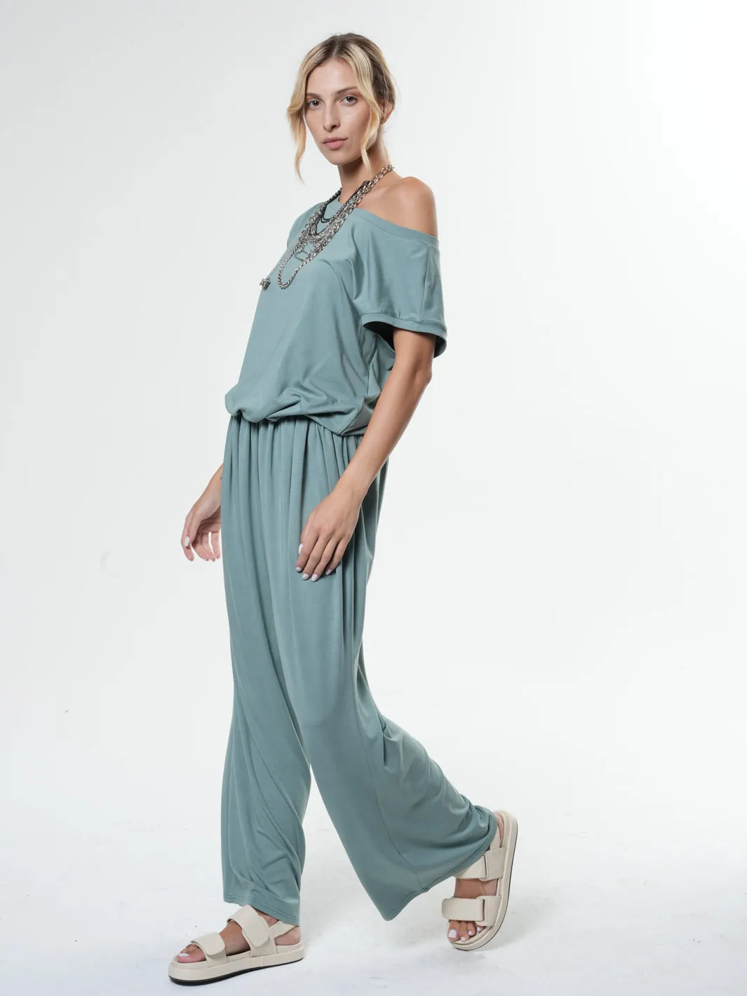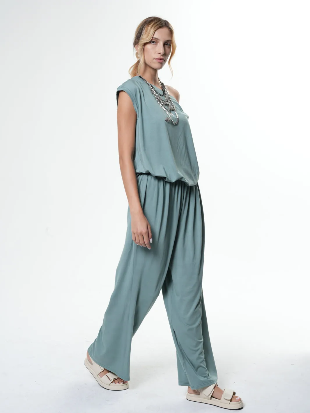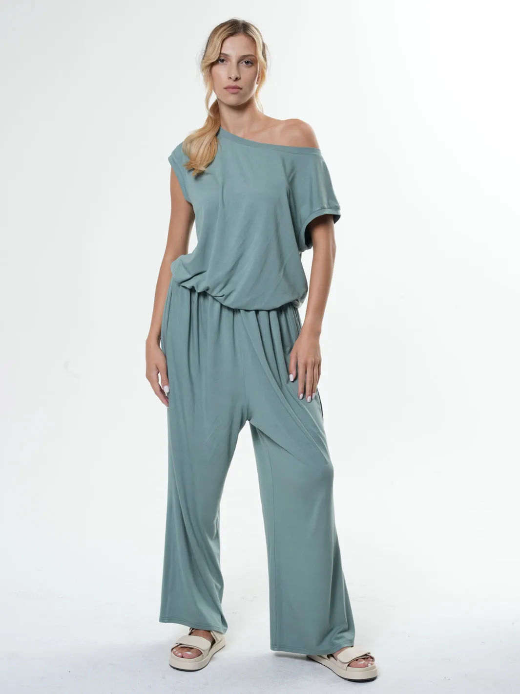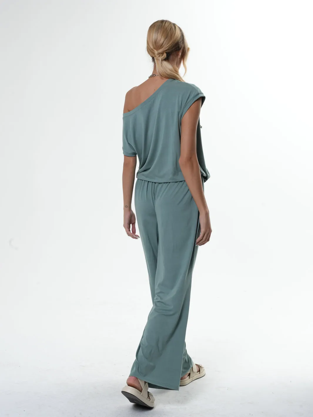 When we think of warm weather, we think of jumpsuits - they are always in fashion, comfortable and easy to wear. The loose fit makes it perfect for a day walk in the city or a night out. For more comfort, we made the waist elastic. And in order to give you the opportunity to wear it at a more formal occasion, you can have an open shoulder which looks more classy and elegant.