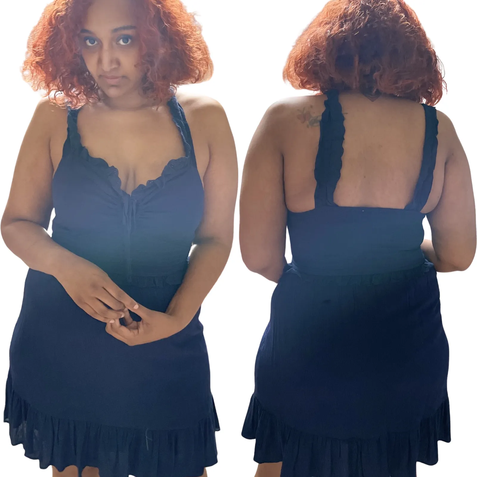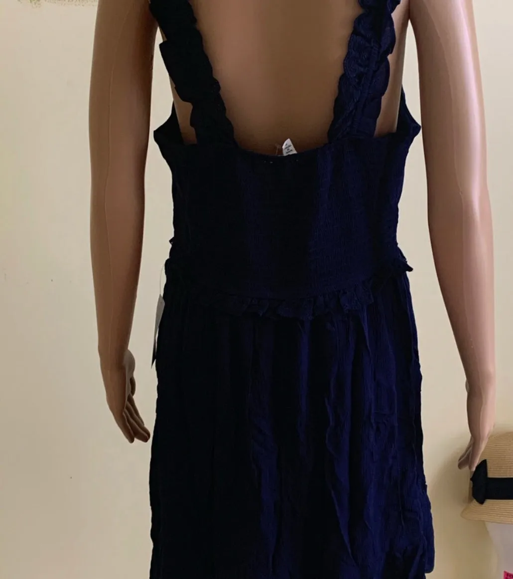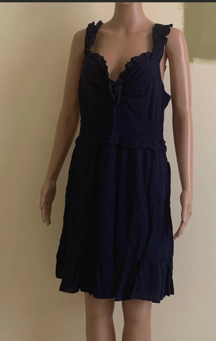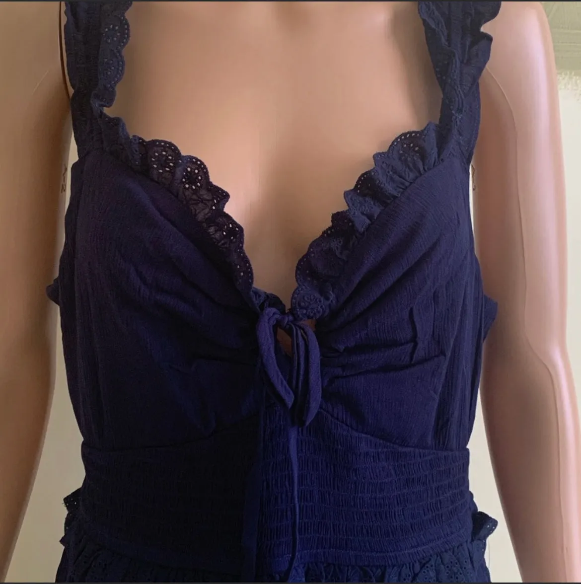 A simple, sophisticated eyelet trim outlines a sweetheart neckline dress with a front keyhole. - Sweetheart neck - Sleeveless - Non-adjustable shoulder straps - Pullover style - Solid colorway - Eyelet trim - Smocked detail - Approx. 36.5" length Self: 100% rayon Lining: 100% polyester