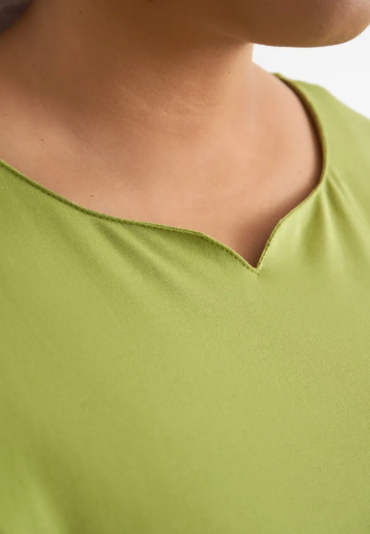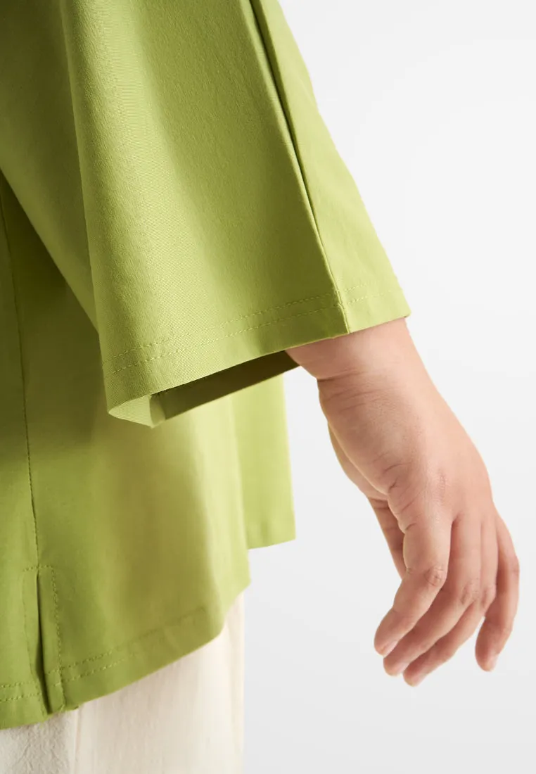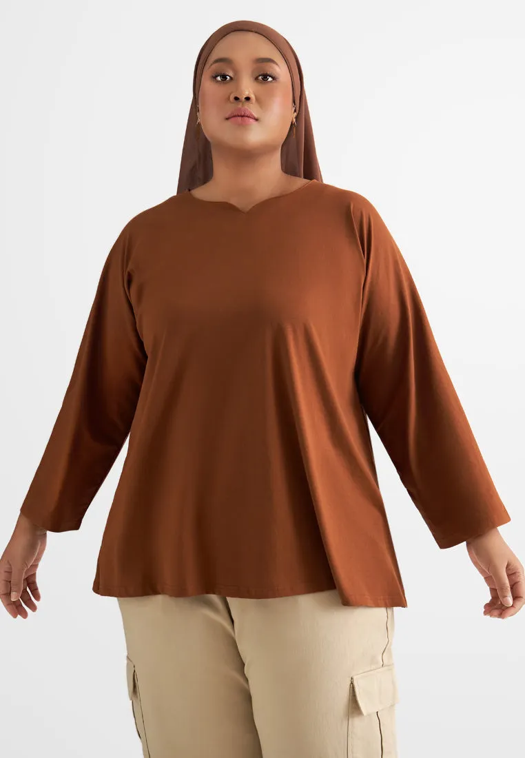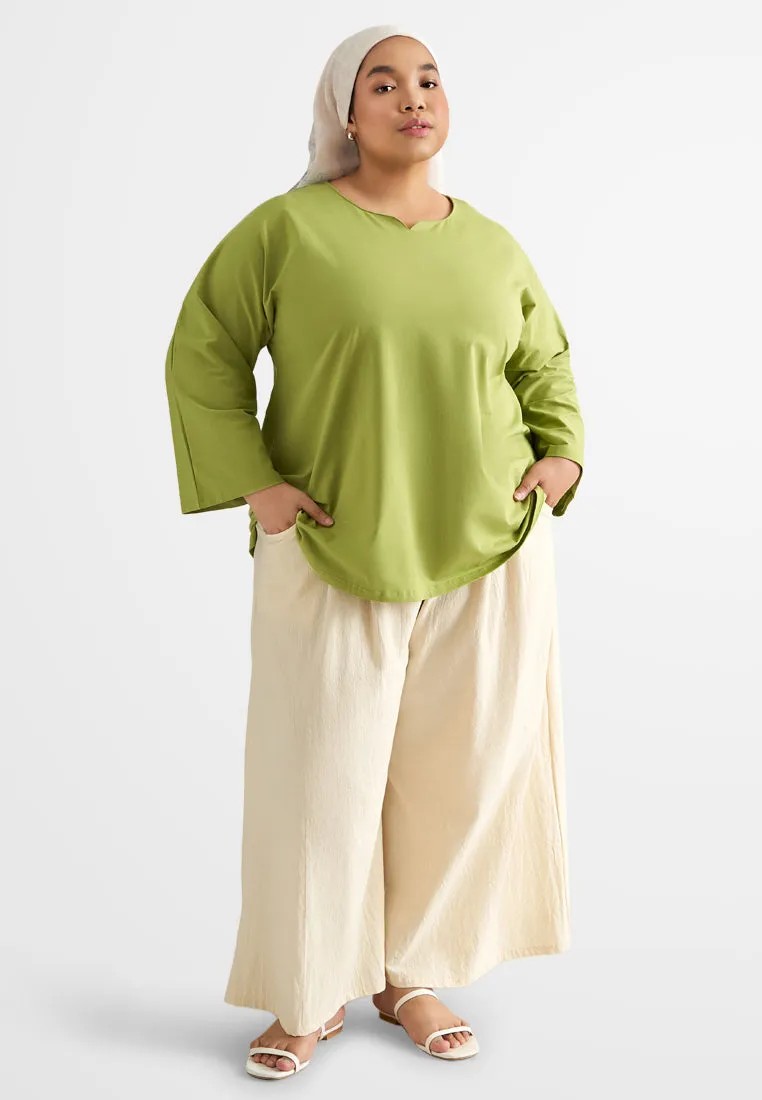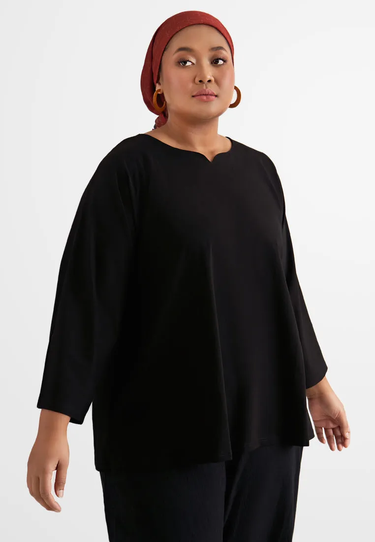 Round crown neckline - Long sleeves - Side slits - Loose fit