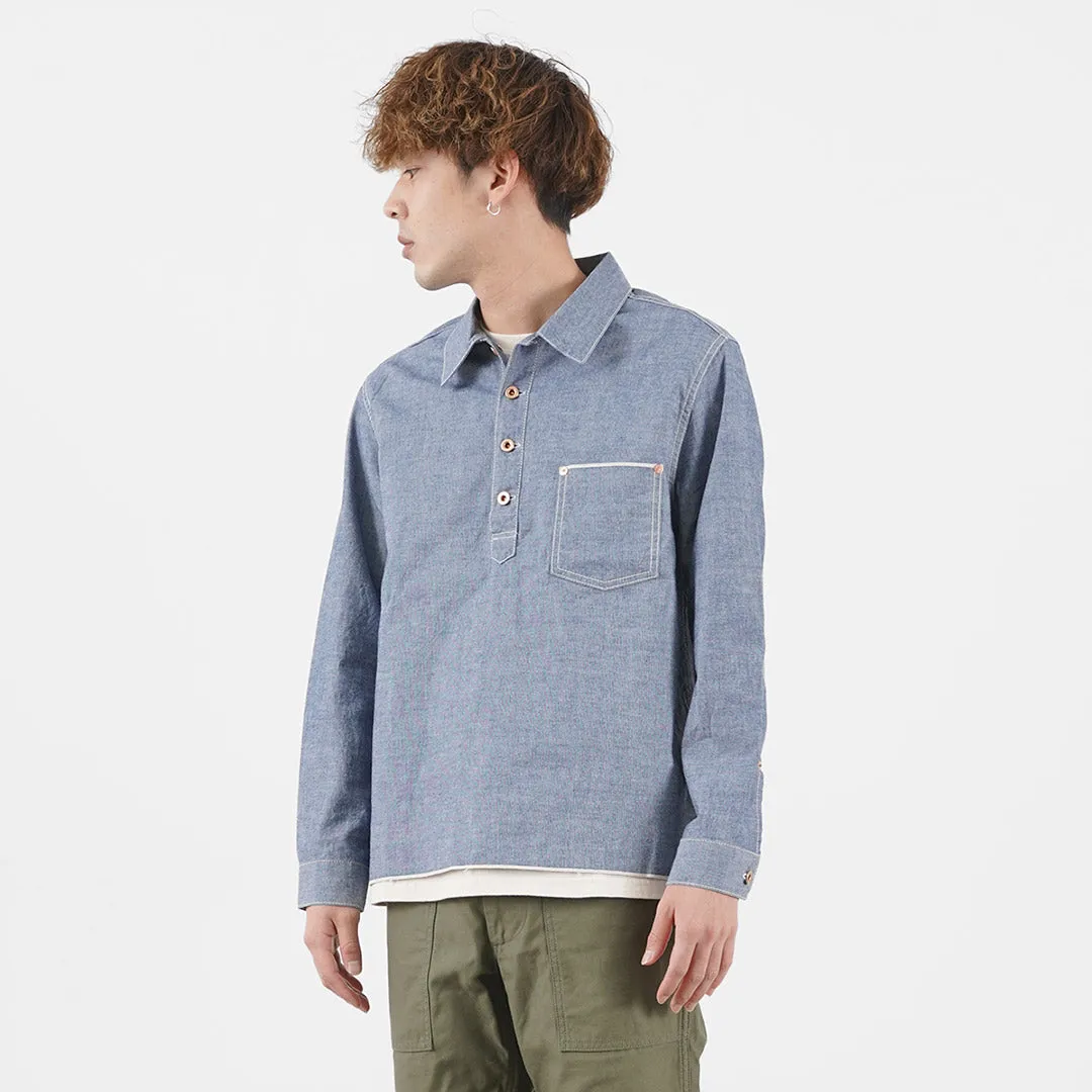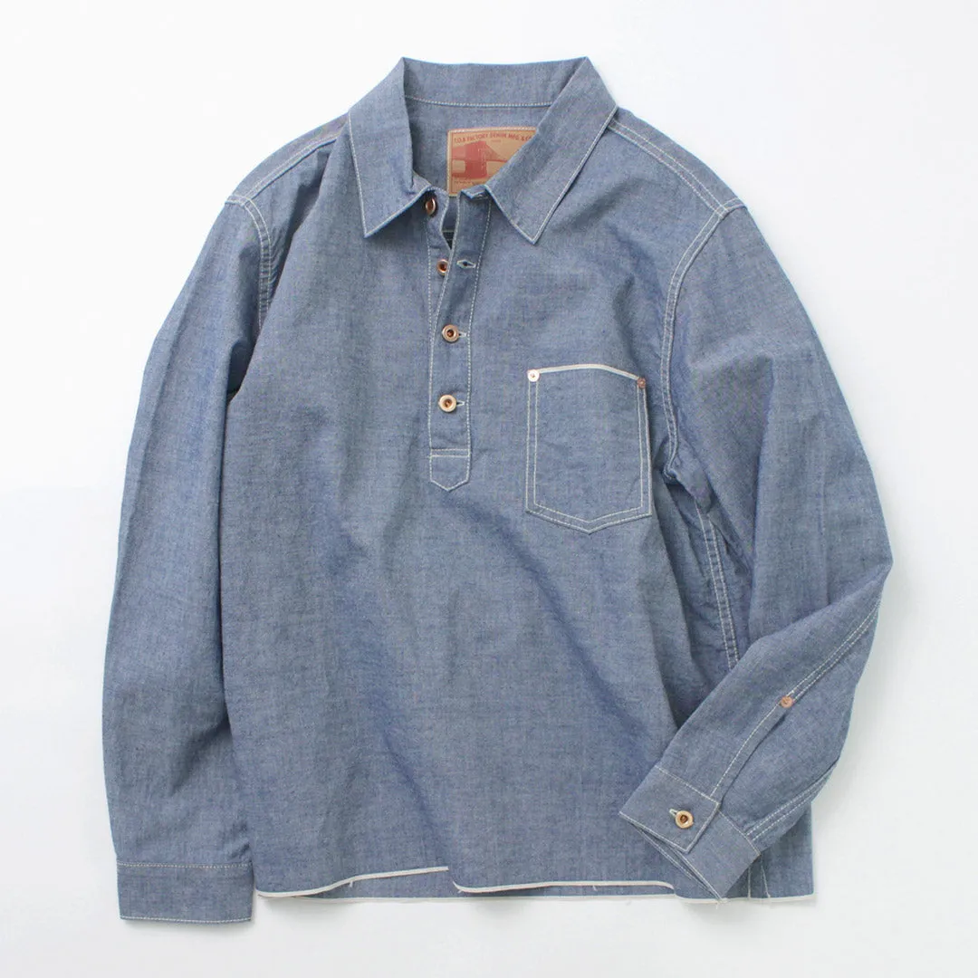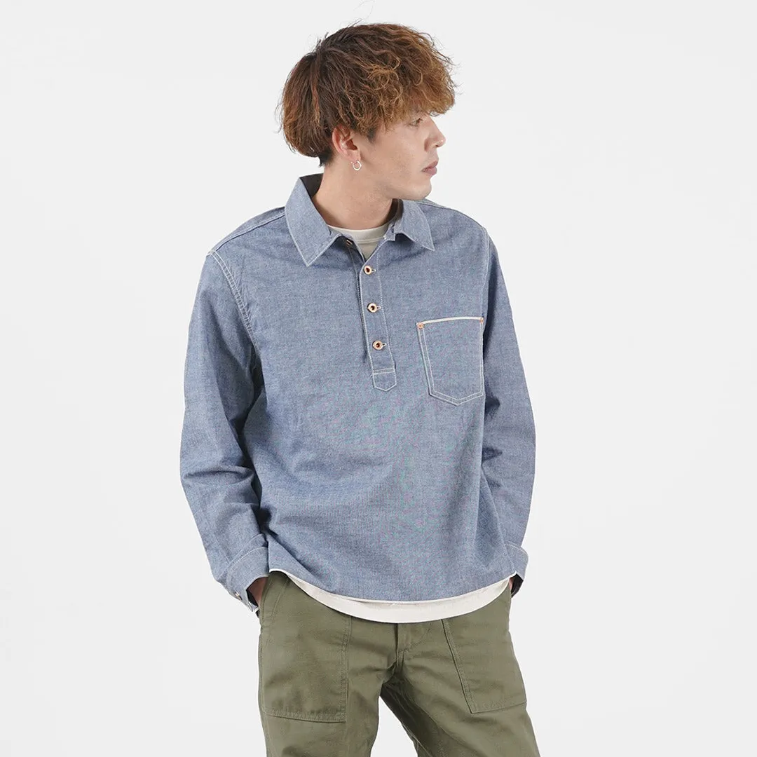 The shape of FOB FACTORY's popular "G3 Denim Pullover Jacket" is maintained, and this piece is made of 9oz selvedge chambray, which is easy to wear in the spring and summer.