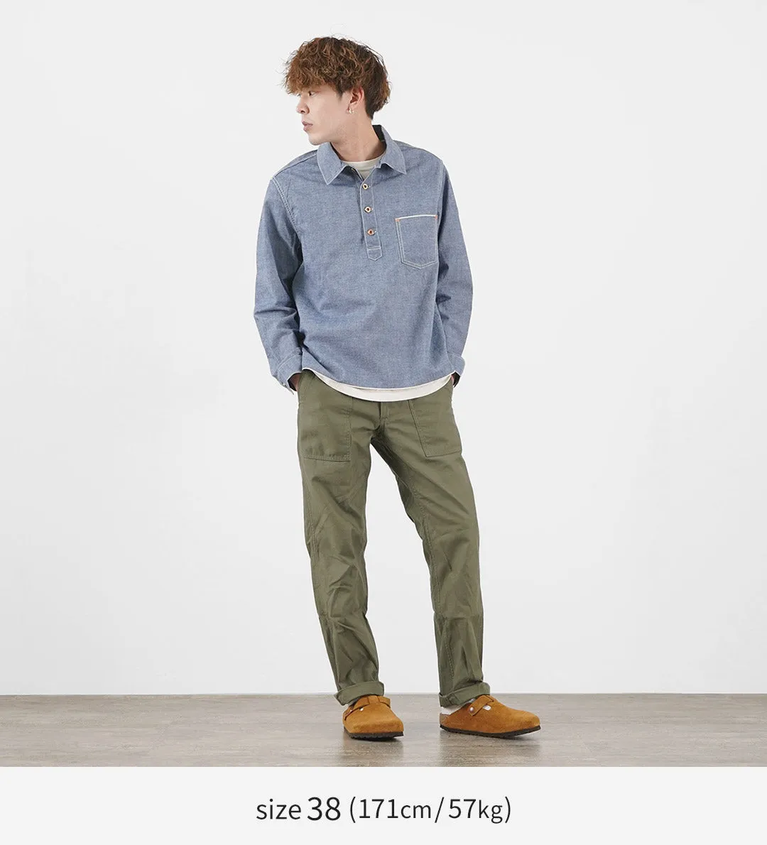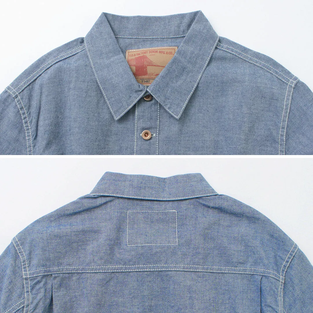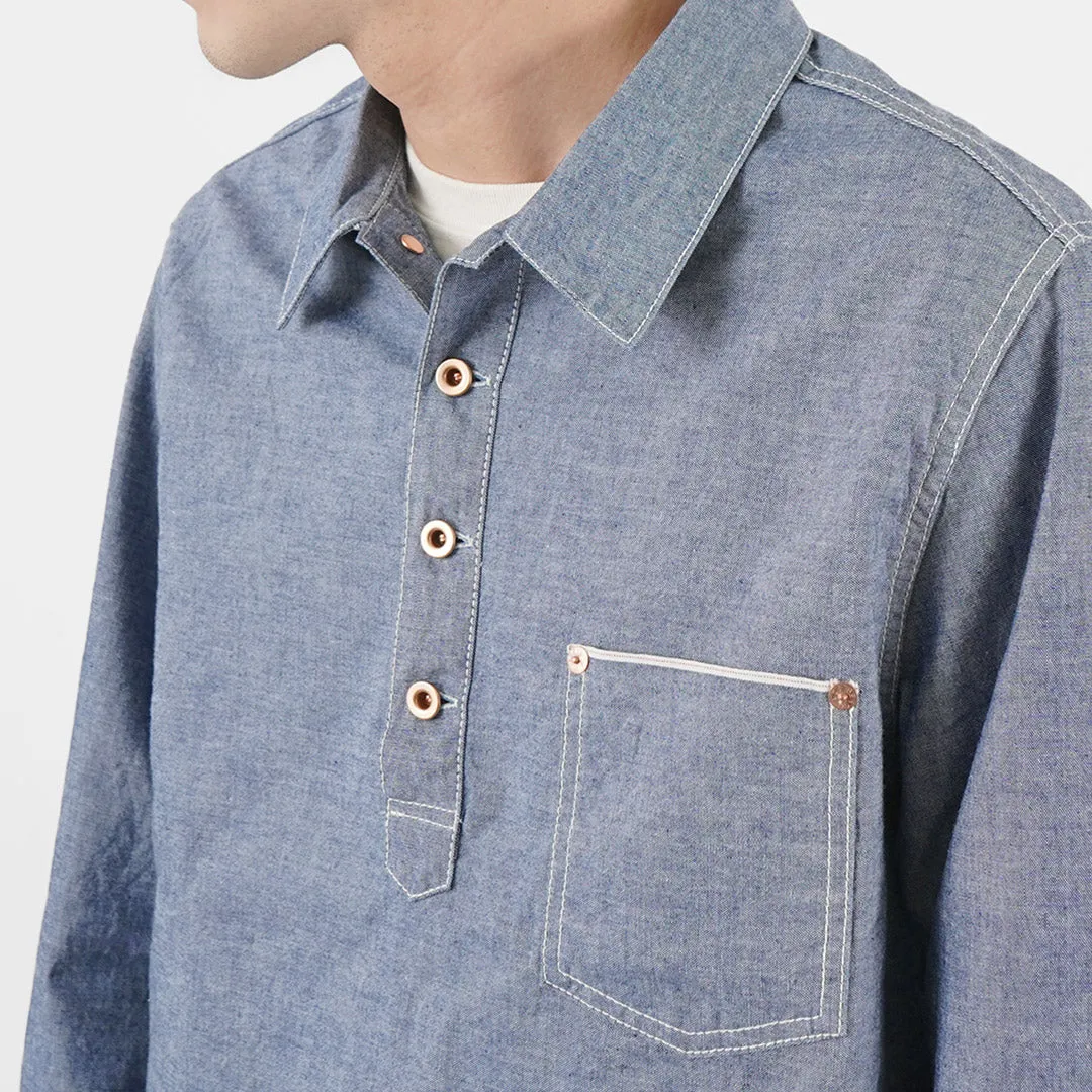 The shape of FOB FACTORY's popular "G3 Denim Pullover Jacket" is maintained, and this piece is made of 9oz selvedge chambray, which is easy to wear in the spring and summer.