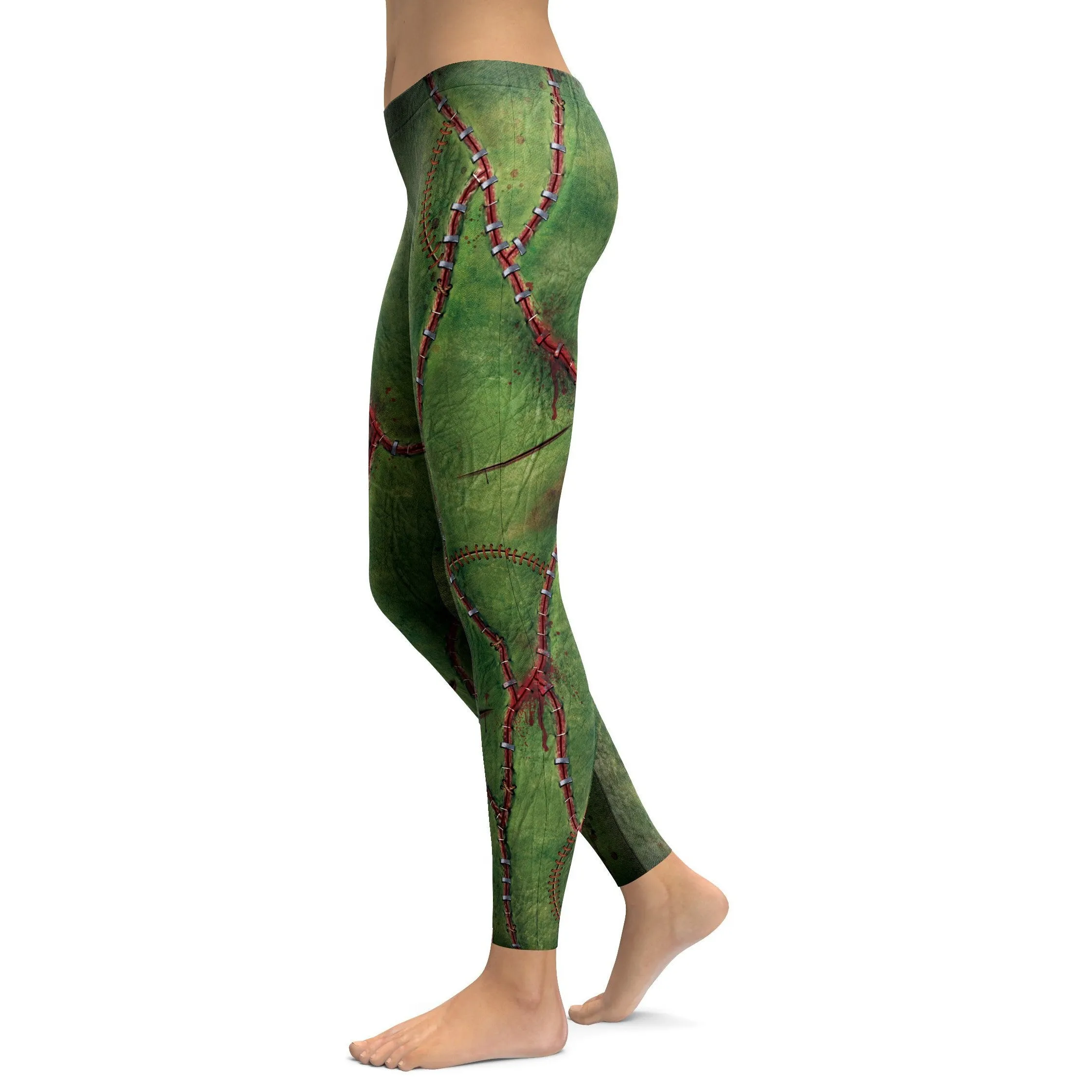 The detail in these printed legging is gruesomely awesome; these smooth green leggings look wrinkled, and the stapled red veins look raised.