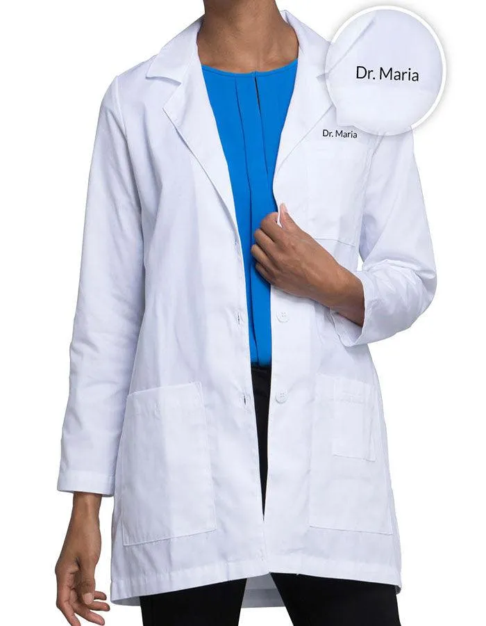 Shop Free Embroidery Cherokee 32 Inch Women's Multiple Pockets White Lab Coat at affordable price. Get the best quality women's white lab coat embroidered. The lab coat with free embroidery is a steal for the price. Loaded with performance features, you get optimal value.