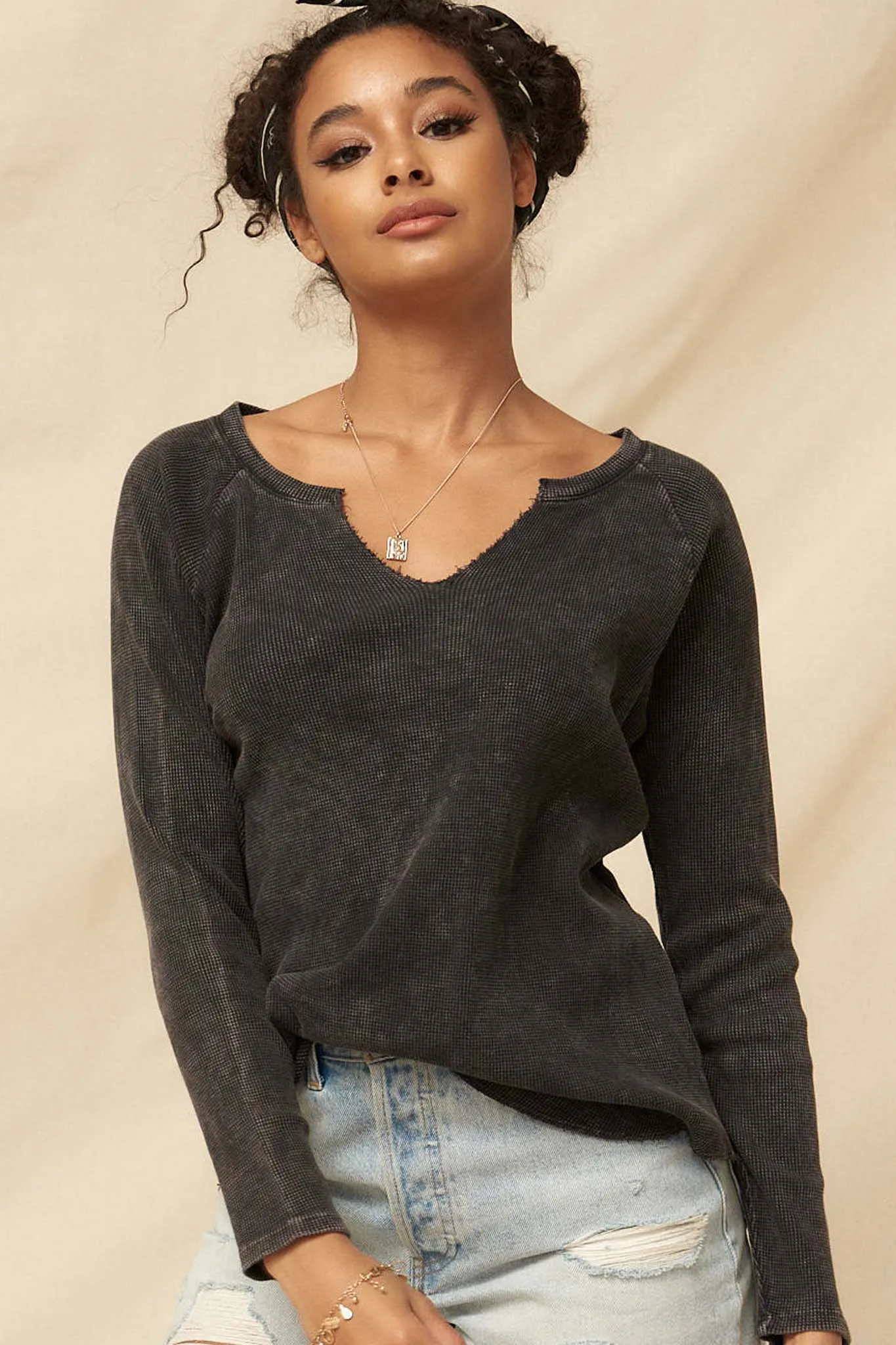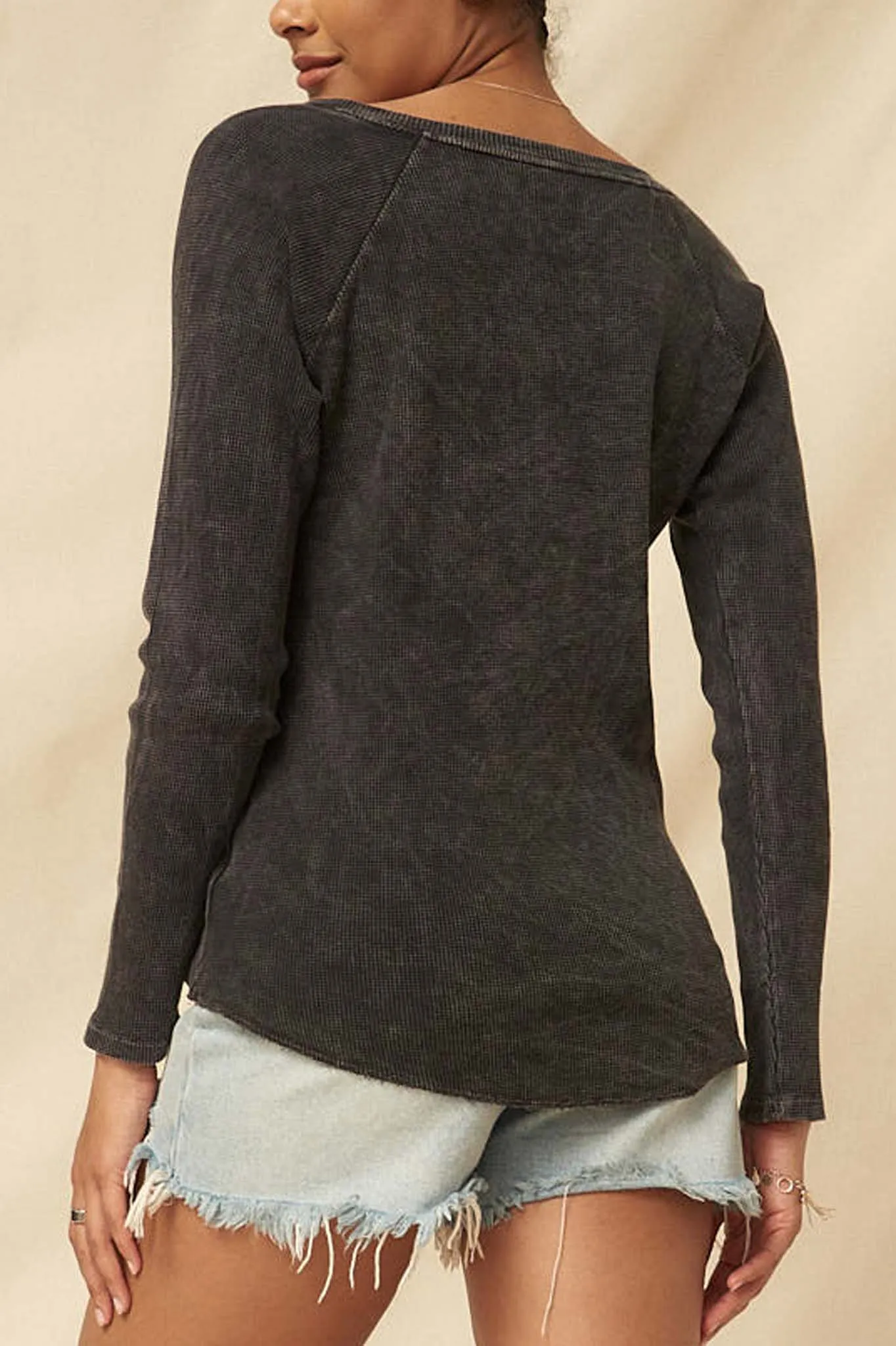 Fun Fest Vintage Split-Neck Thermal Waffle Top