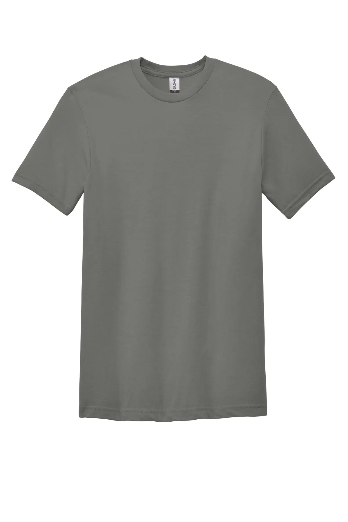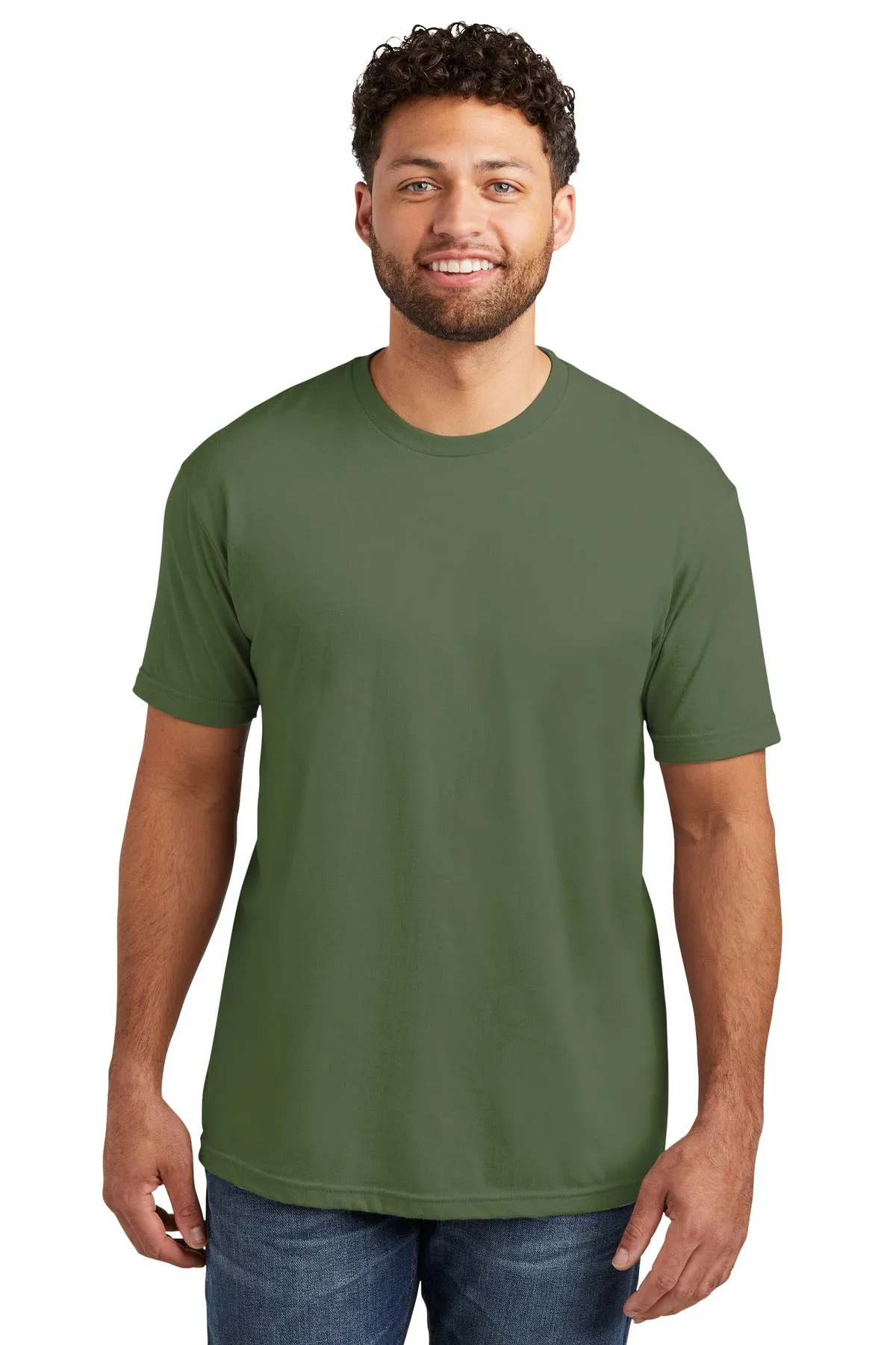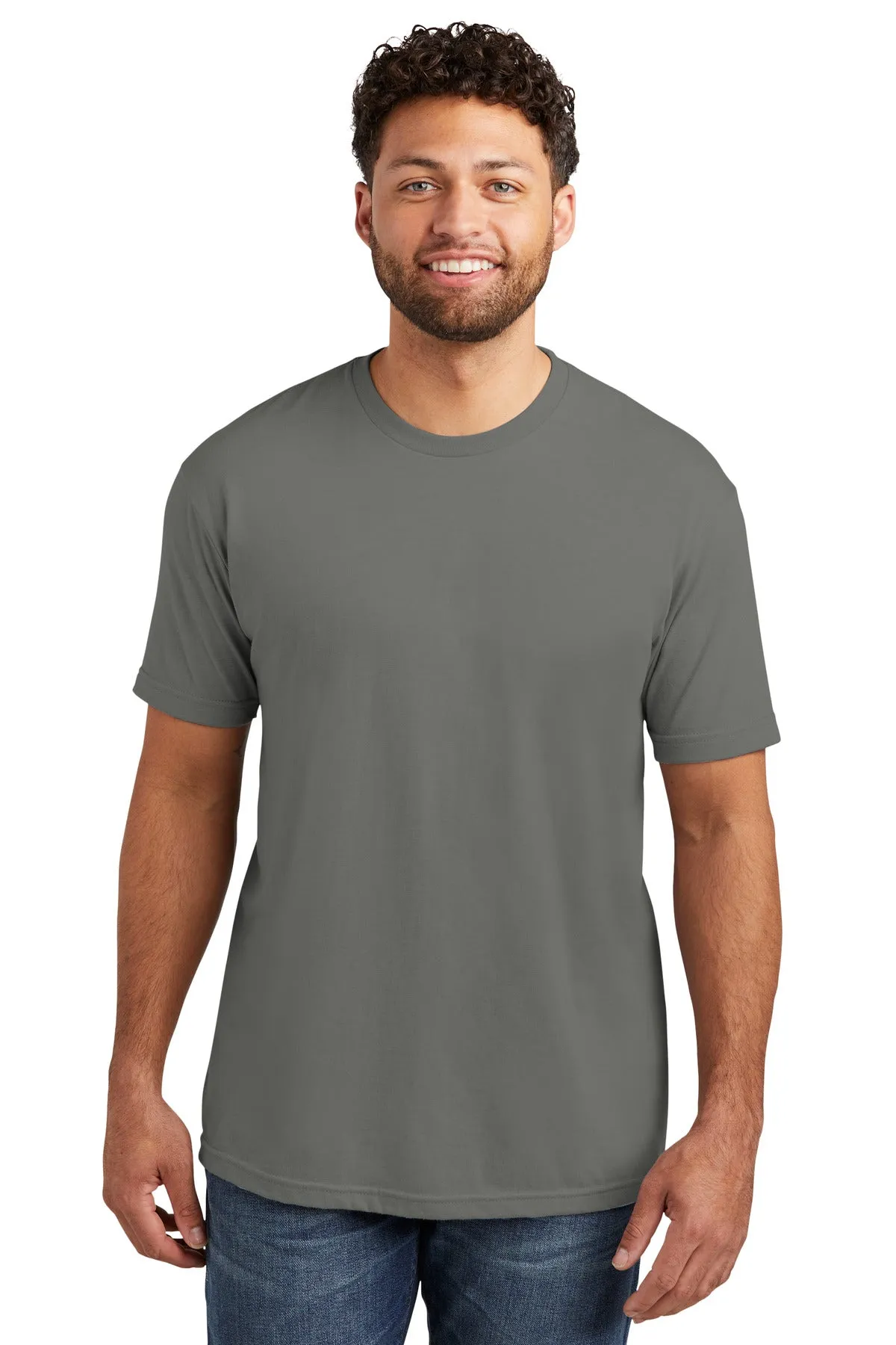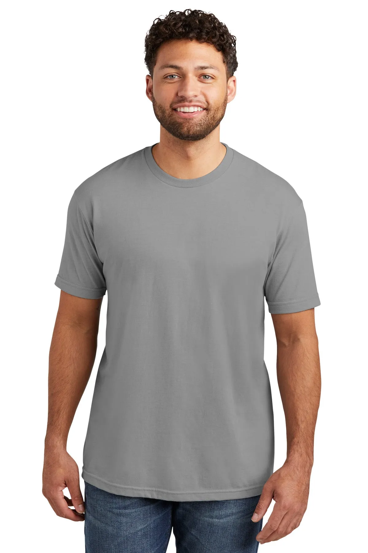 4.6-ounce 60/40 ring spun cotton/polyester Tearaway label High stitch density for a smoother printing surface Seamed 5/8 neck Taped neck and shoulders Double-needle sleeves and hem Tubular body Classic fit