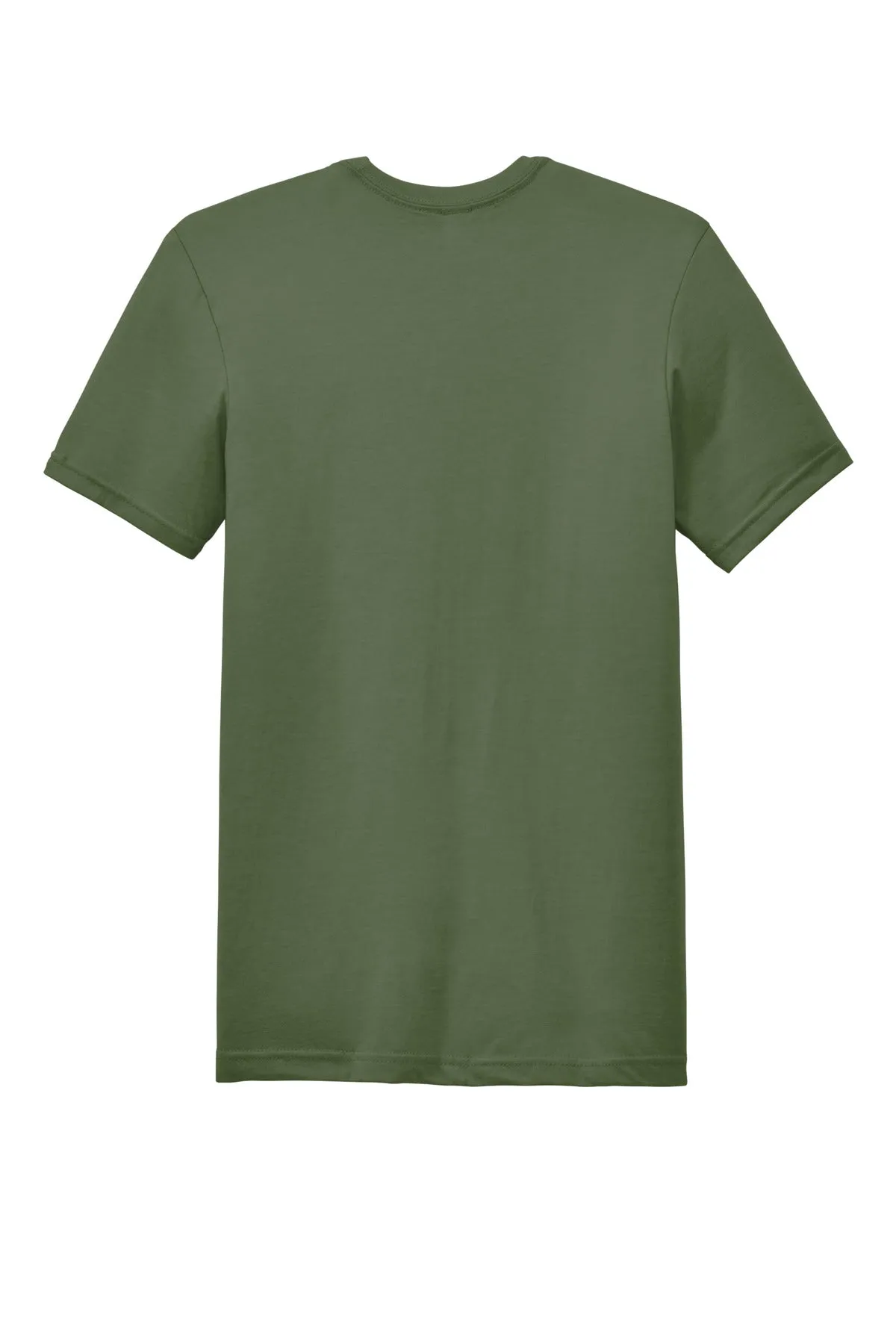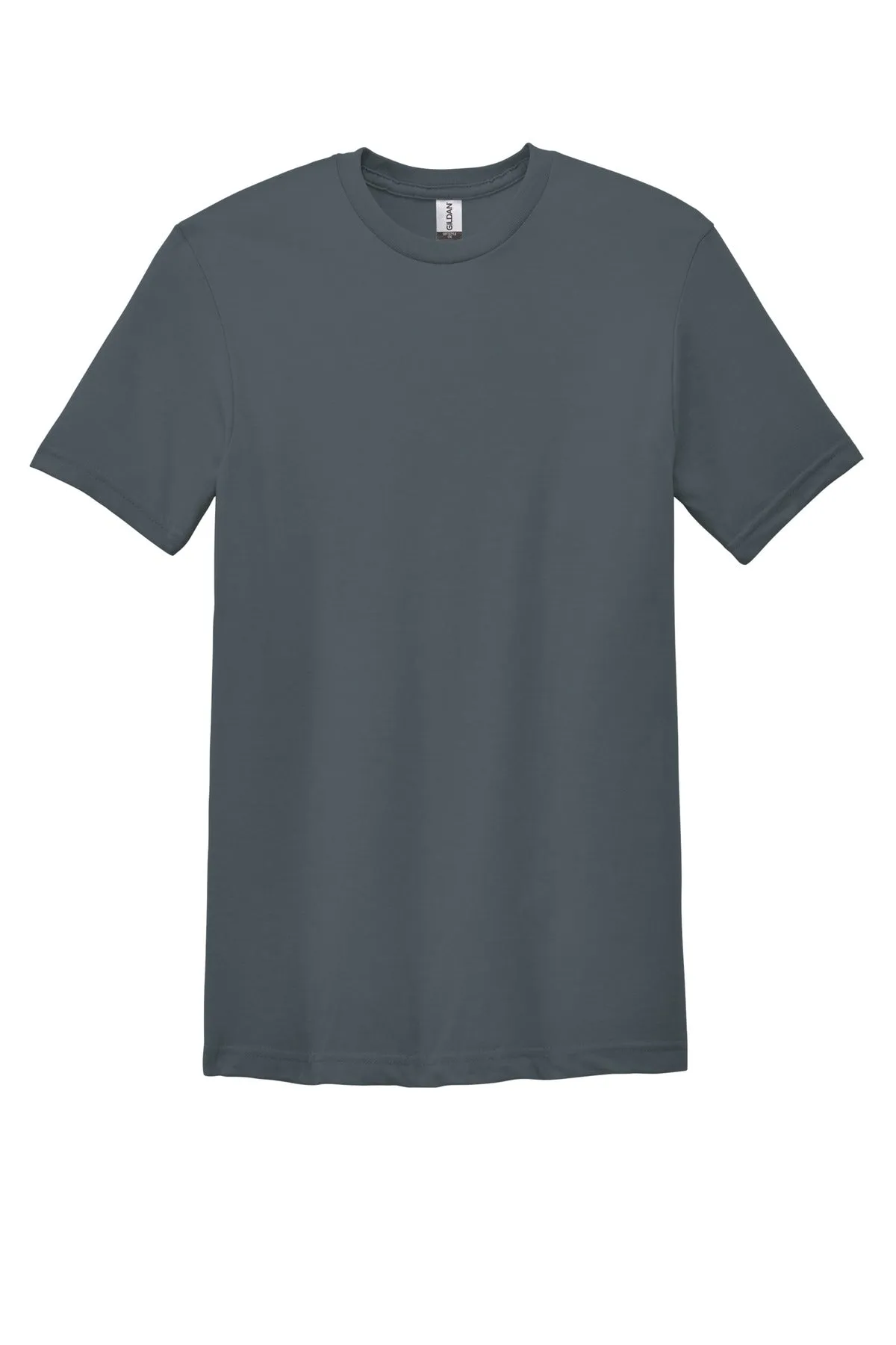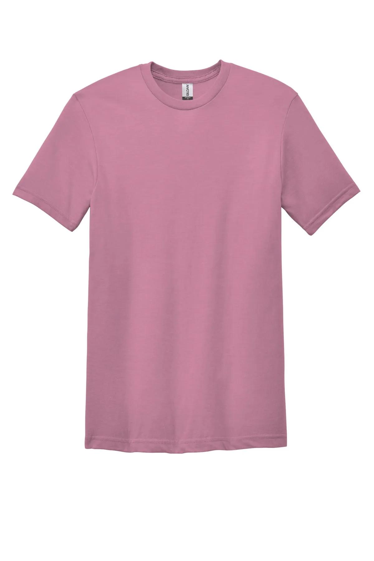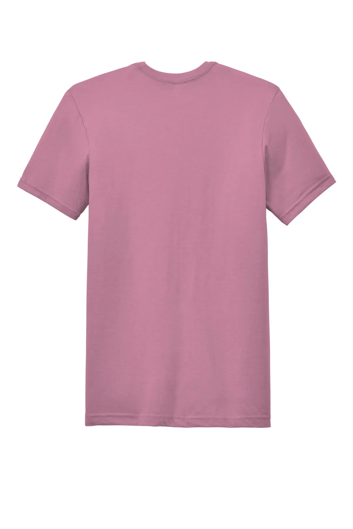 4.6-ounce 60/40 ring spun cotton/polyester Tearaway label High stitch density for a smoother printing surface Seamed 5/8 neck Taped neck and shoulders Double-needle sleeves and hem Tubular body Classic fit