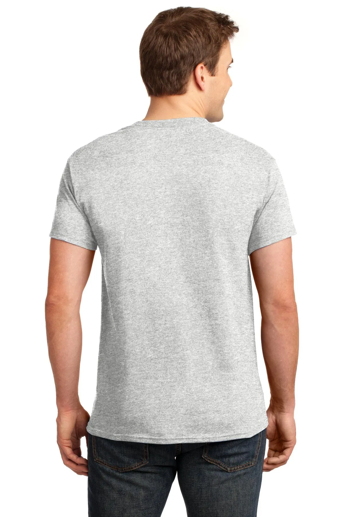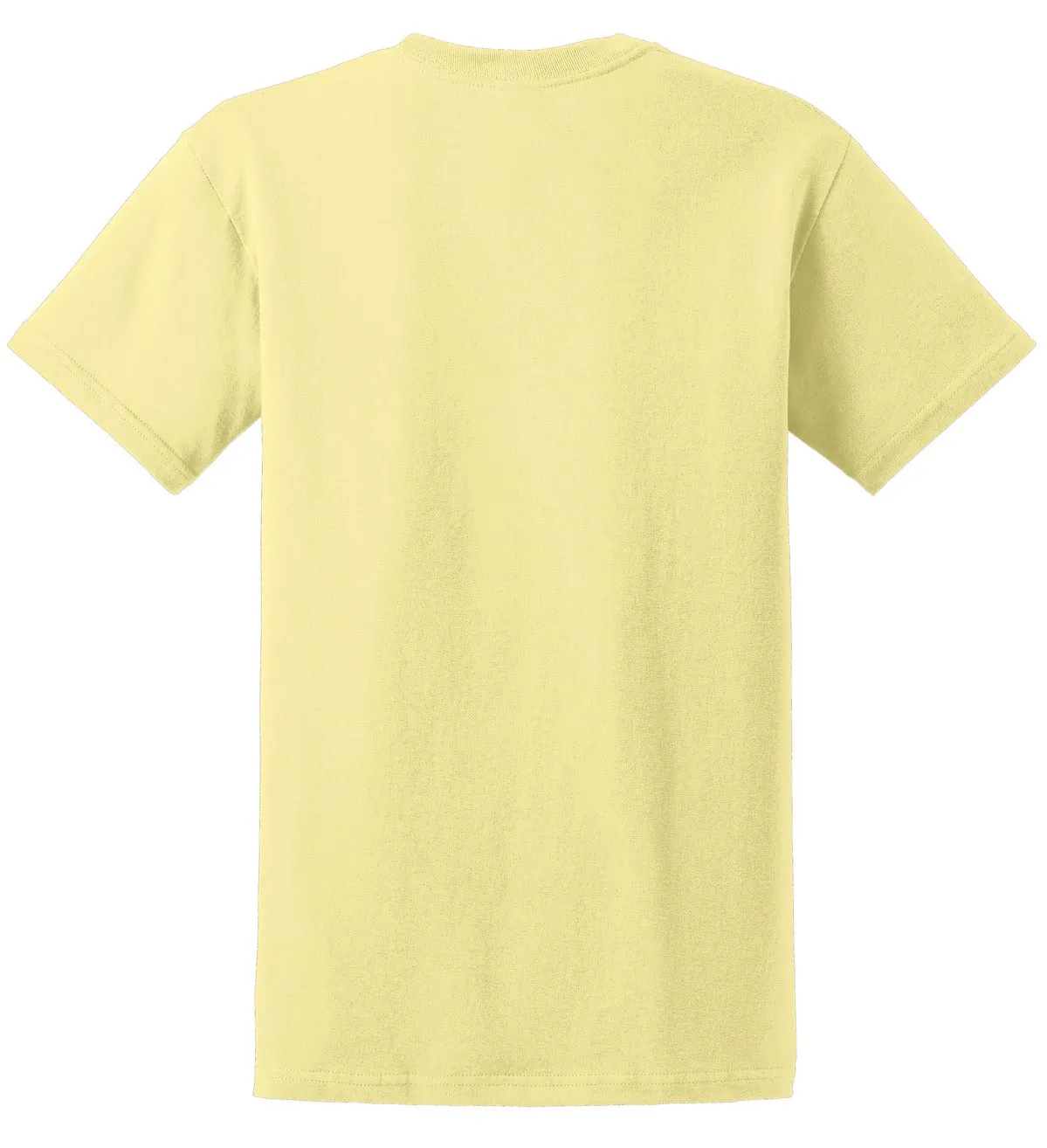 6.1-ounce, 100% cotton) 50/50 cotton/poly (Dark Heather, Safety Pink, Safety Green, Safety Orange, Heathered Cardinal, Heathered Indigo, Heathered Navy, Heathered Sapphire) 99/1 cotton/poly (Ash) 90/10 cotton/poly (Sports Grey, Antique Cherry Red, Antique Irish Green, Antique Royal) Seamless double-needle 7/8" collar Double-needle sleeves and hem Taped neck and shoulders Tubular Due to the nature of 50/50 cotton/poly neon fabrics, special care must be taken throughout the printing process.