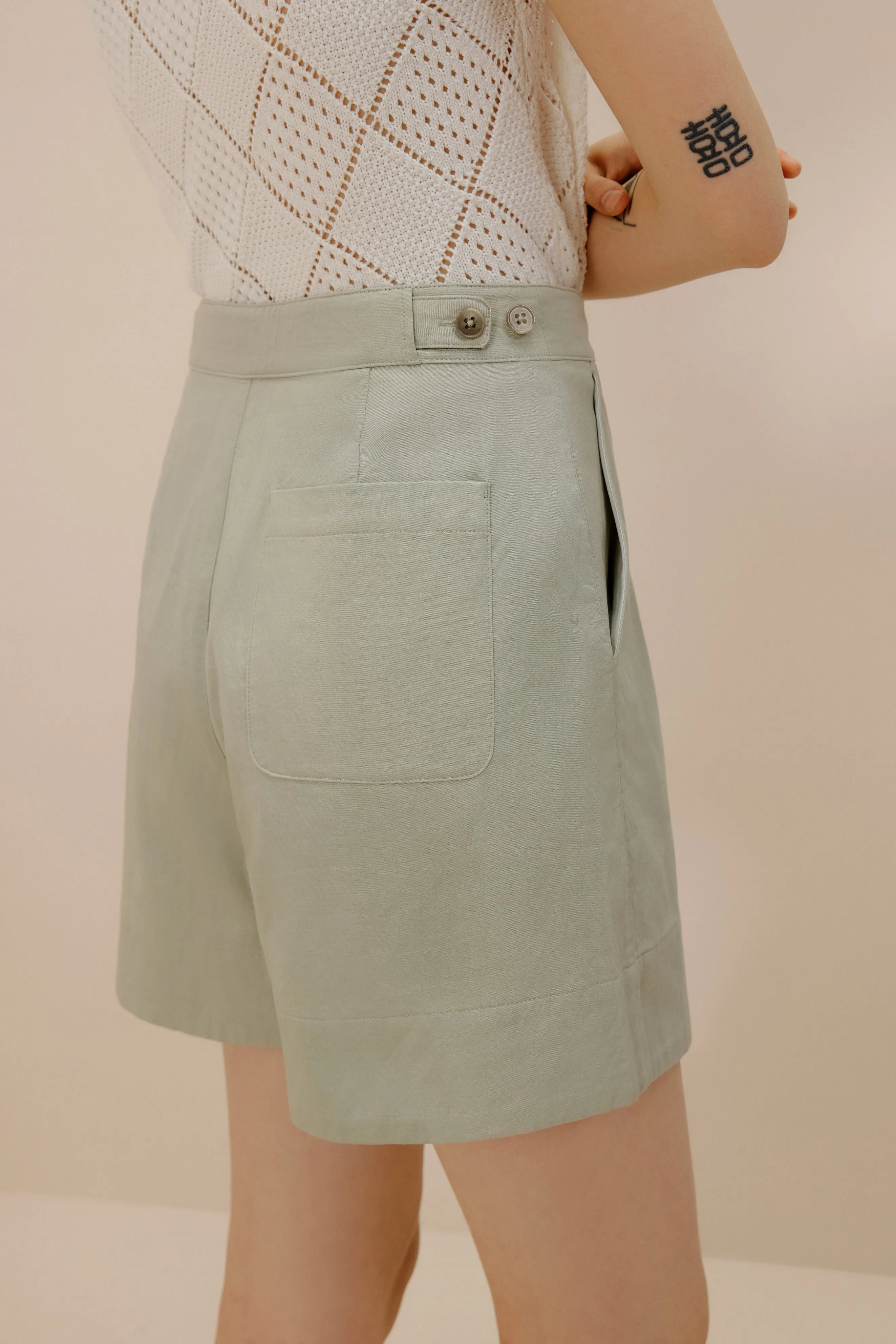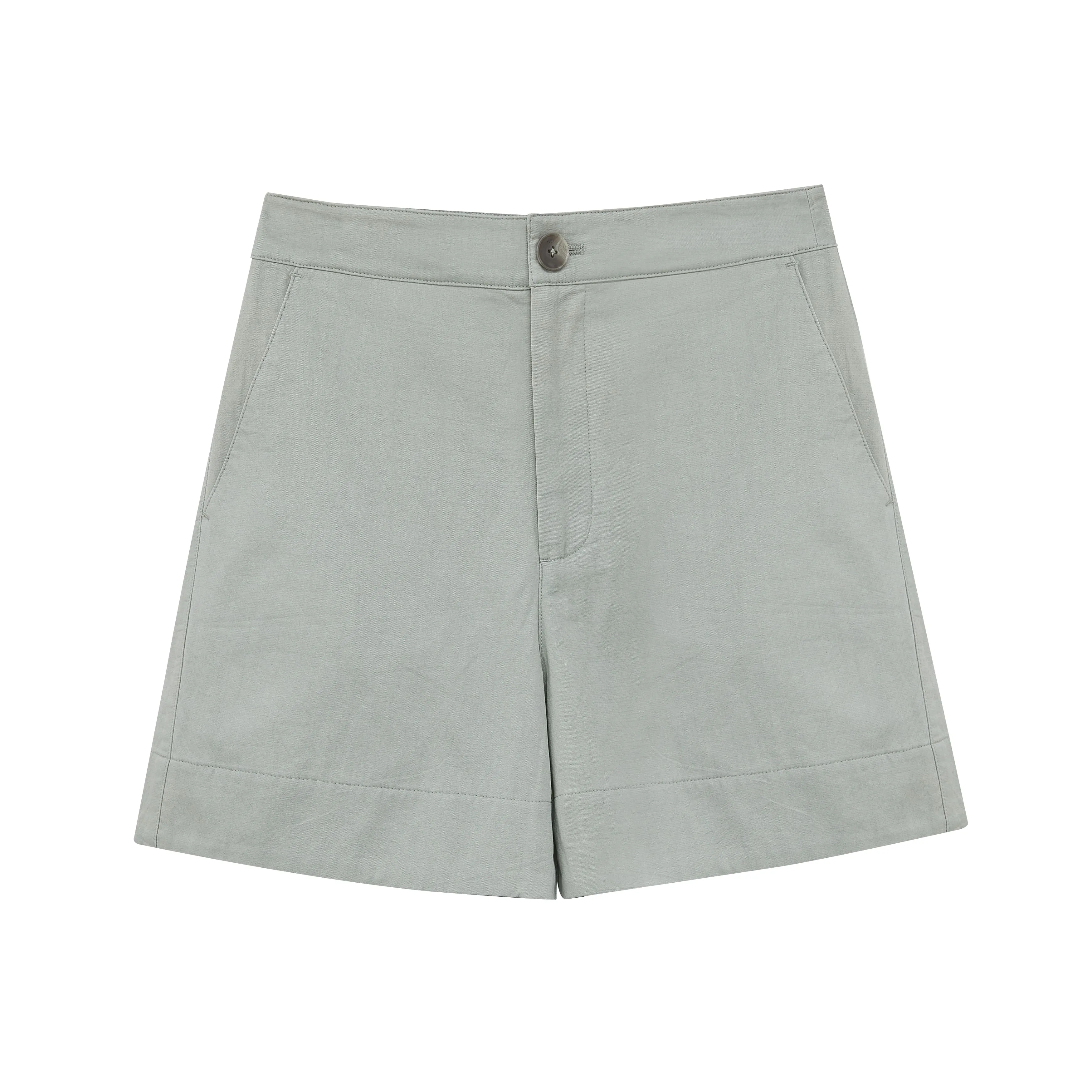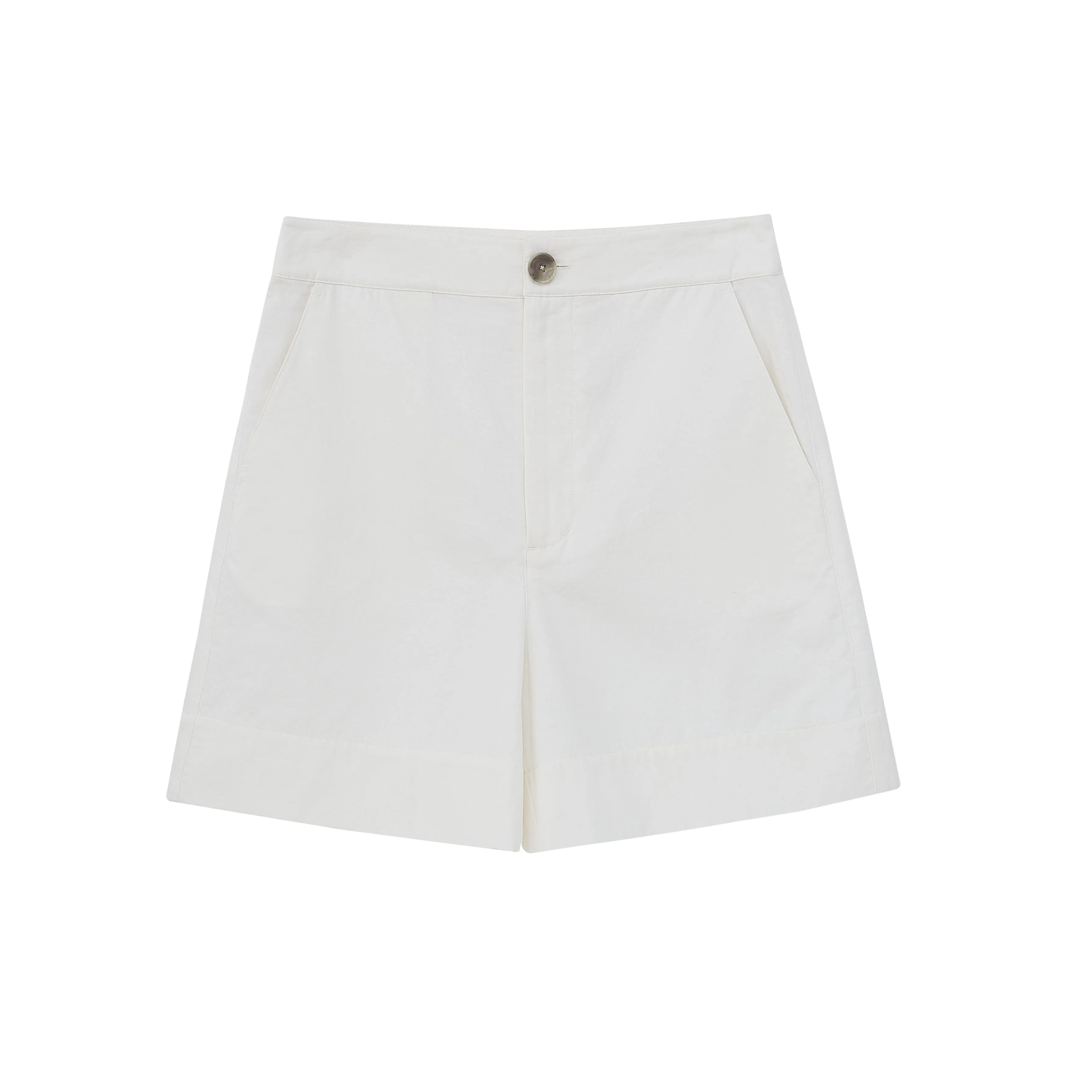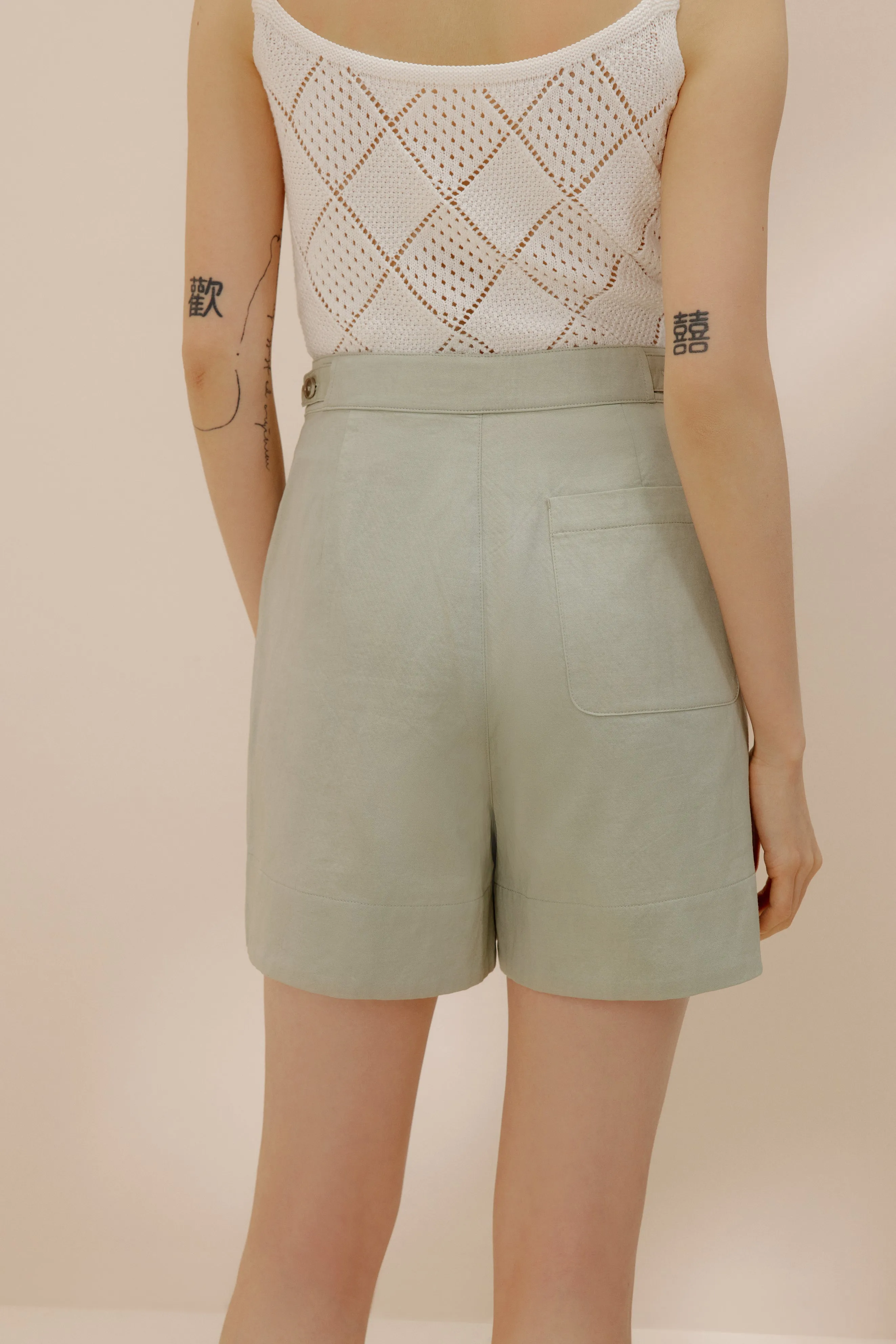 • Semi-high waist shorts with adjustable waistband and pockets.