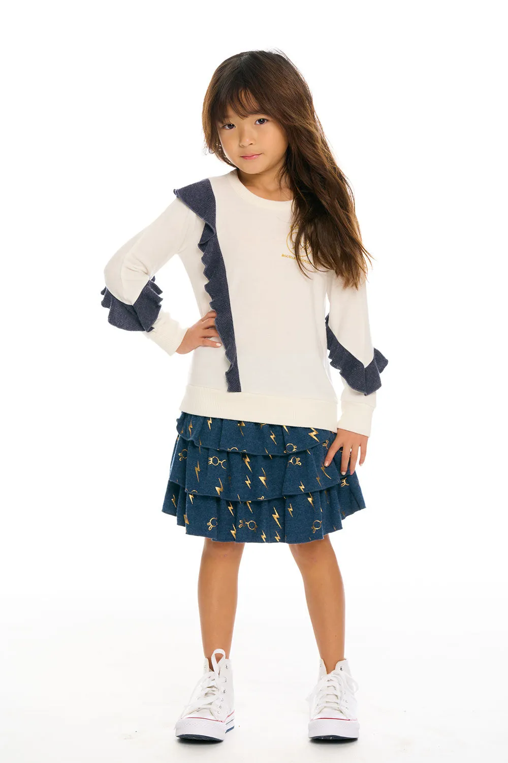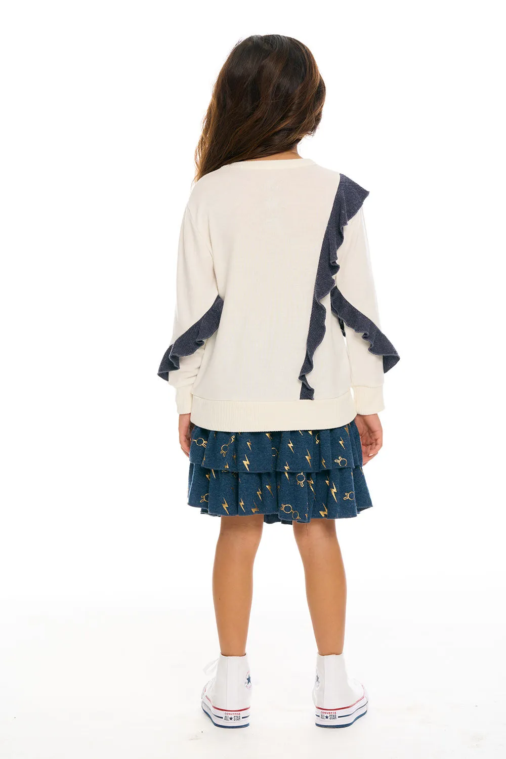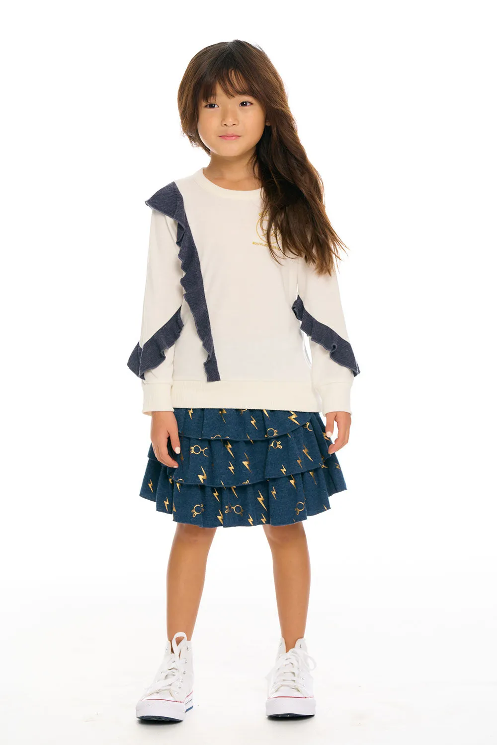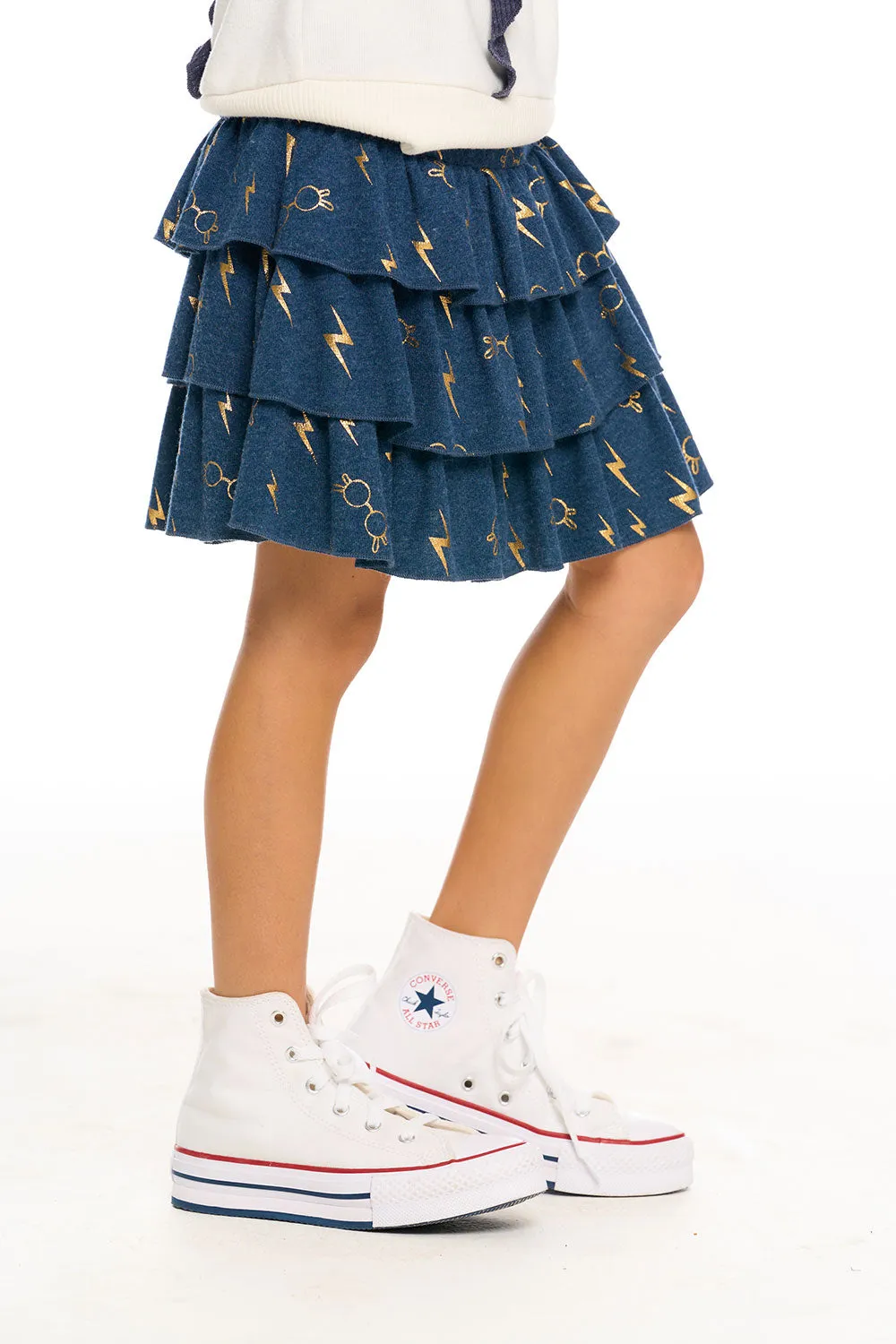 Give your little muggle the magic of Harry Potter with our Girl's Recycled Bliss Knit Harry Potter Bolts & Glasses Ruffled Skirt in blue. She'll be spellbound over the super cozy, eco-friendly fabric and adorable tiered, ruffle design that Hermione would surely adore.