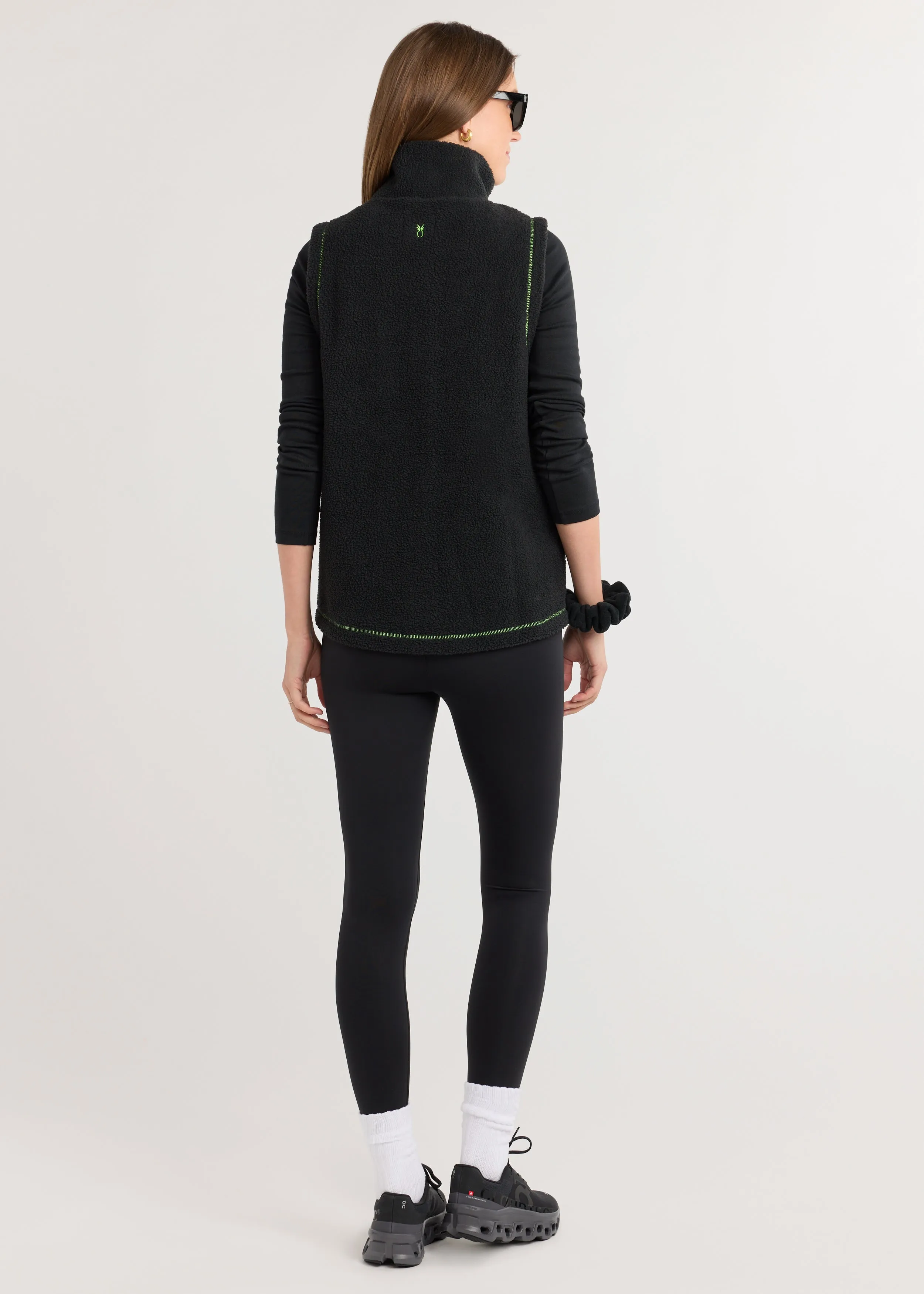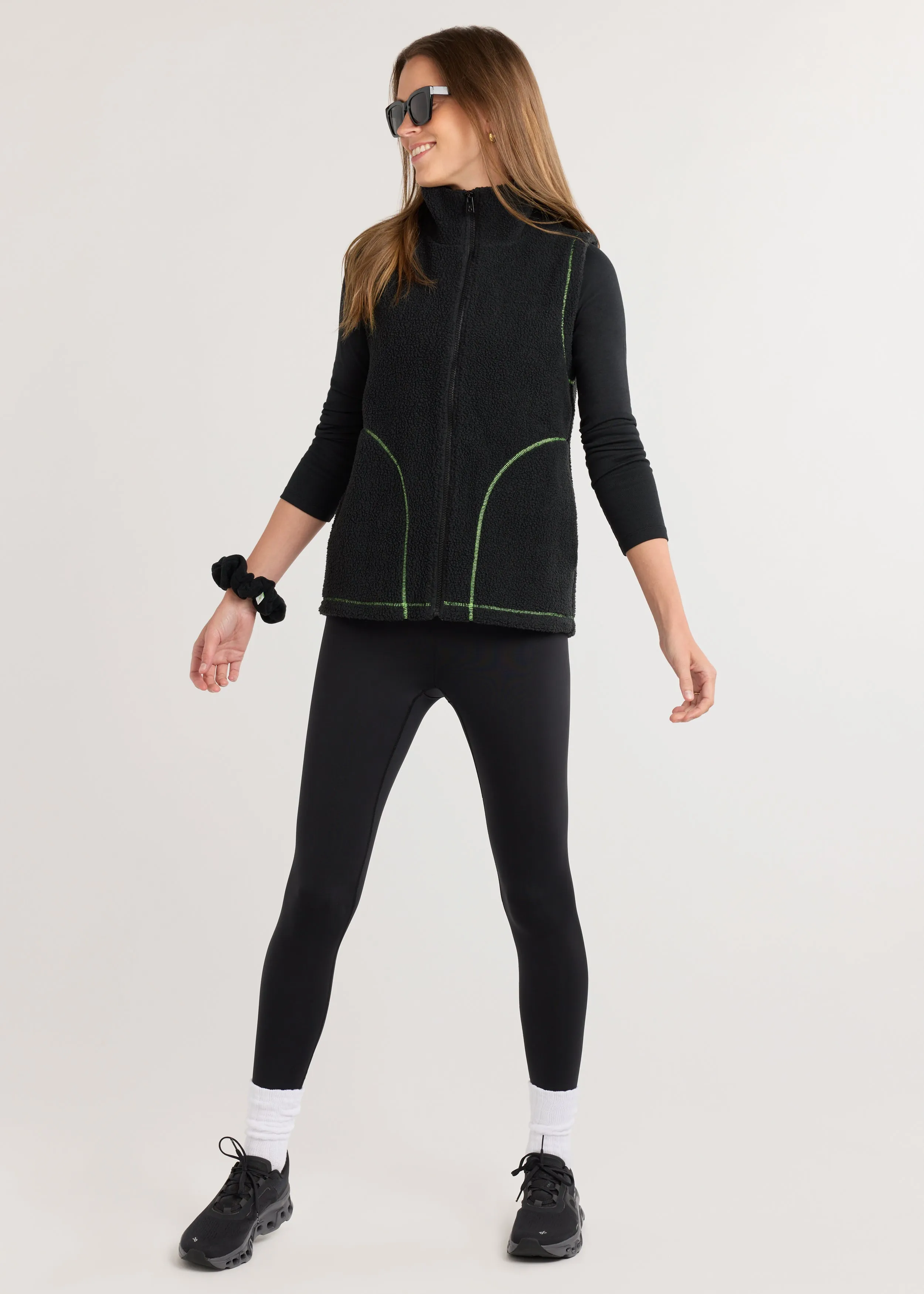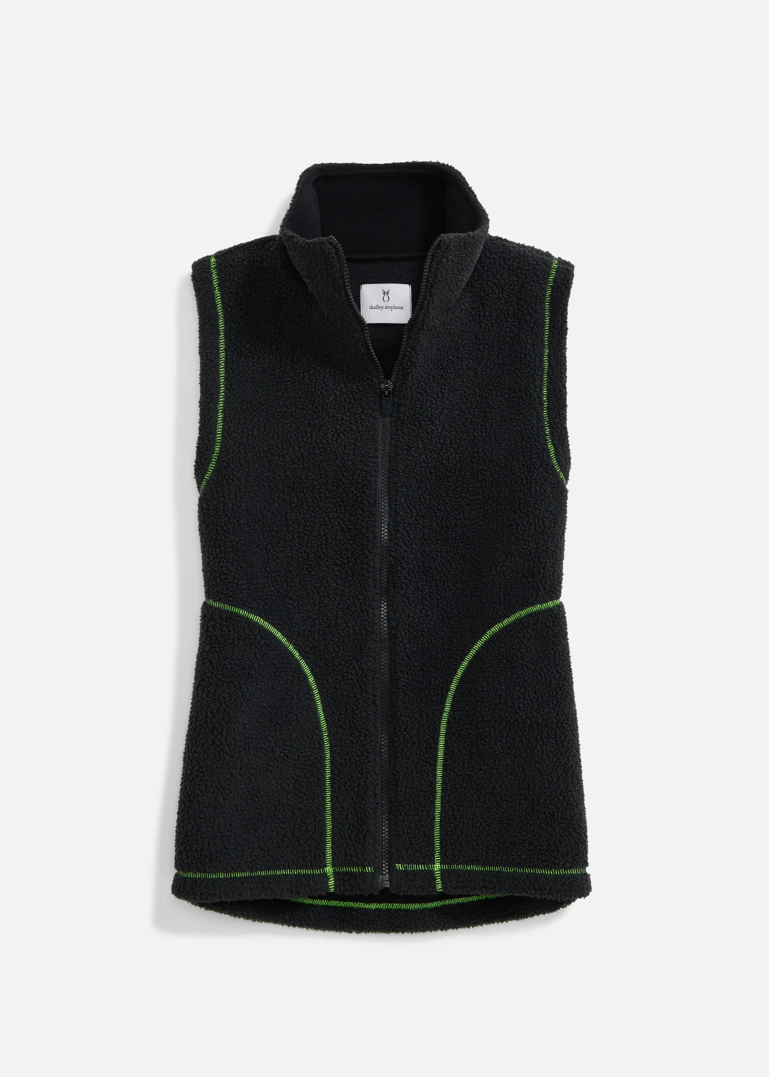 A cozy Sherpa vest, but make it pop. We love the styling on this quintessential cool-weather piece, with zippy contrast stitching for eye-catching edge.