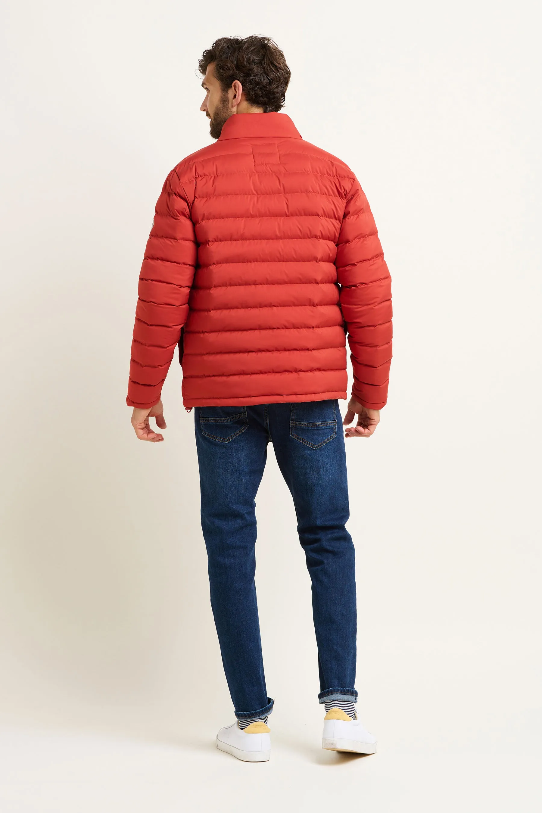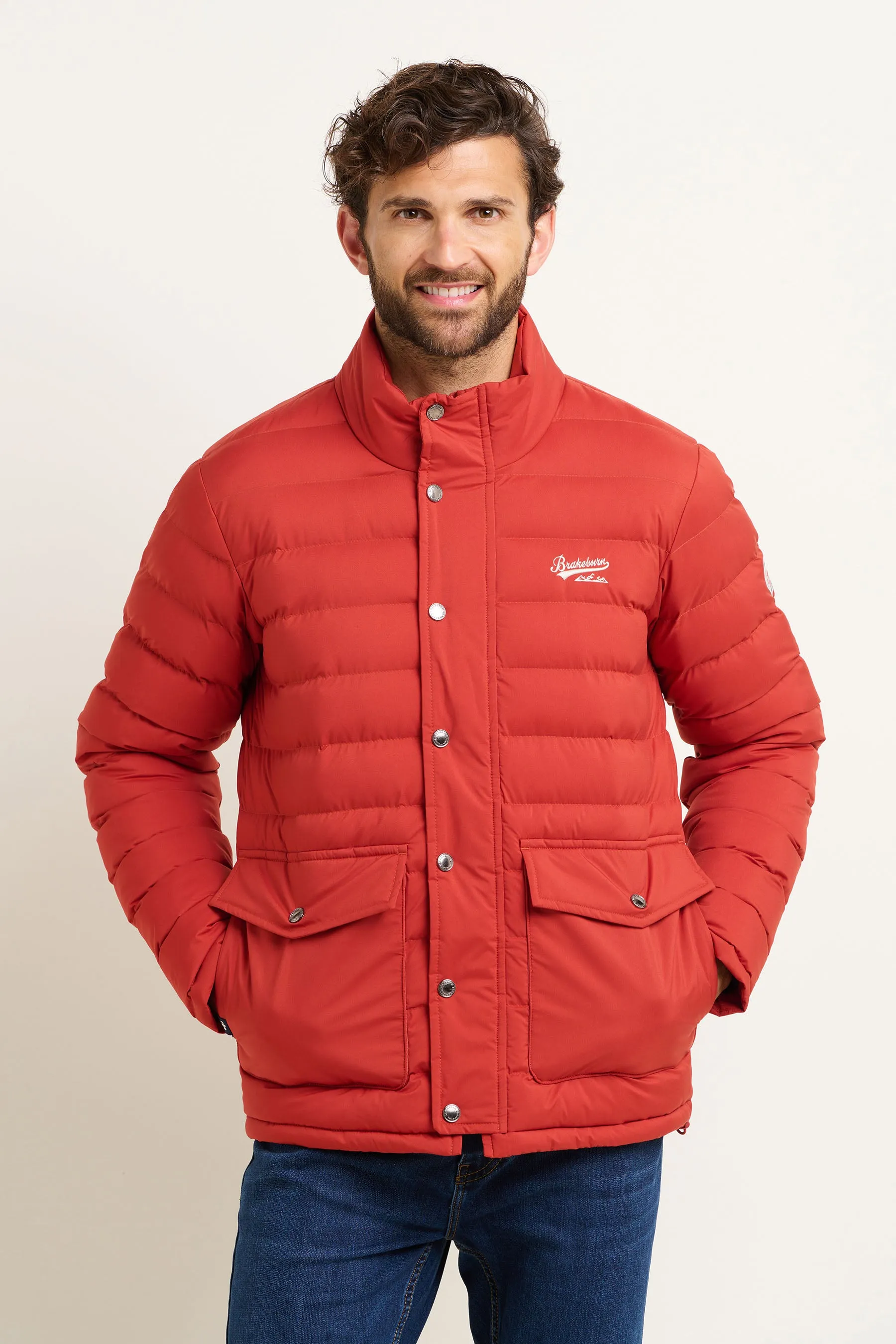 Ward off the chillier weather in our vintage-inspired men's red puffer jacket. Boasting a funnel neck, quilting, a concealed zip with popper fastenings, and a shower-resistant coating, this jacket has been designed to keep the elements at bay. It also features large pockets with popper fastenings, and an embroidered Brakeburn logo, and hanging loop for easy storage.
