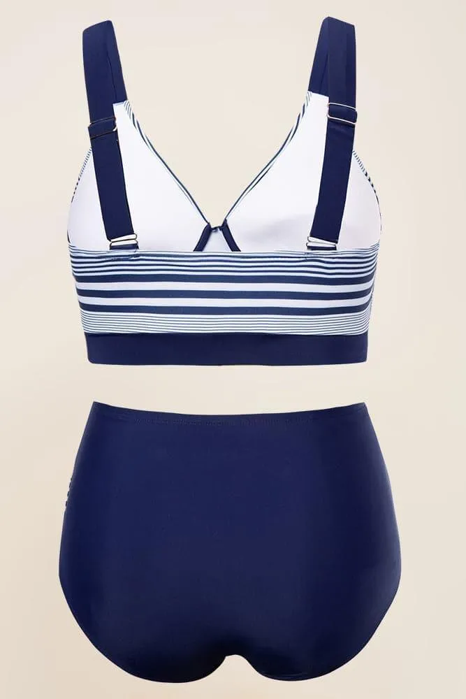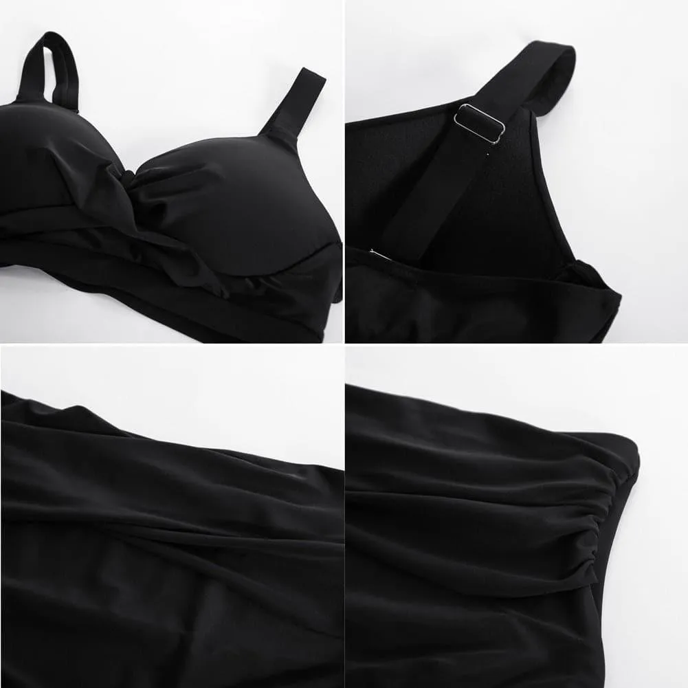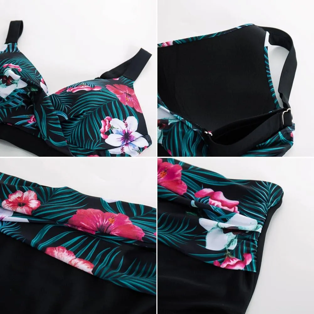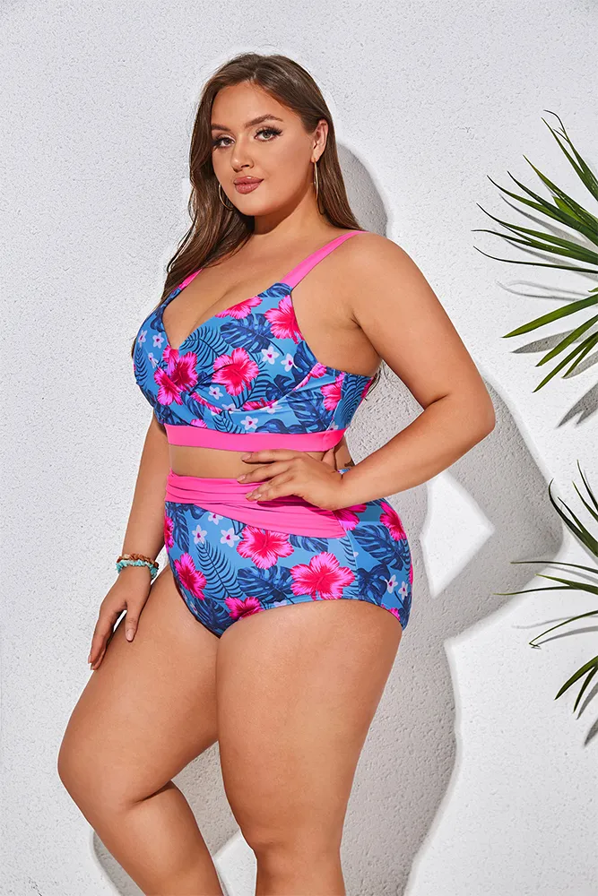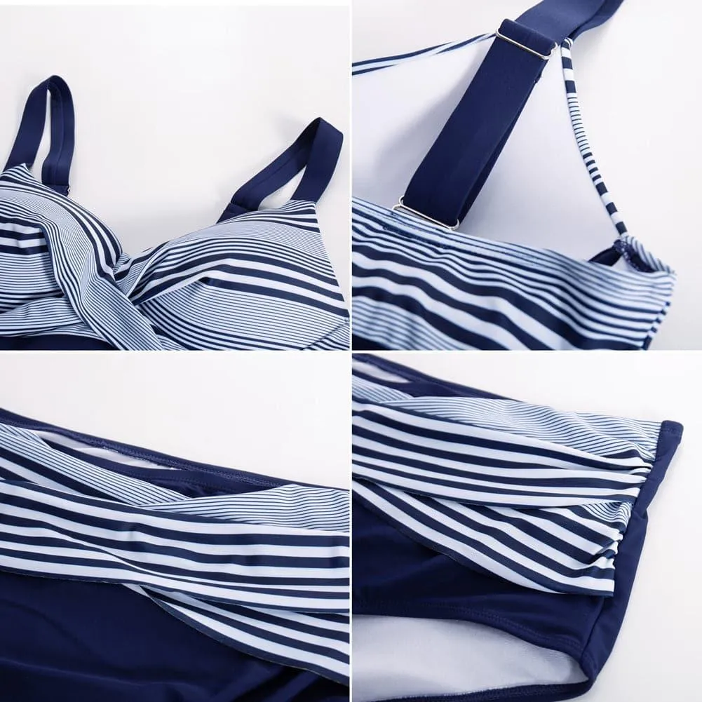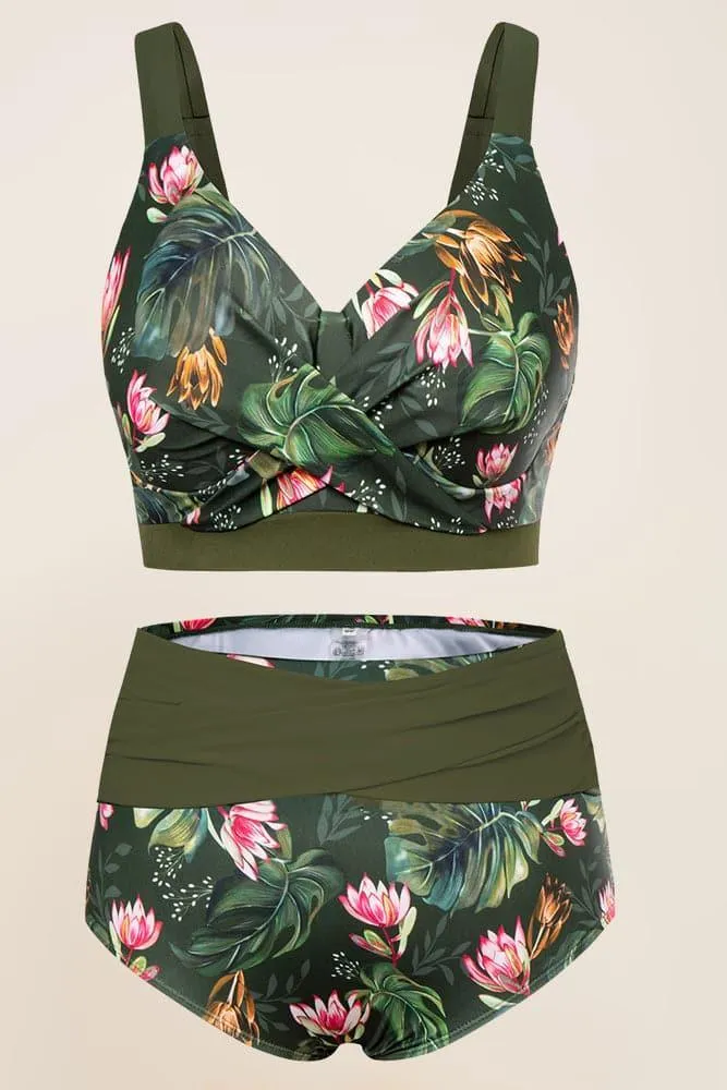 HN Women Plus Size 2pcs Set Swimsuit Cross Over Padded Tops High Waist Briefs