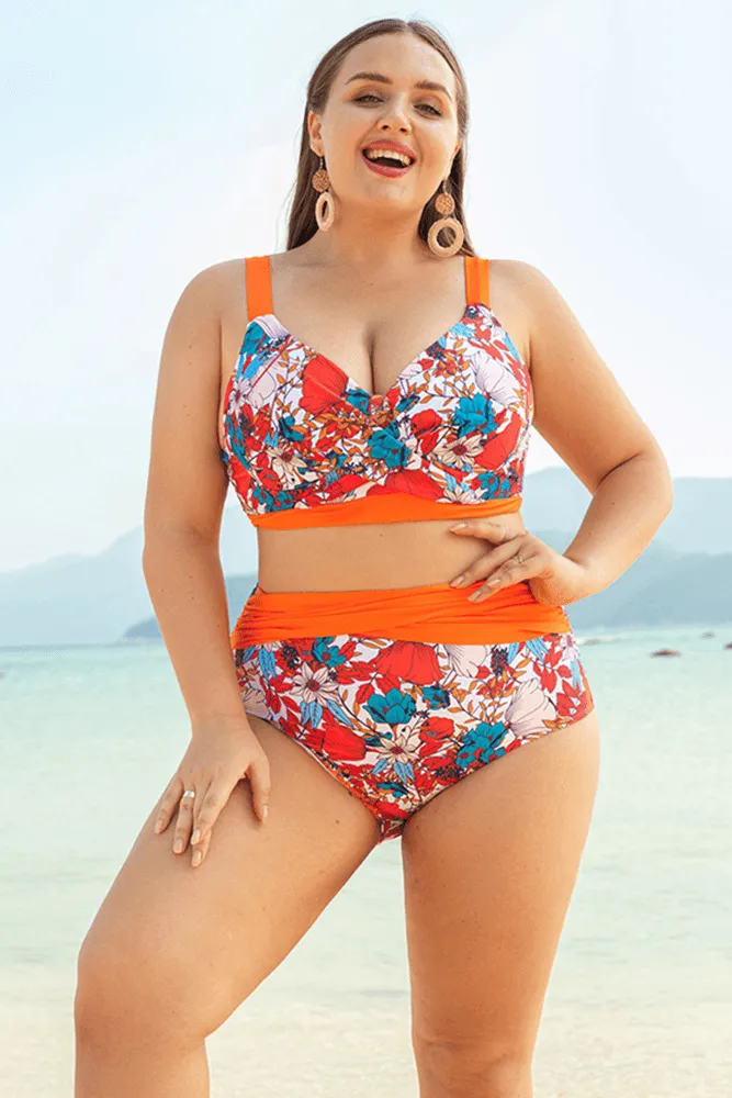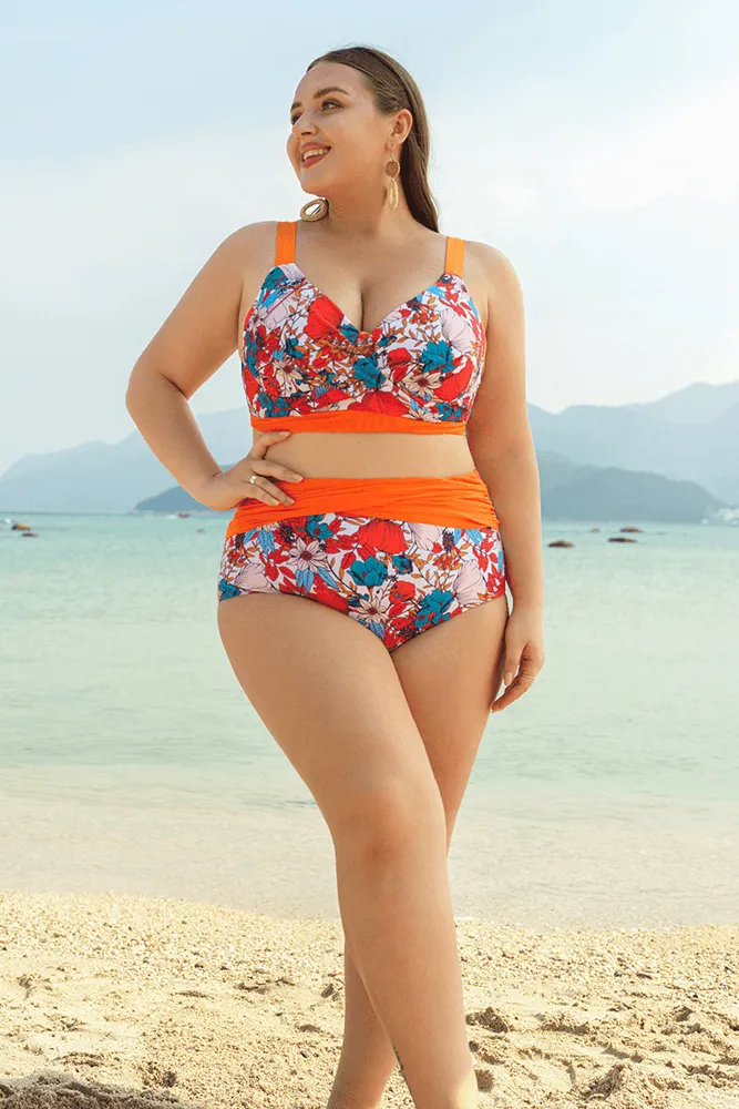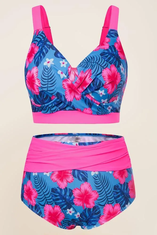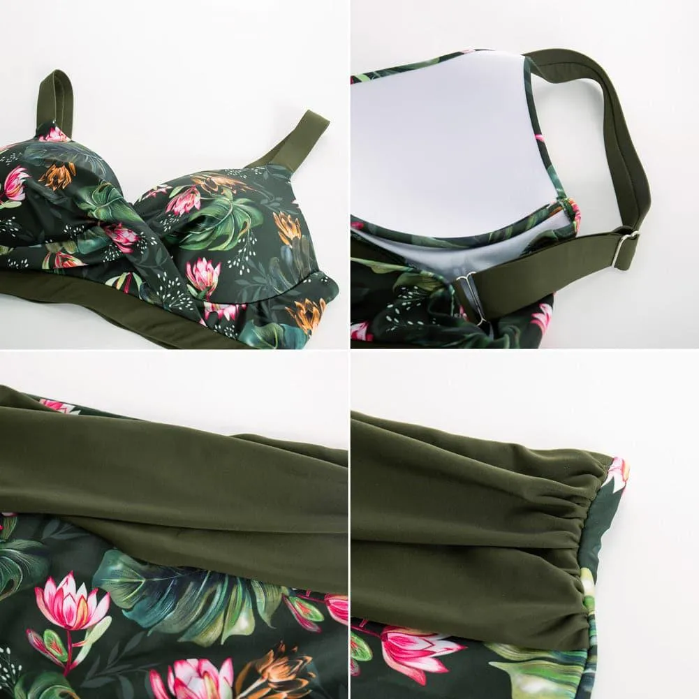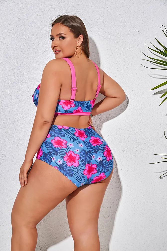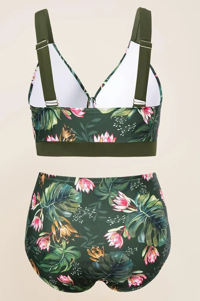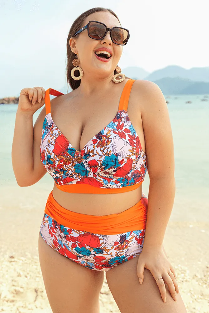 HN Women Plus Size 2pcs Set Swimsuit Cross Over Padded Tops High Waist Briefs