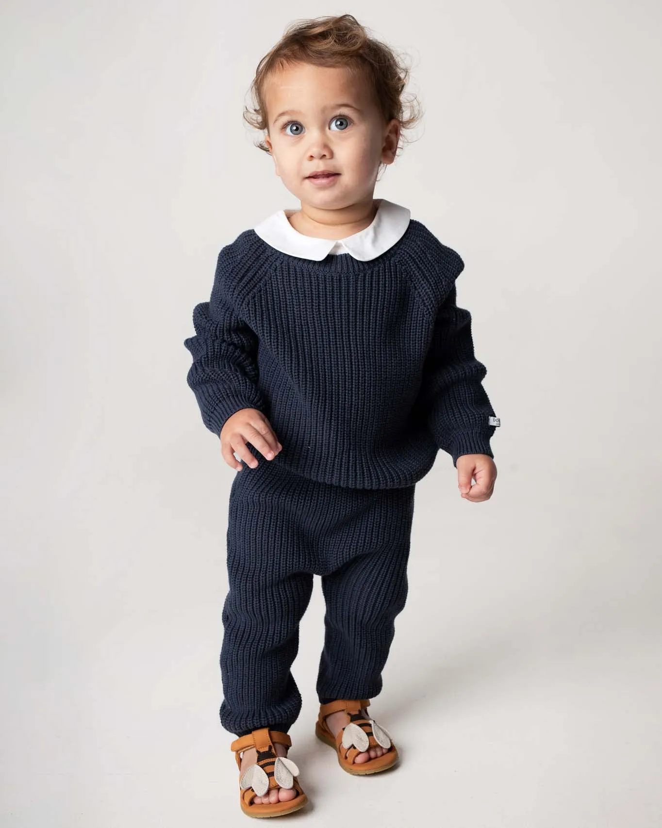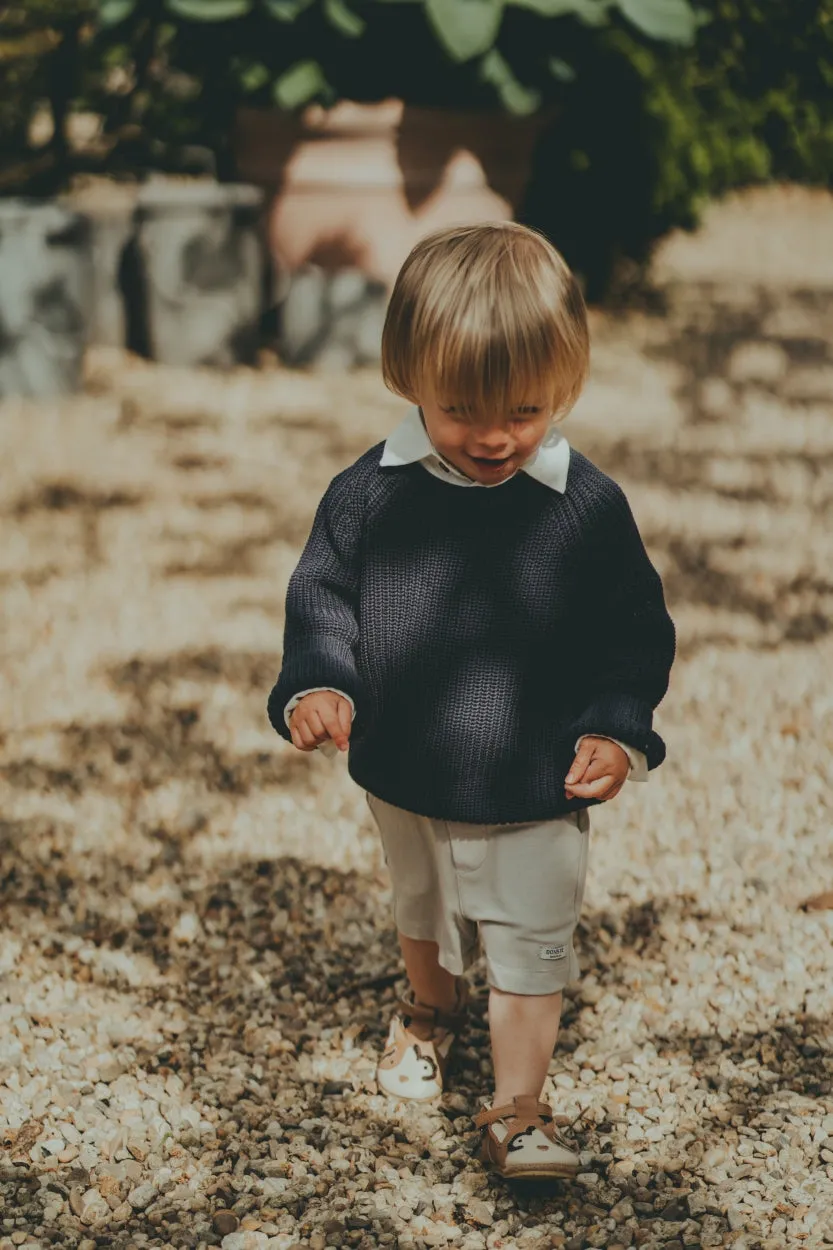 The perfect knit! The Jade sweater is the perfect basic for every outfit. The 100% cotton knitted material makes the Jade sweater super comfortable and warm to wear. It matches great with the Luca trousers. The perfect base for every mini-wardrobe.