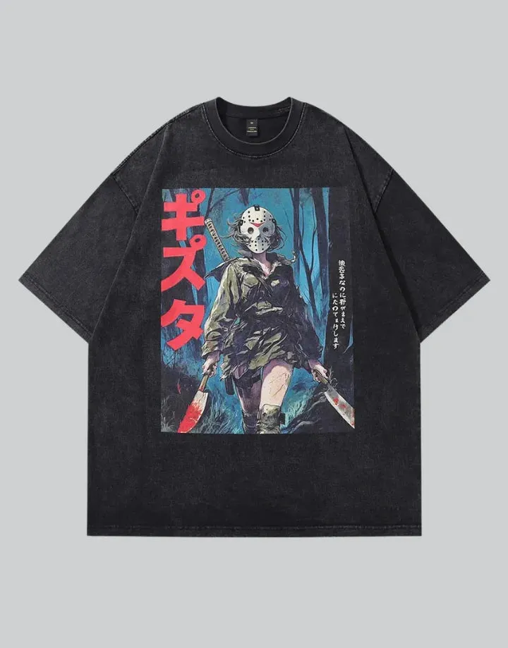 For lovers of slasher films or anyone who loves bold, statement pieces, this shirt stands out in any setting. The combination of Jason Voorhees with the Japanese art style makes it a rare find, perfect for horror fans who also want to express their passion through fashion.