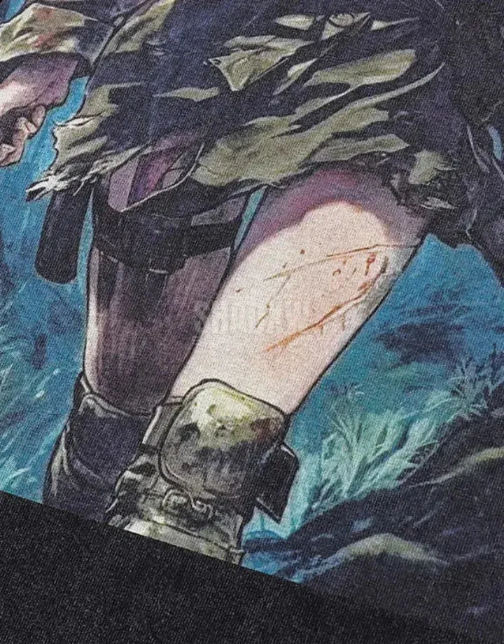 The oversized fit is perfect for creating a layered look that techwear enthusiasts love, making it easy to pair with jackets, tactical pants, or urban sneakers. The bold black-and-red color scheme plays perfectly into the darker tones of dystopian fashion and darkwear, ensuring you stay on trend while also making a unique statement.
