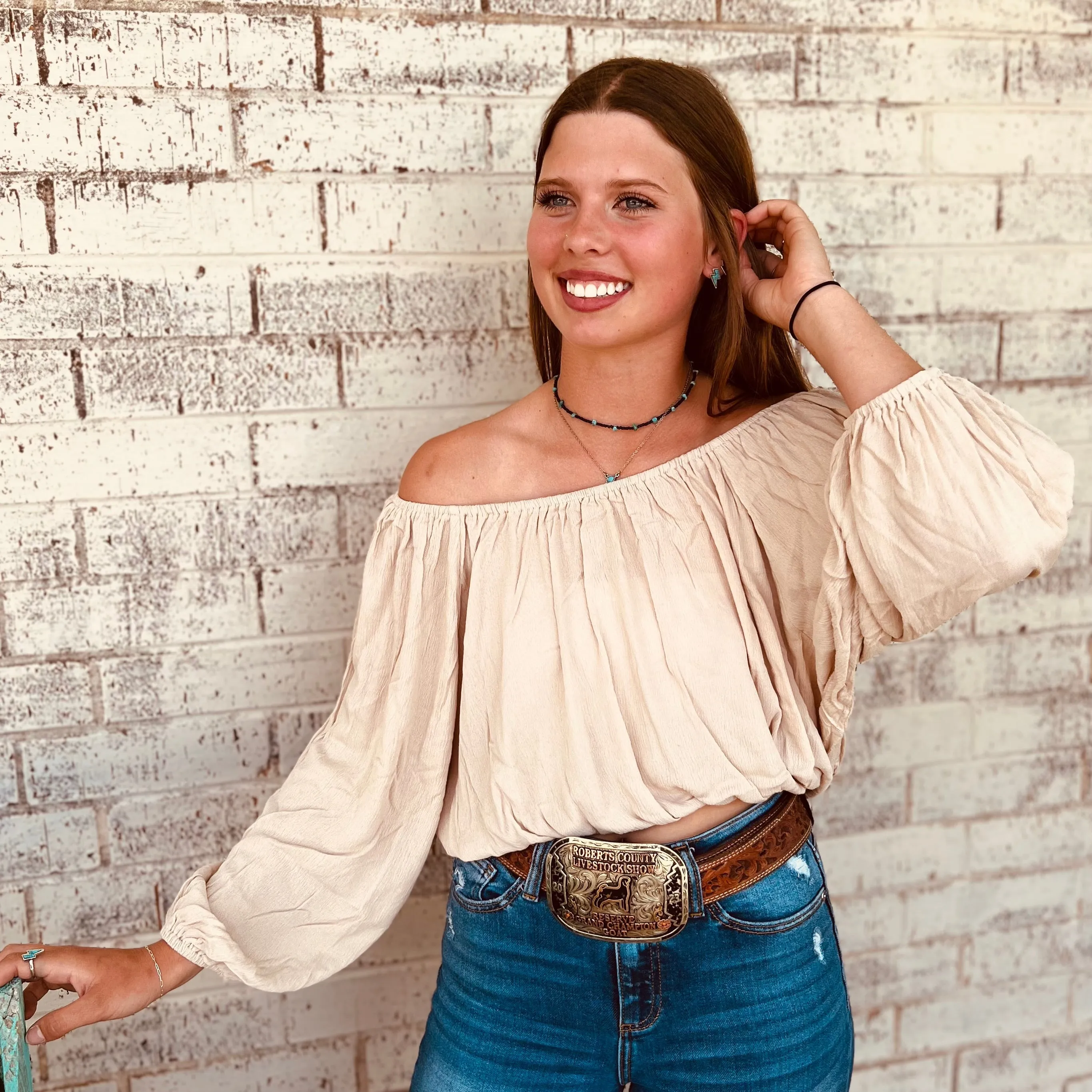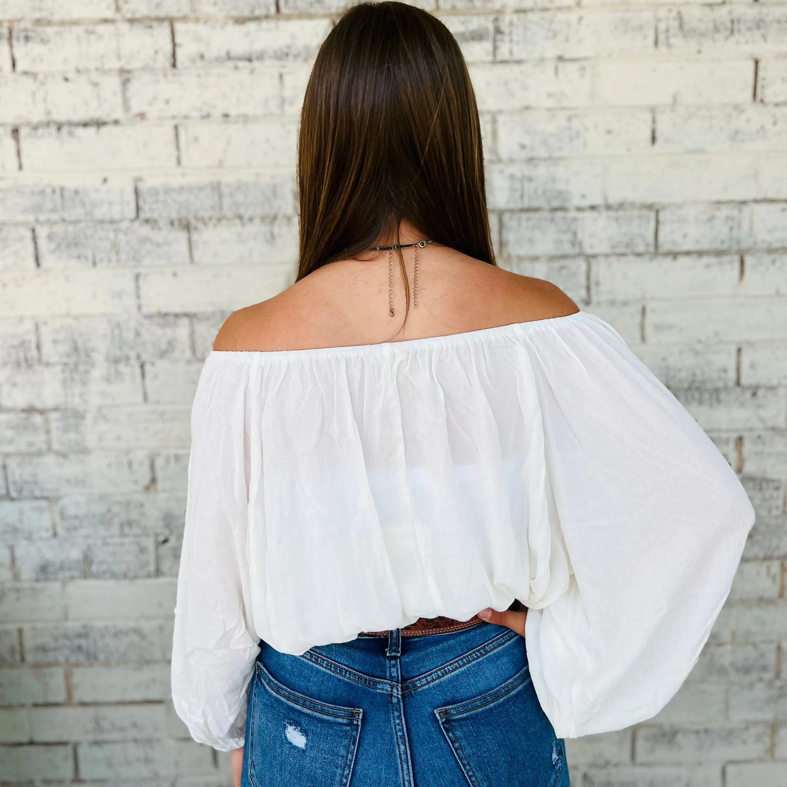 The Jenna In The Wind Top is the perfect wardrobe staple for effortless summer style. Crafted from lightweight and flowy fabric, this elegant off-shoulder top is finished with balloon sleeves and elastic bands at the wrist and waist for a flattering and comfortable fit. Its sophisticated design is ideal for dressing up with ease.
