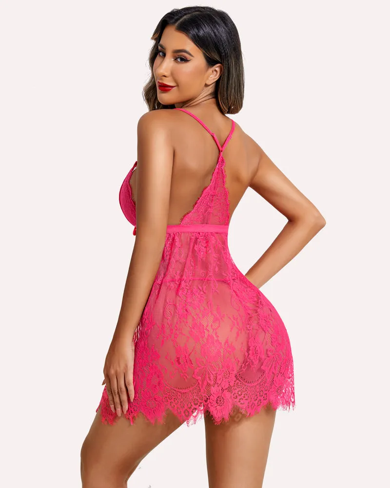 The Sexy Lace Lingerie designed with"Front Hook Bra and Open Front"which can bring you a flattering bust curve and adds romantic femininity. The racerback of this babydoll includes adjustable straps for the perfect fit and the stretch elastic band to support your bust