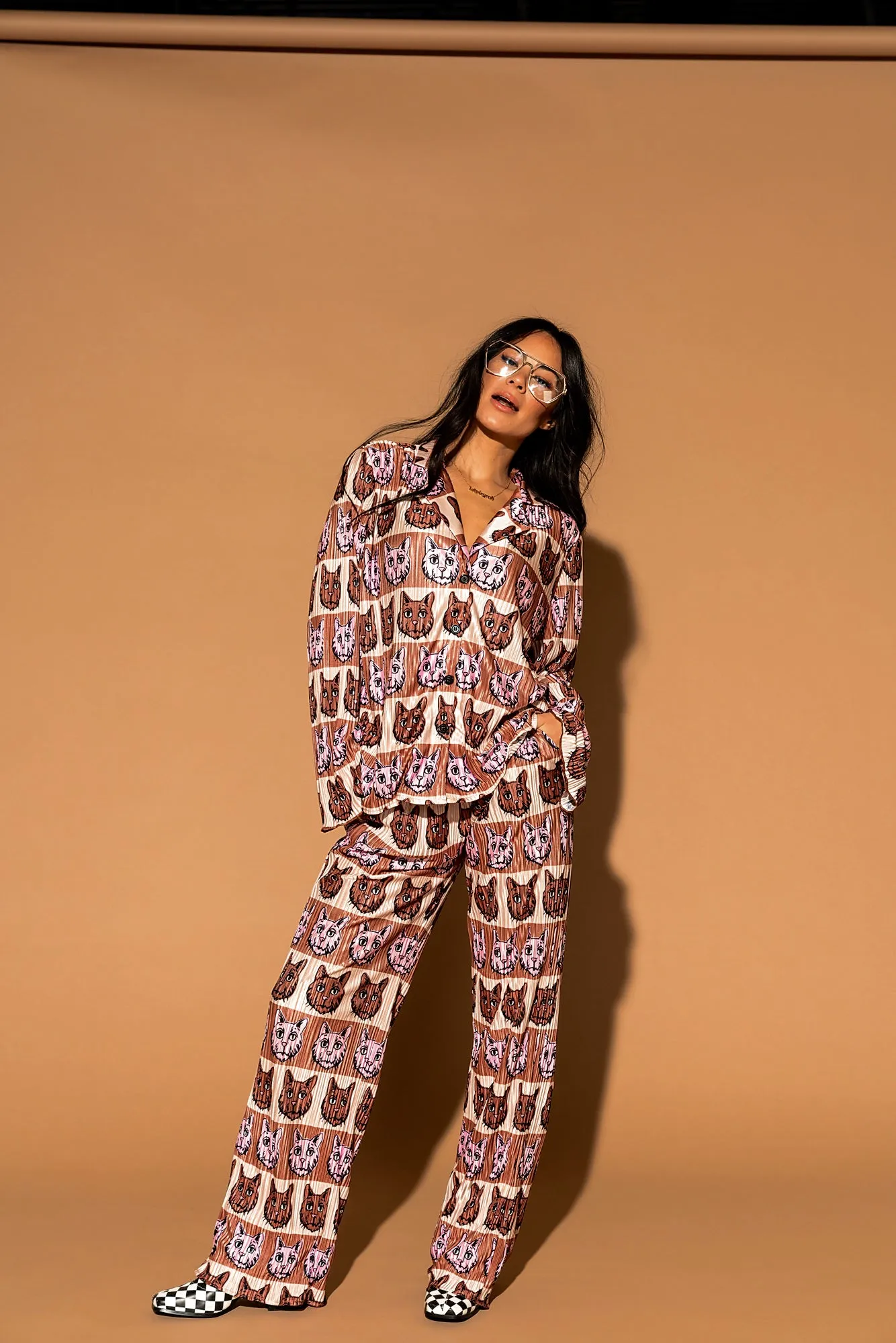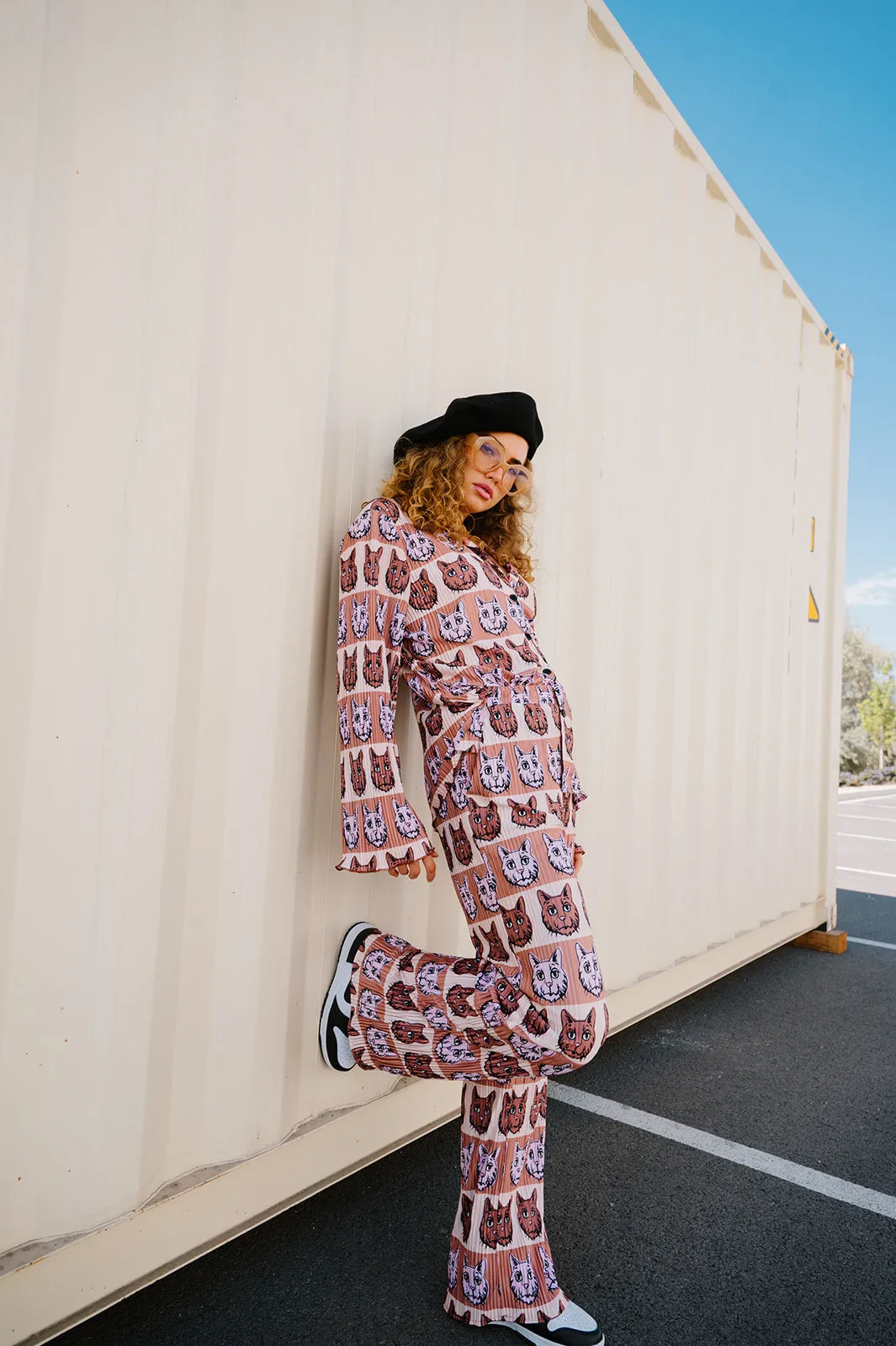 - Pleated, silky plissé material