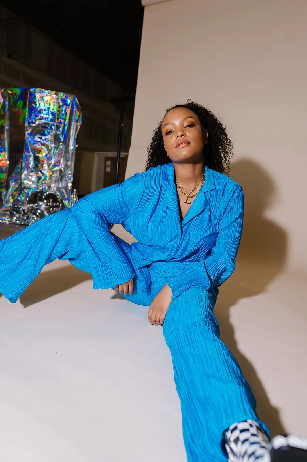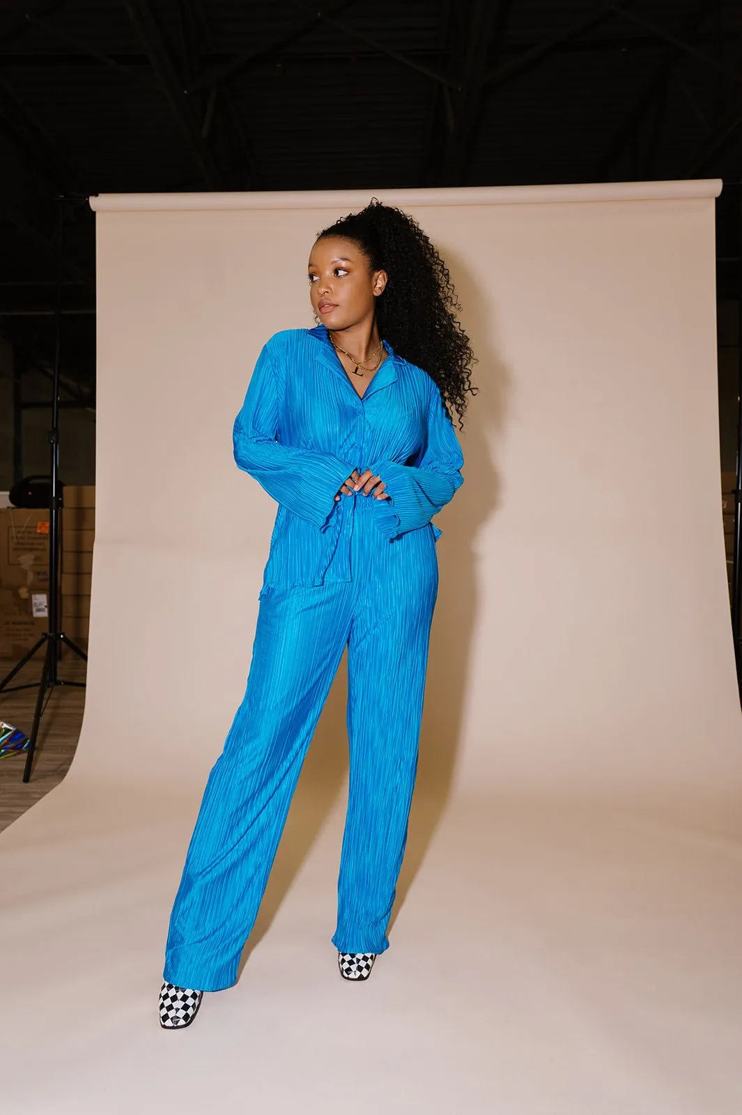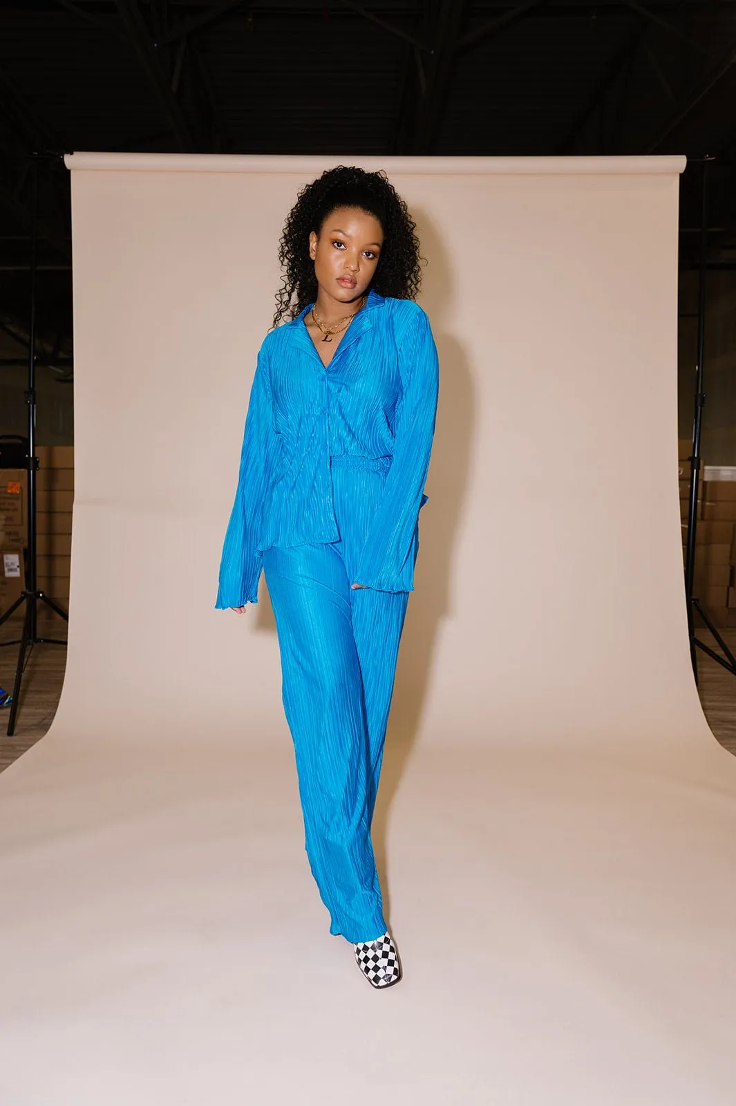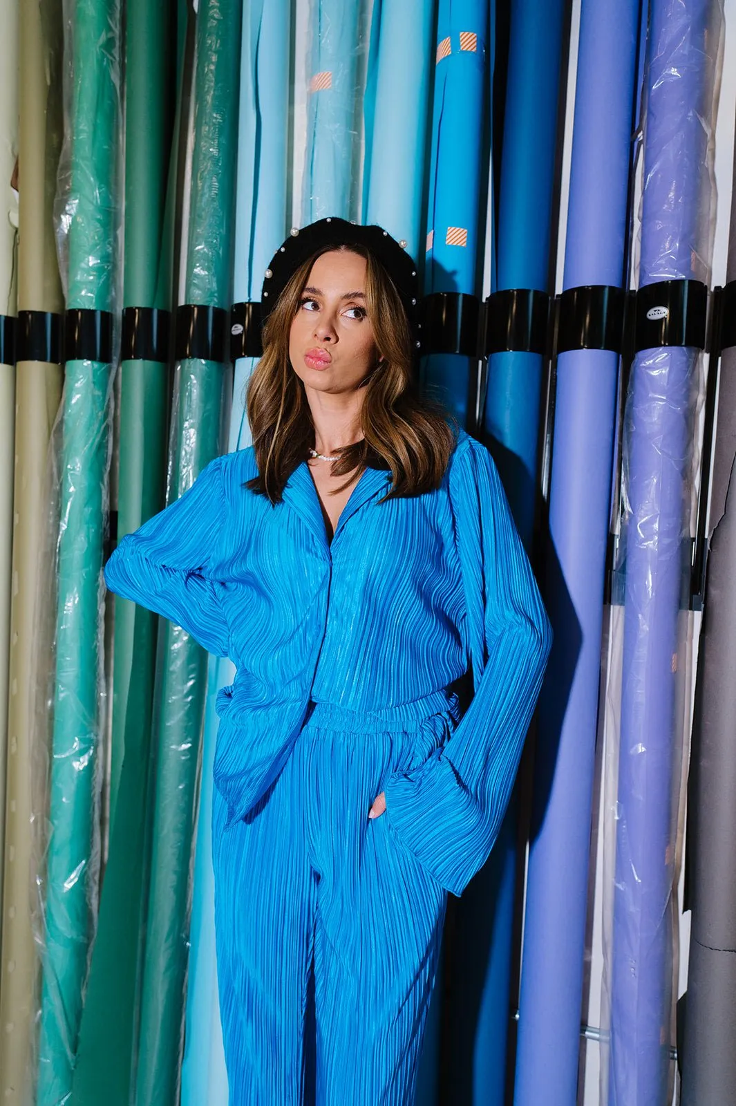 - Pleated, silky plissé material