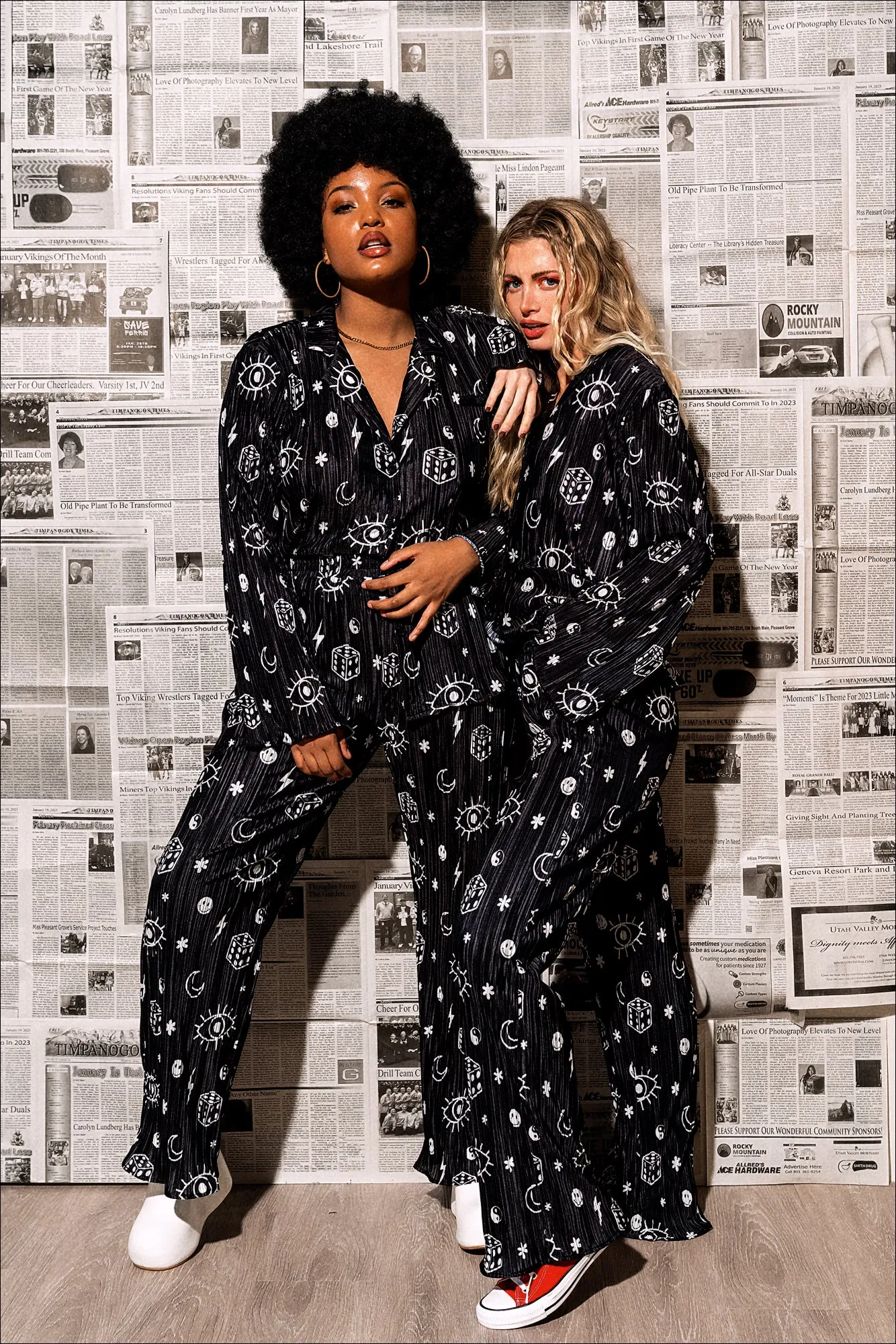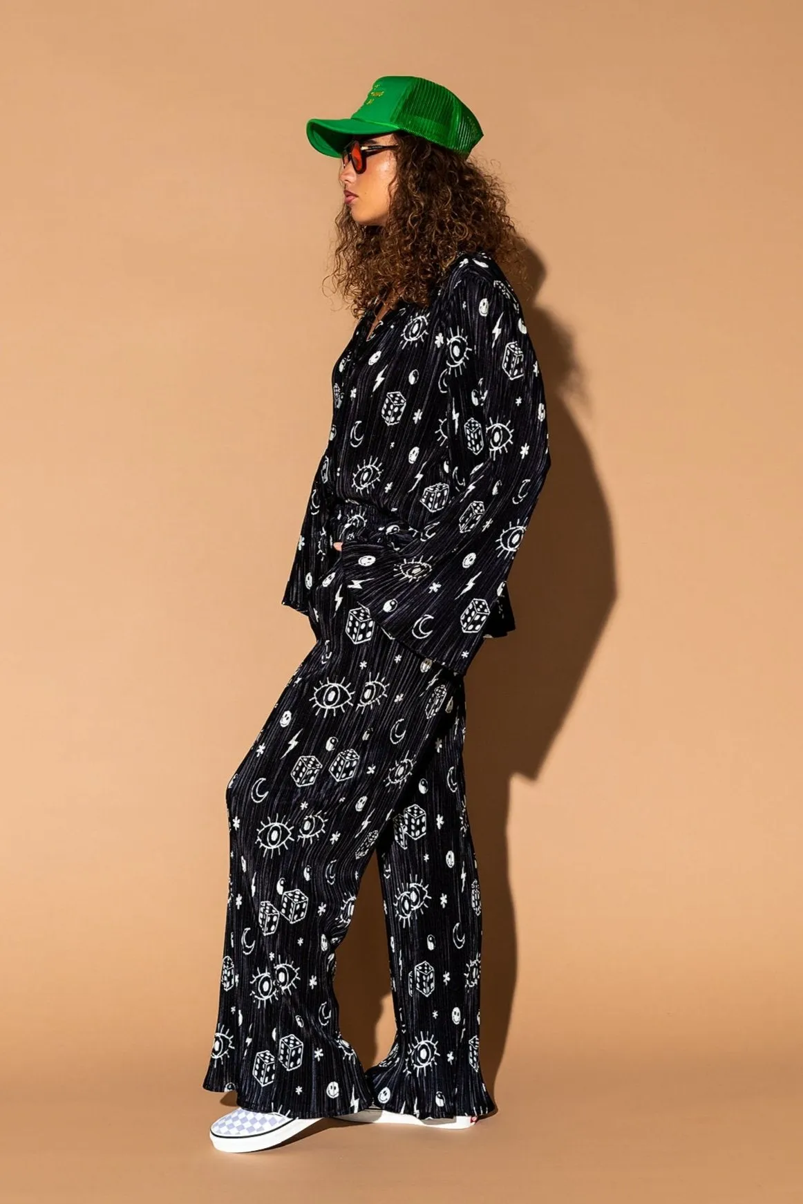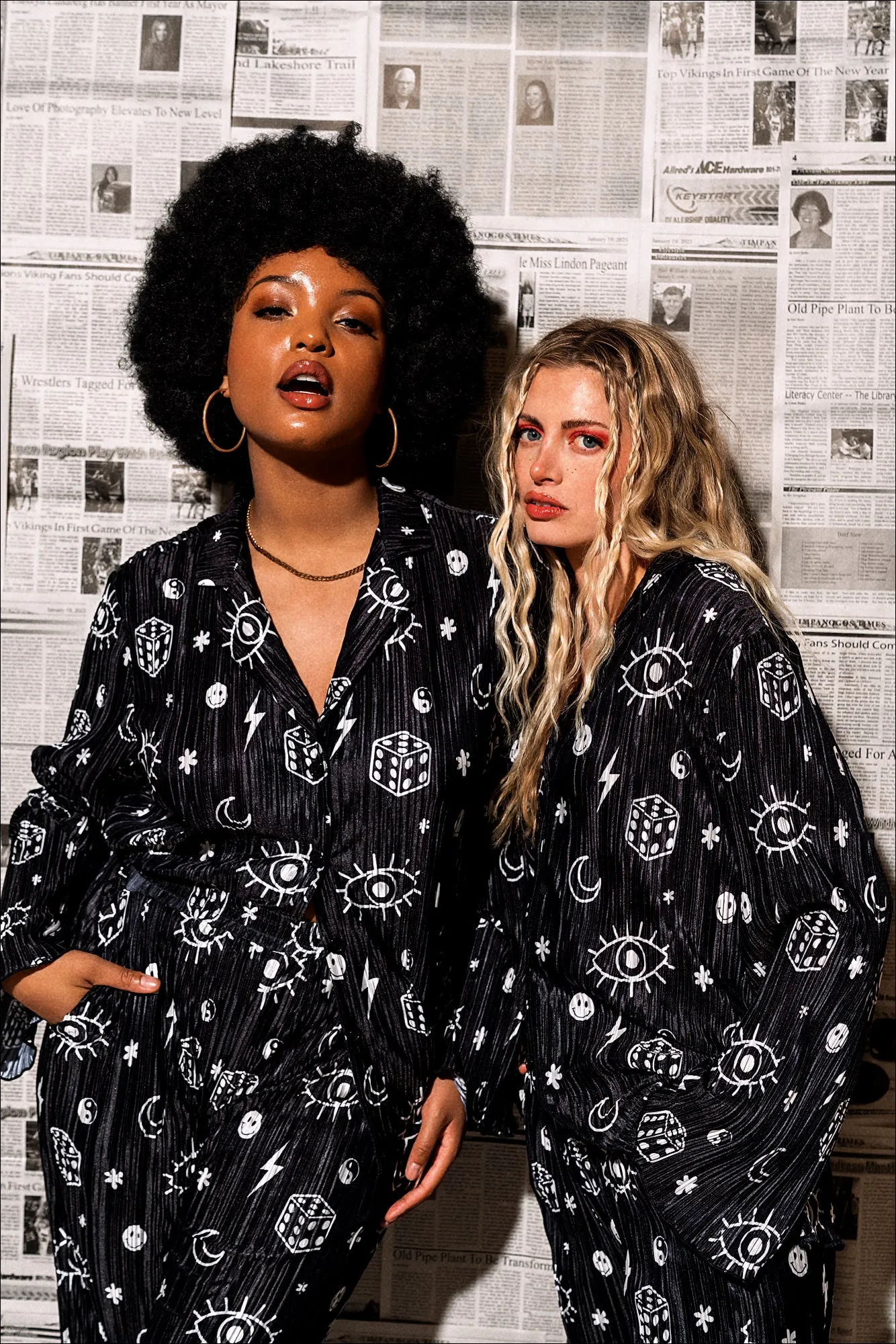 - Mystical icon pattern in white - eyes, smiles, dice, etc!