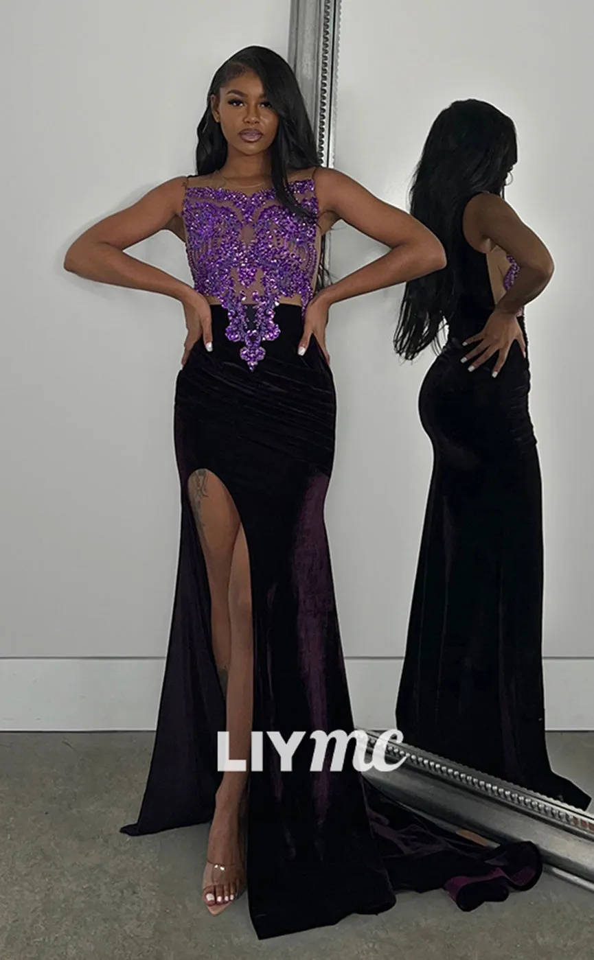 Elevate your prom look with the LP1274 - Boat Neck Appliques High Slit Sexy Prom Dress for Black Girls. This stunning dress features a sophisticated boat neck and intricate appliques, making it a classy choice for any occasion. The high slit adds a touch of sexiness, while the black color is perfect for making a statement. Feel confident and turn heads with this dress.