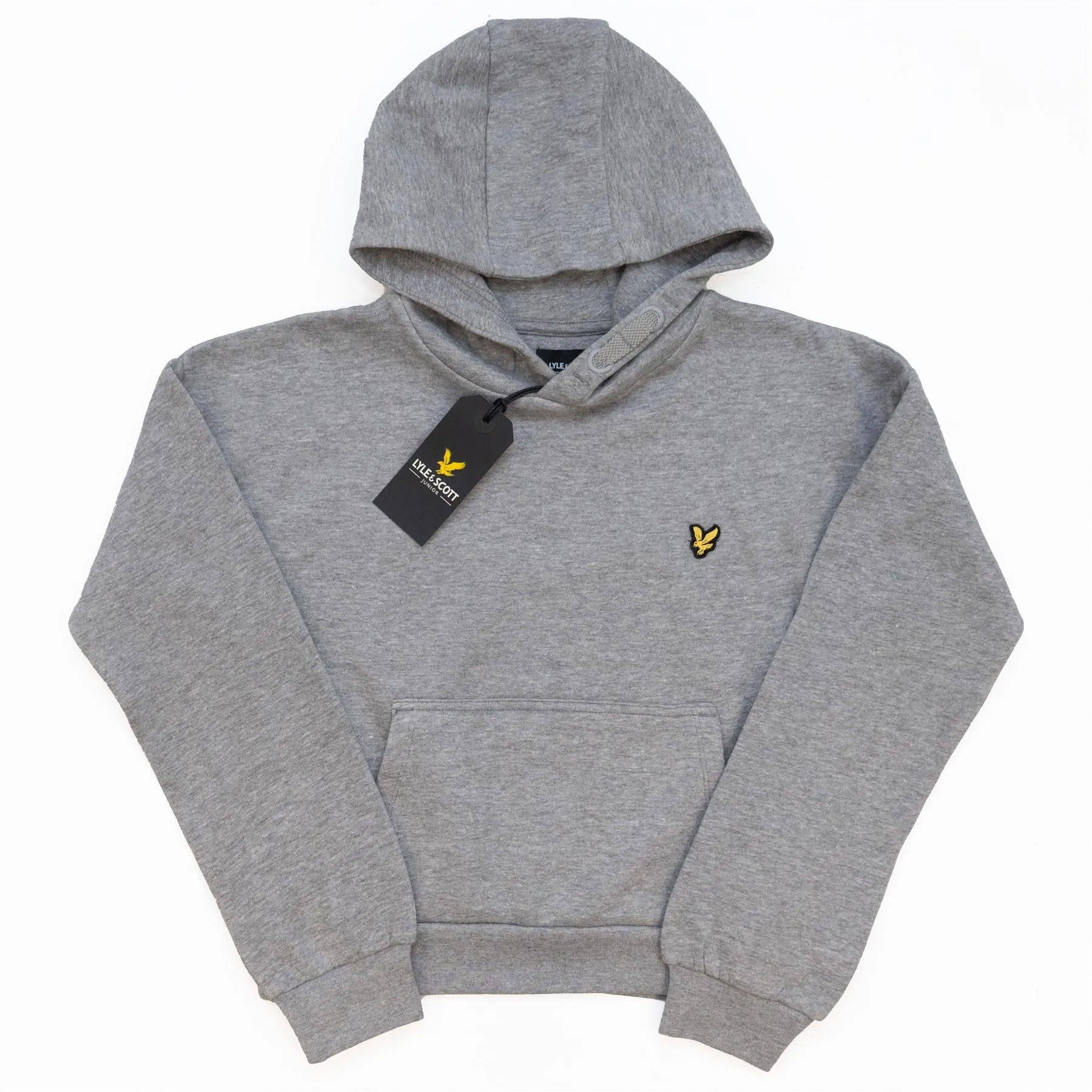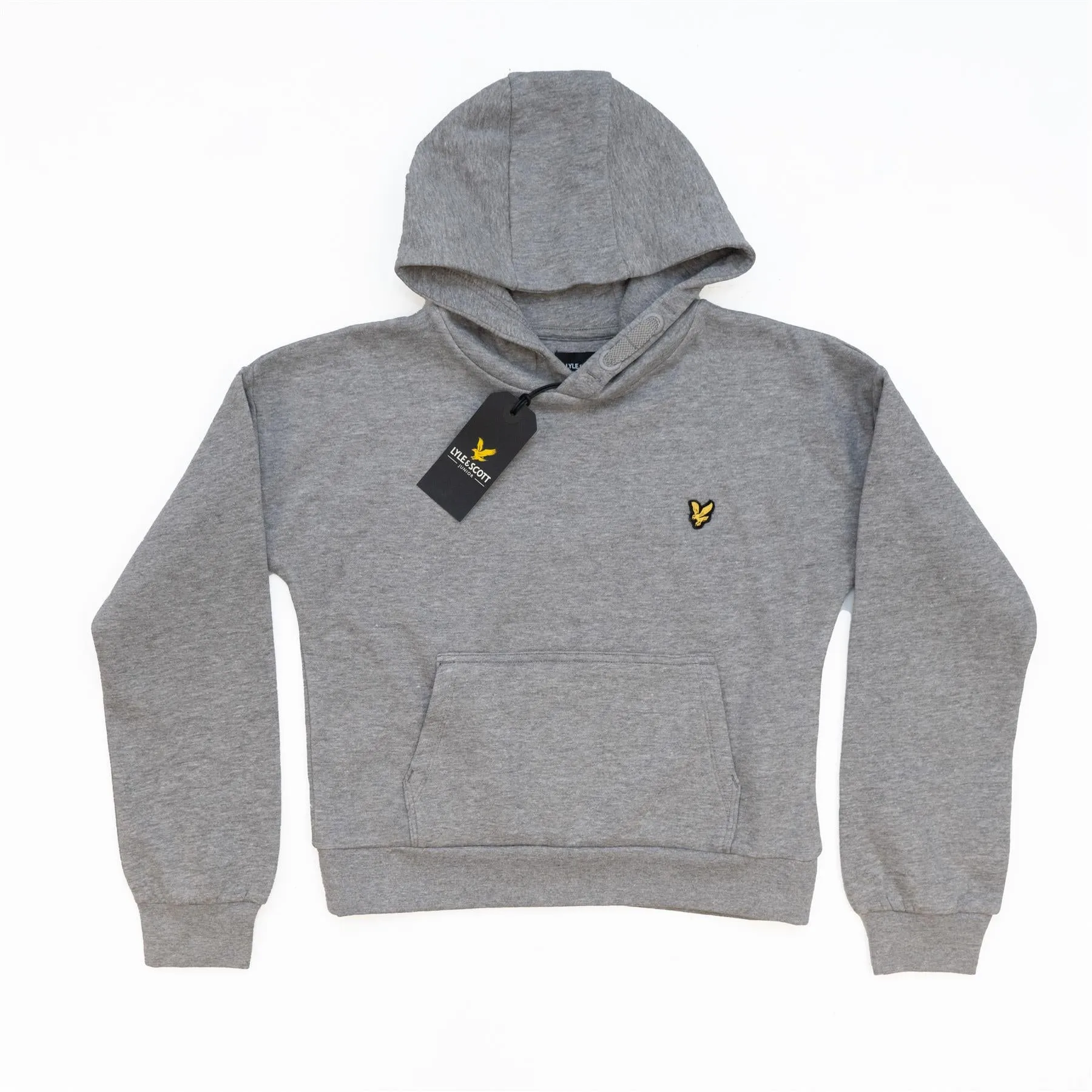 Lyle & Scott hooded sweatshirt for girls by Lyle & Scott, made in soft cotton jersey. It has a kangaroo pouch pocket on the front, with the brand's iconic Eagle logo appliquéd on the chest. There is a faux drawstring detail on the hood.