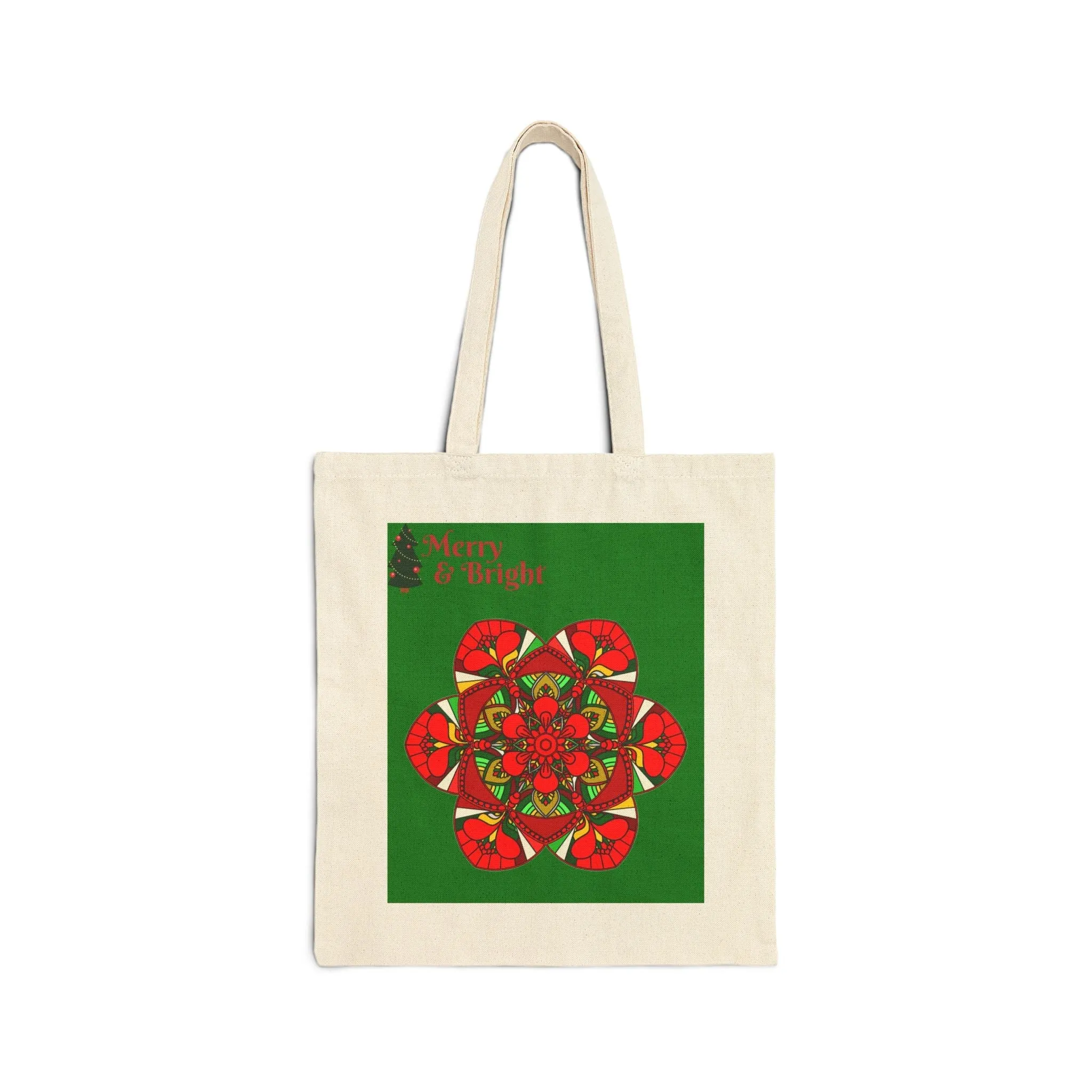 Discover the ultimate holiday companion with Blululi's festive cotton canvas tote. Handcrafted with meticulous attention to detail, this christmas bag showcases a gorgeous mandala design in cheerful shades of red, snow white, and green, all set against a timeless Christmas green backdrop. The detailed mandala pattern adds an elegant and unique touch to your holiday ensemble.