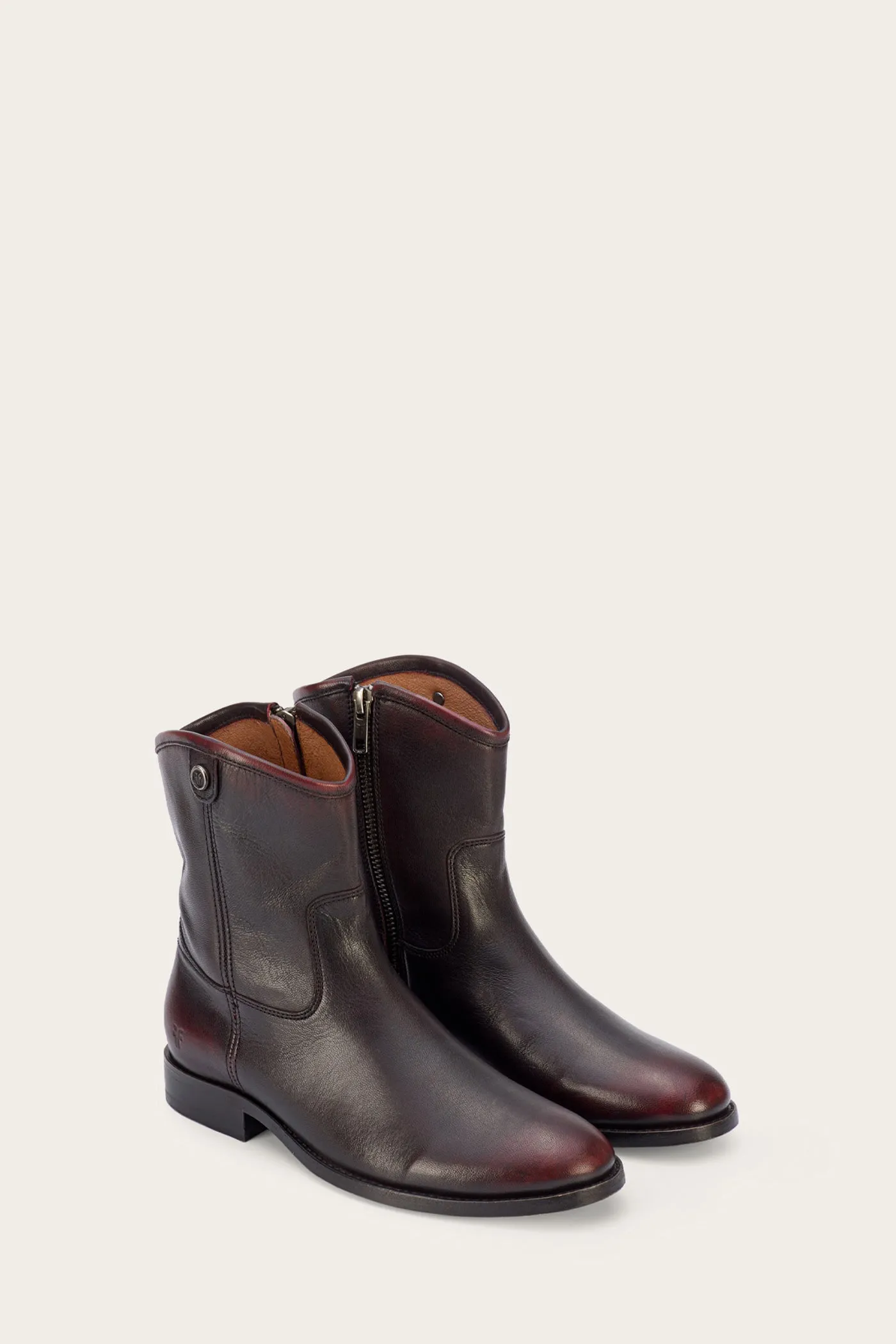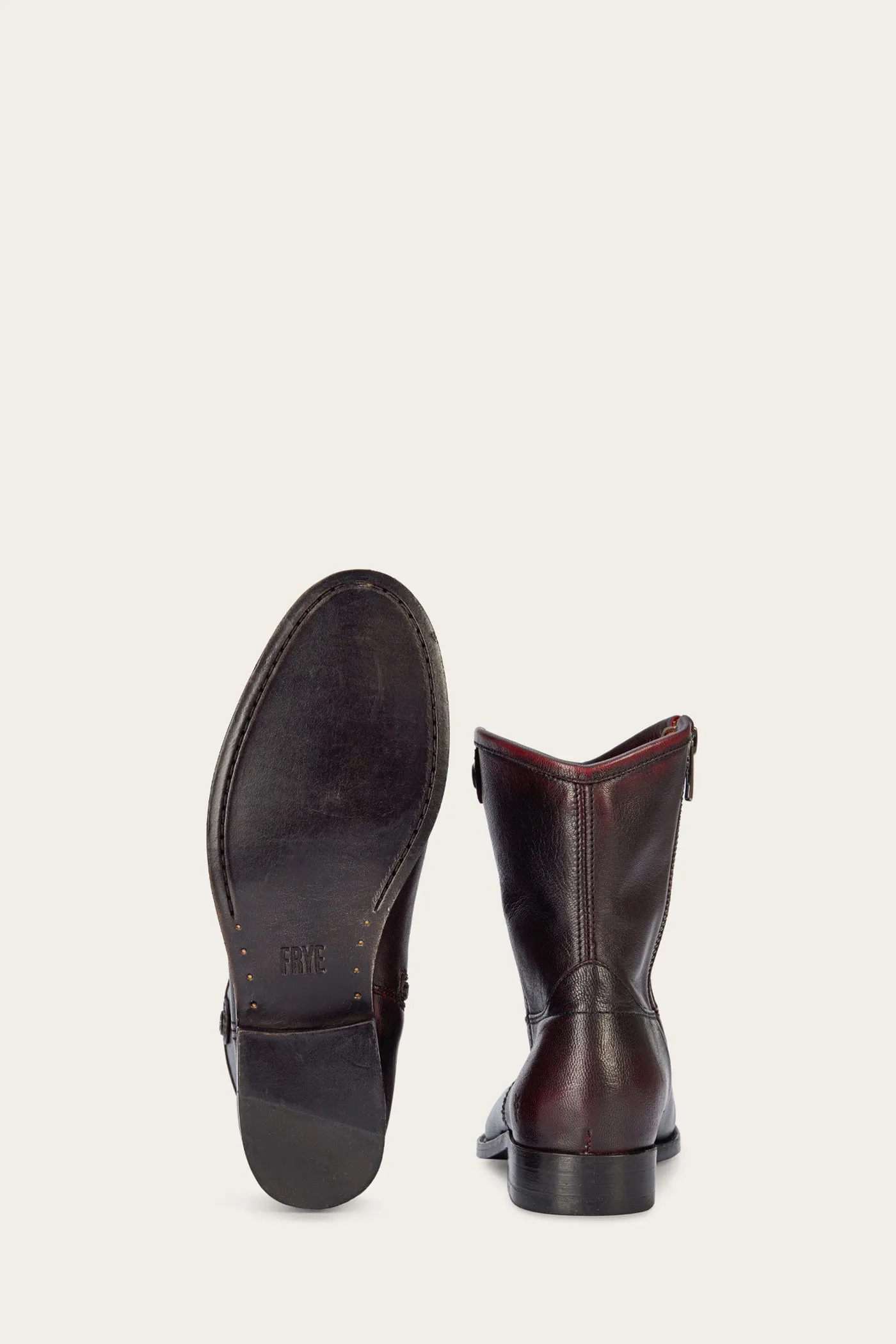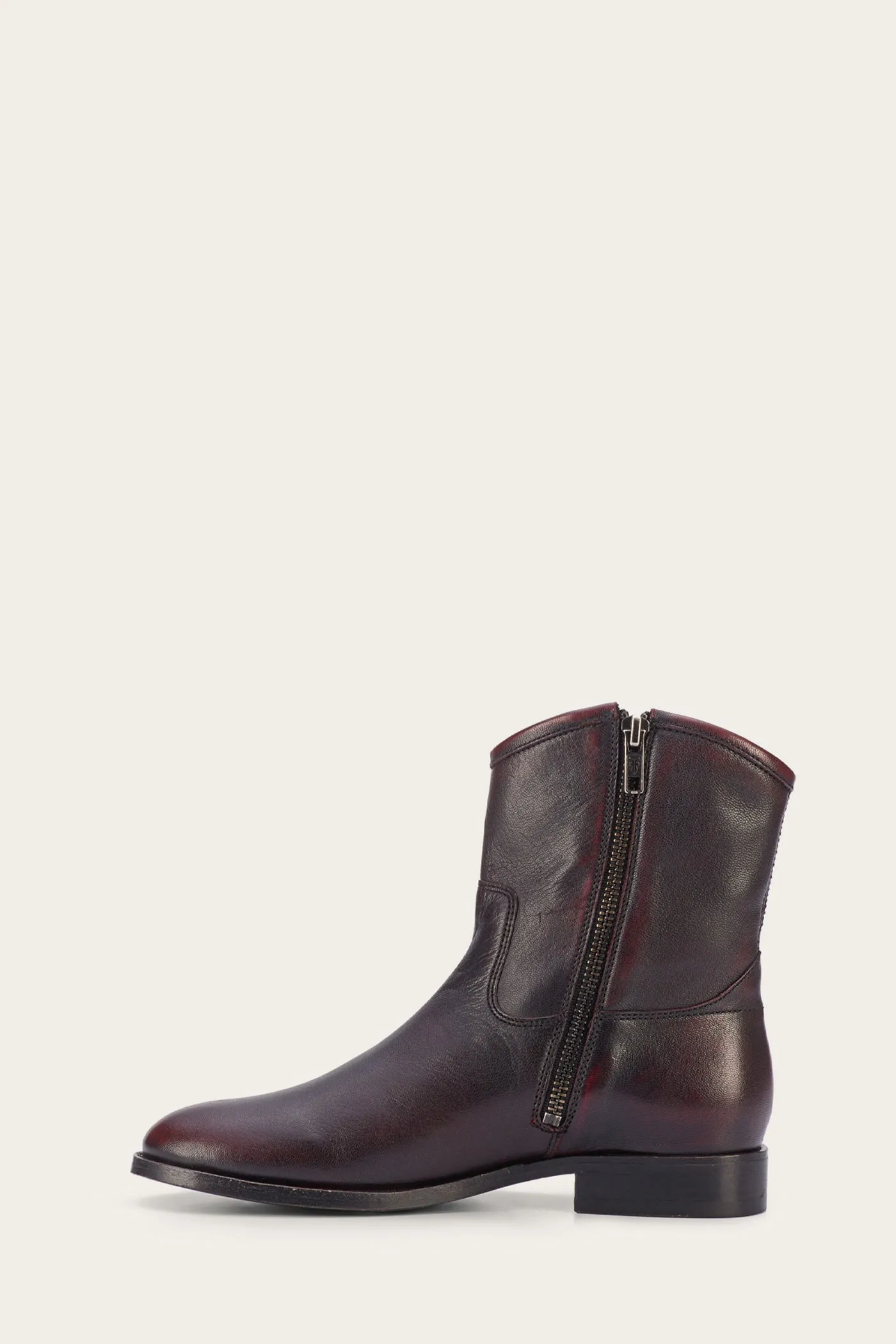Made from a waxed vintage leather this short boot is a versatile staple for your closet. A classic look for work to weekend and complementary to shorts, pants, skirts, and dresses.